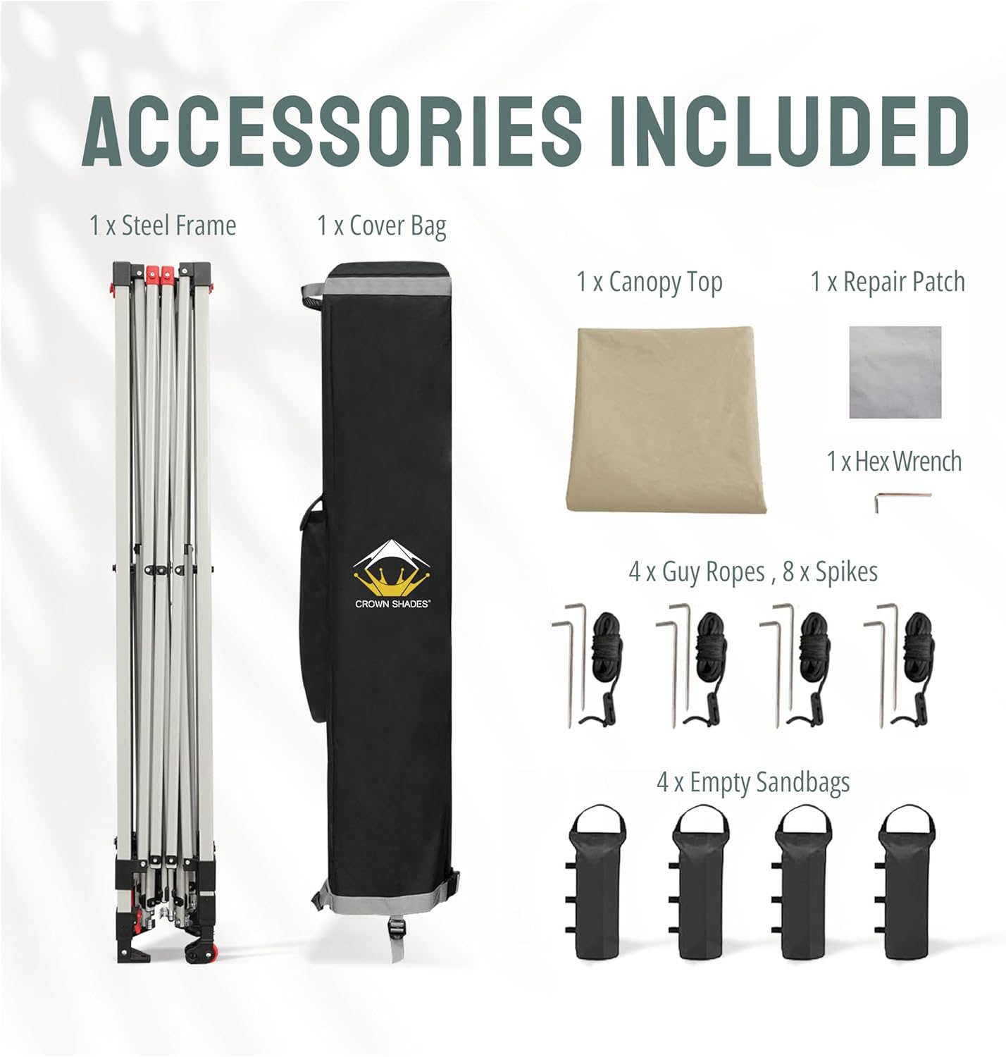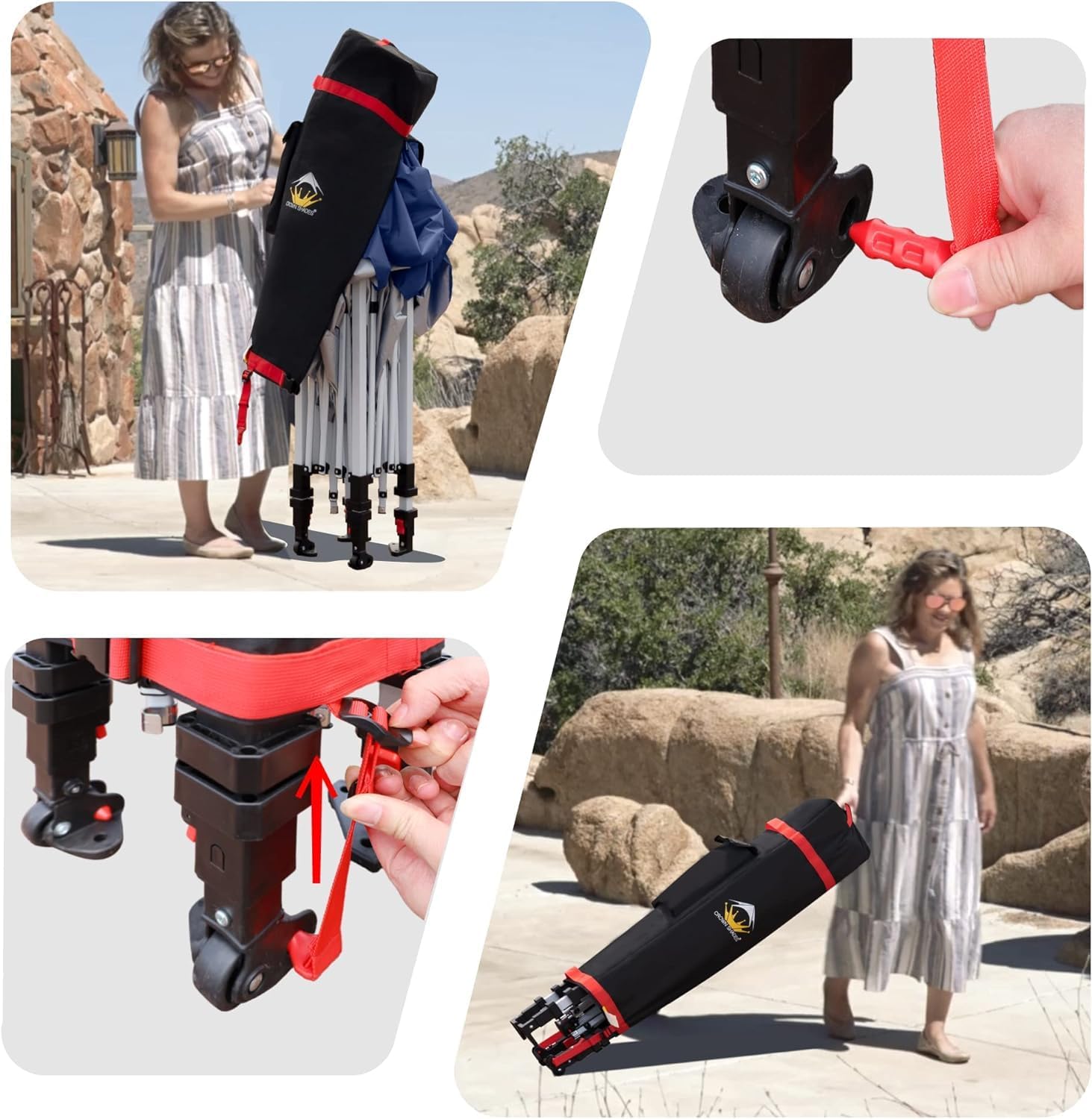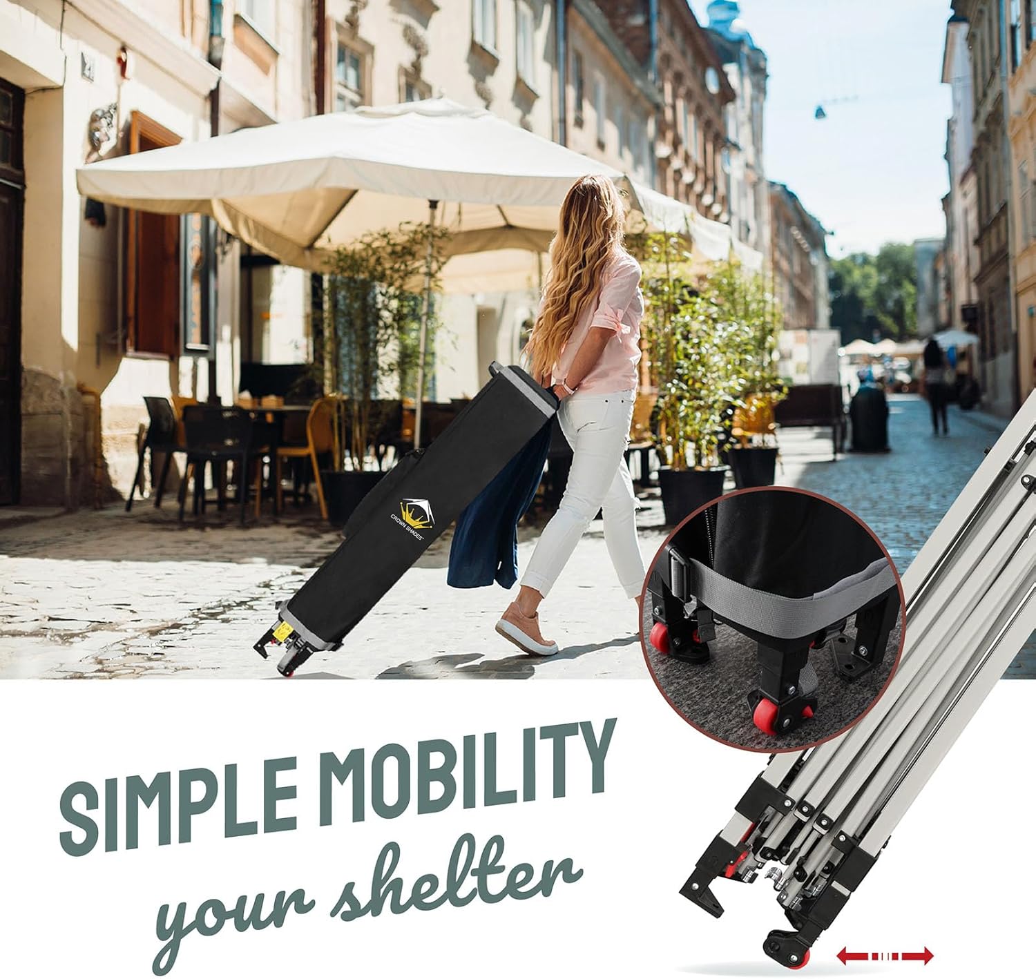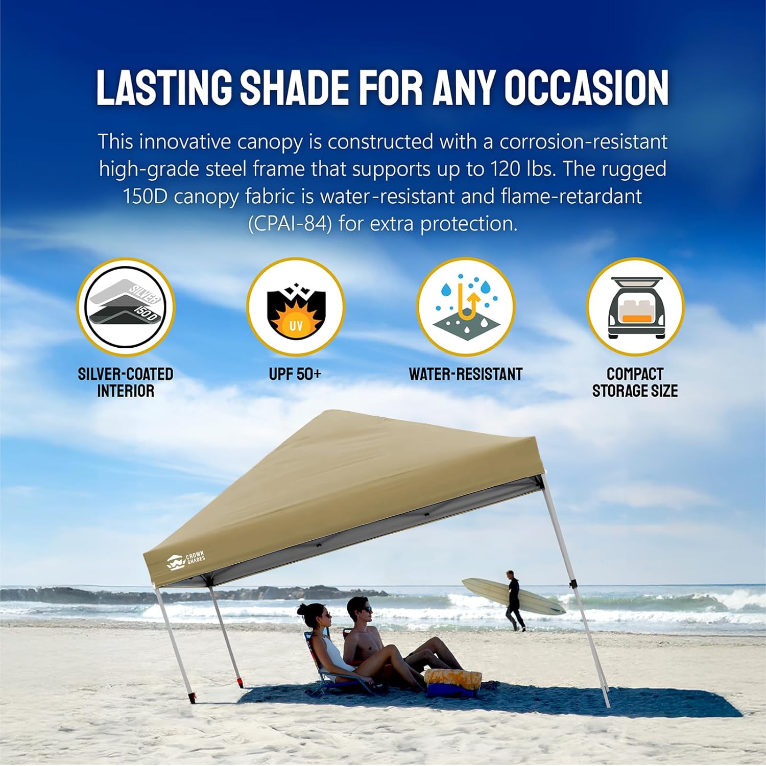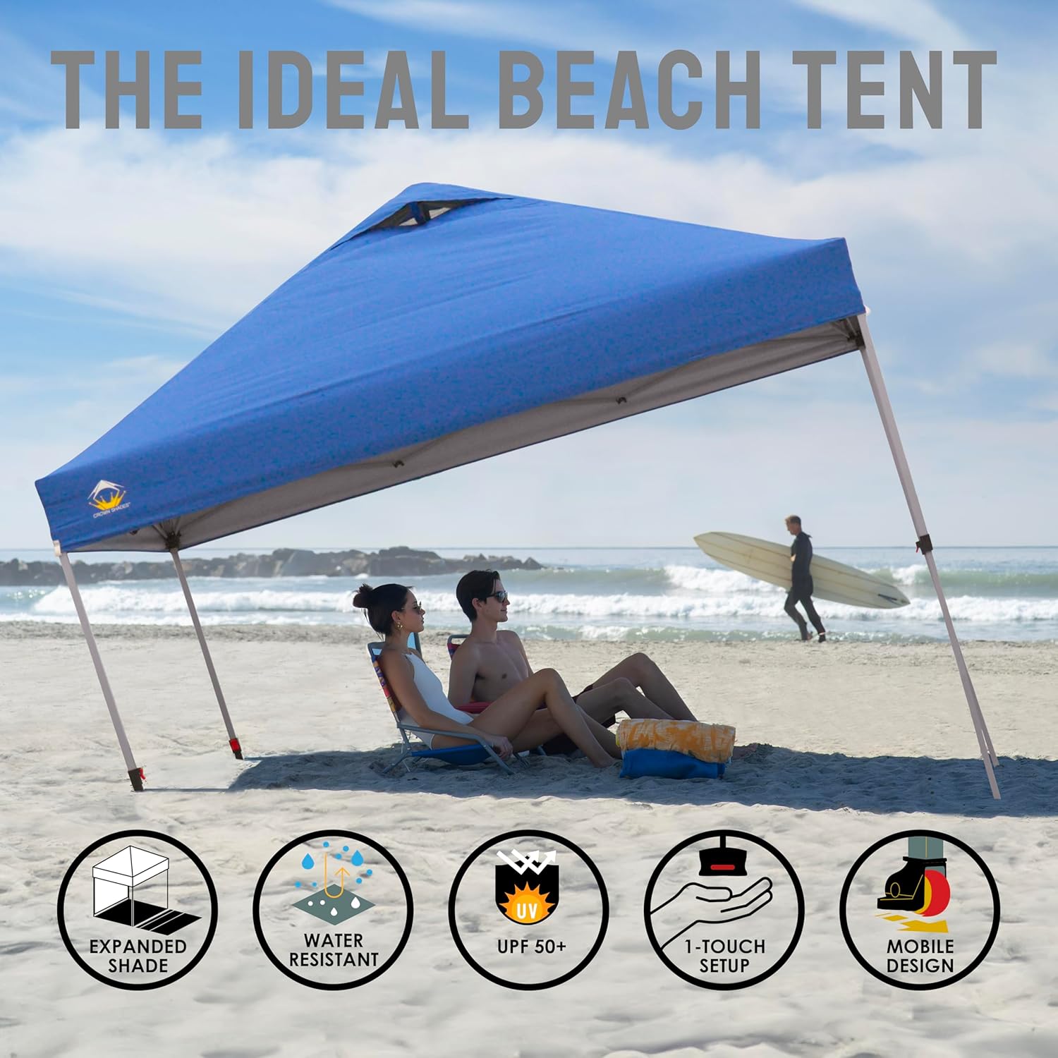 10x10 Pop-Up Awning - One-Click Installation Beach Tent - Outdoor Sunshade Silver Coated Top, 3 Heights and 4 Sand Pockets