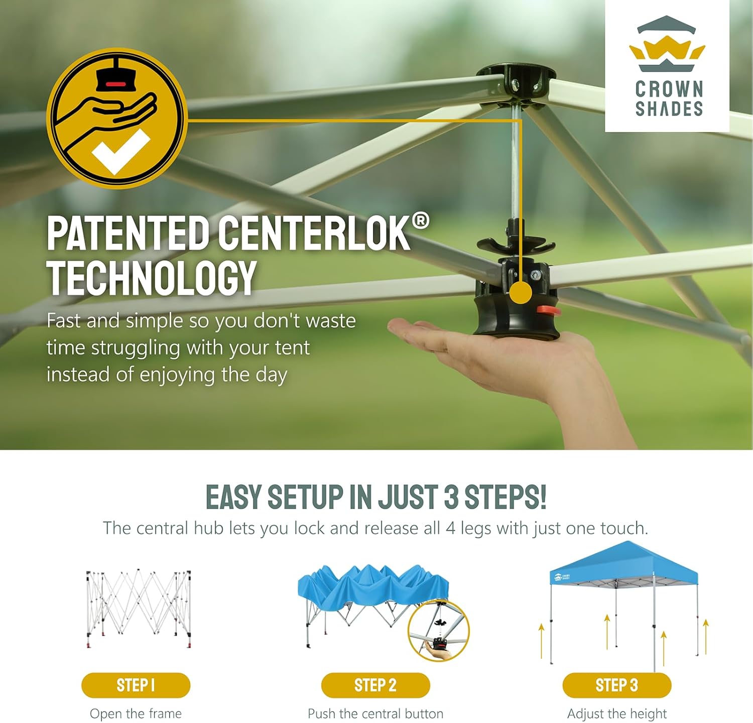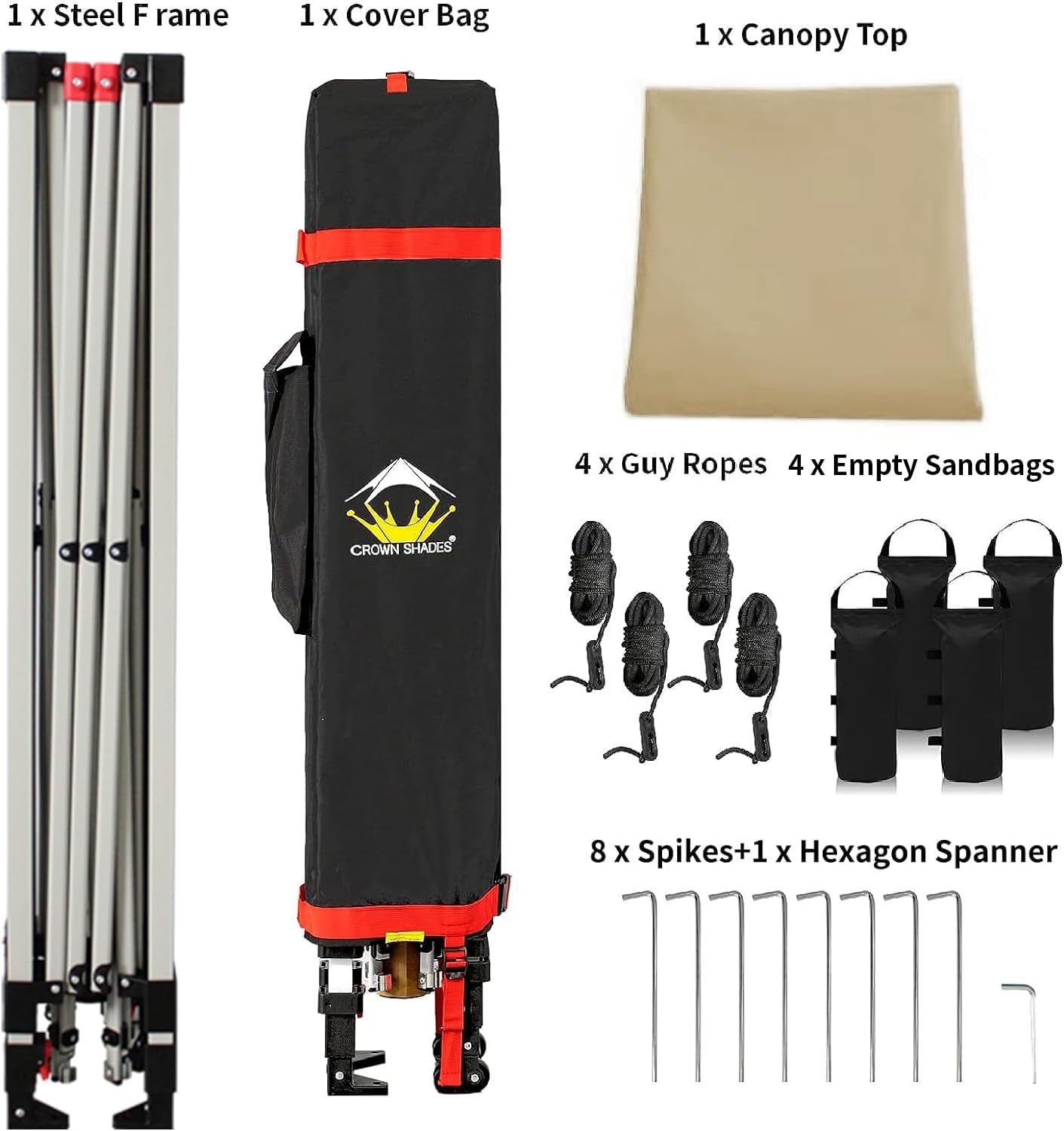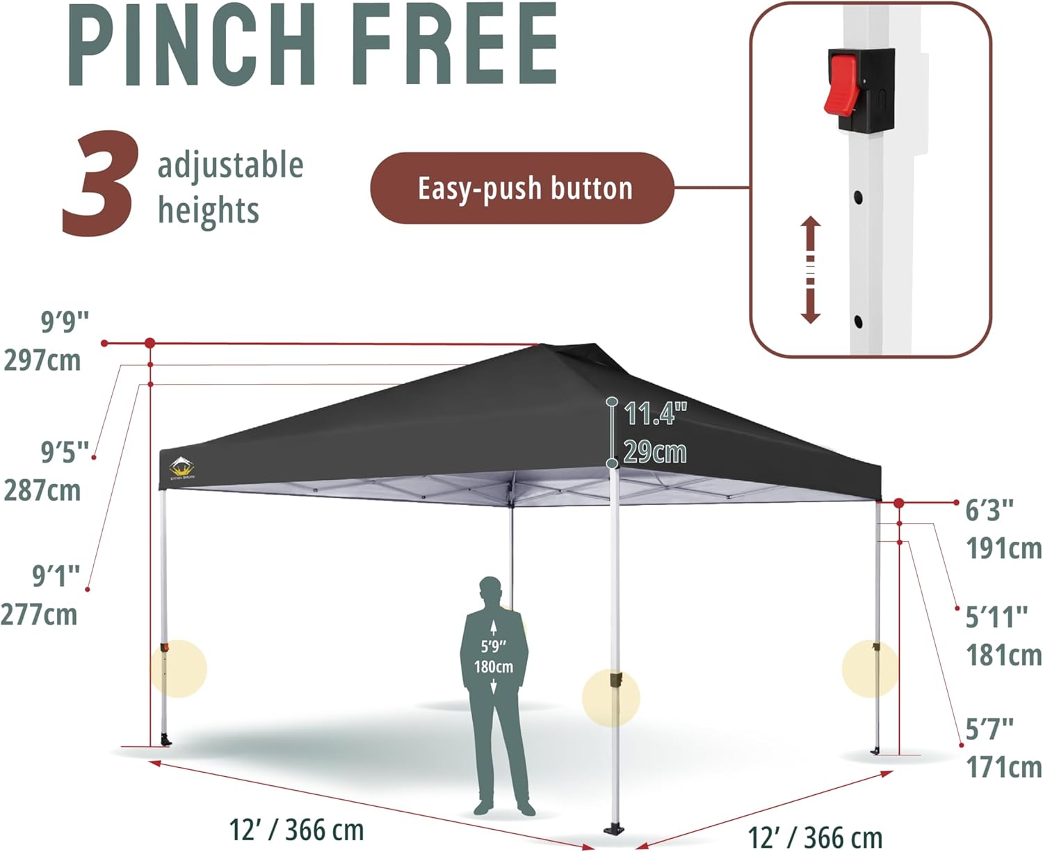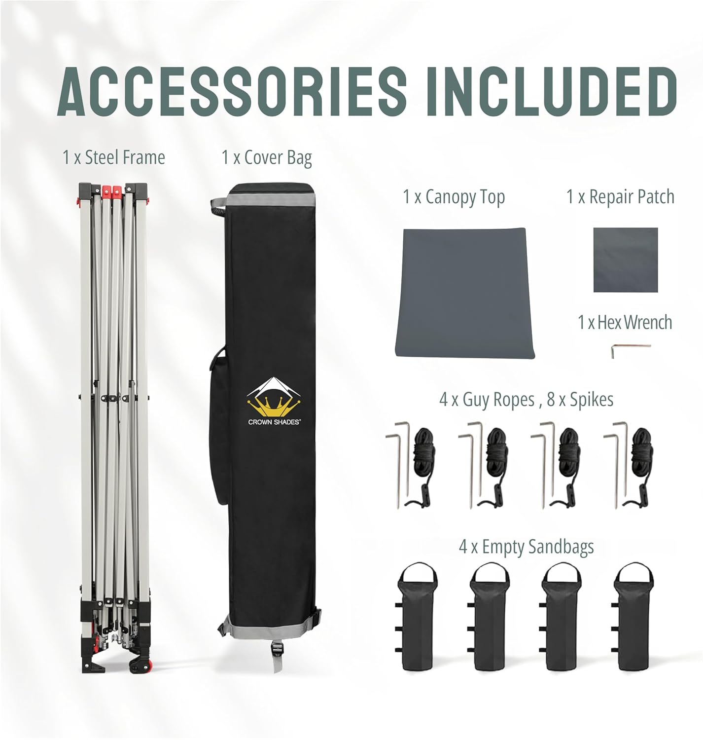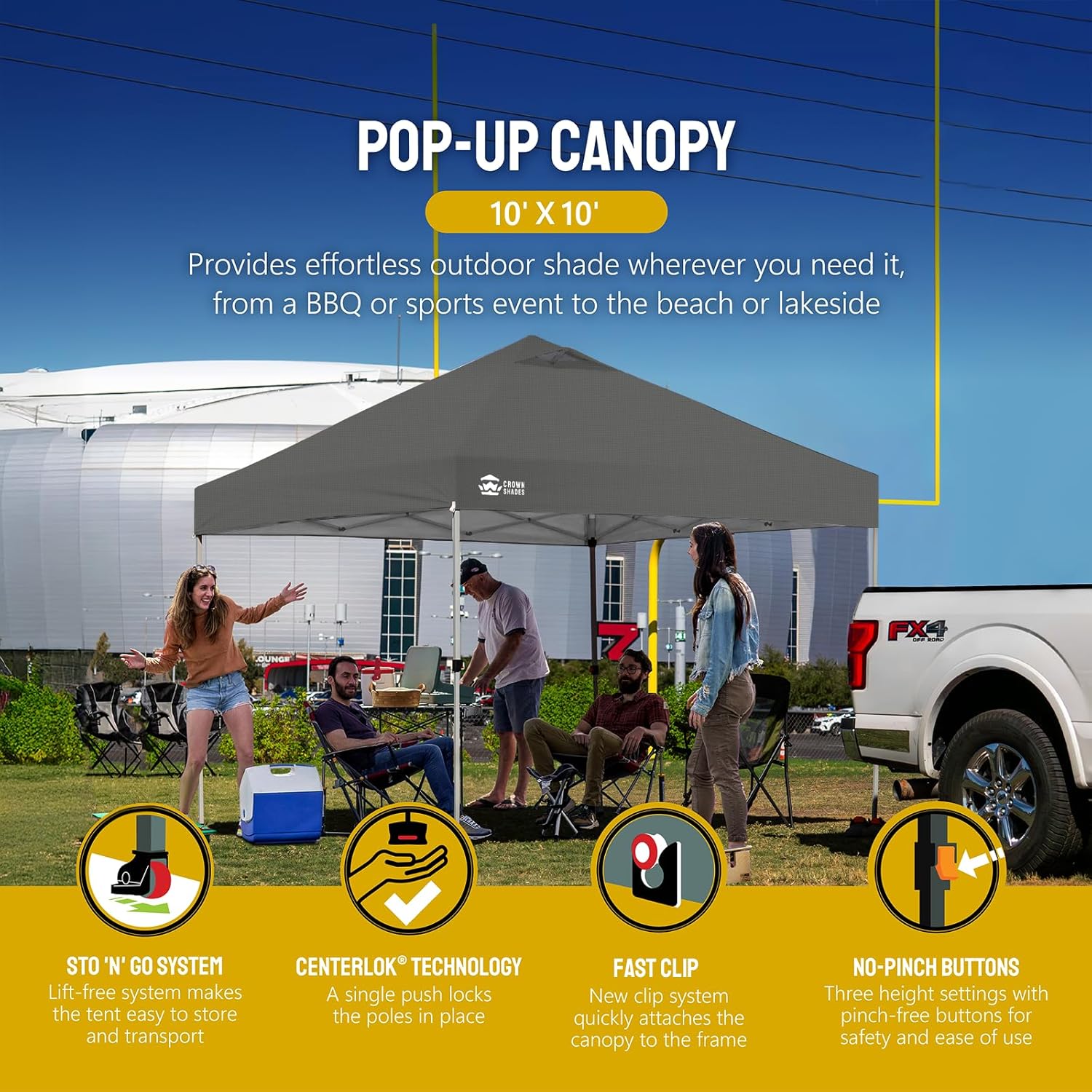 10x10 Pop-Up Awning - One-Click Installation Beach Tent - Outdoor Sunshade Silver Coated Top, 3 Heights and 4 Sand Pockets