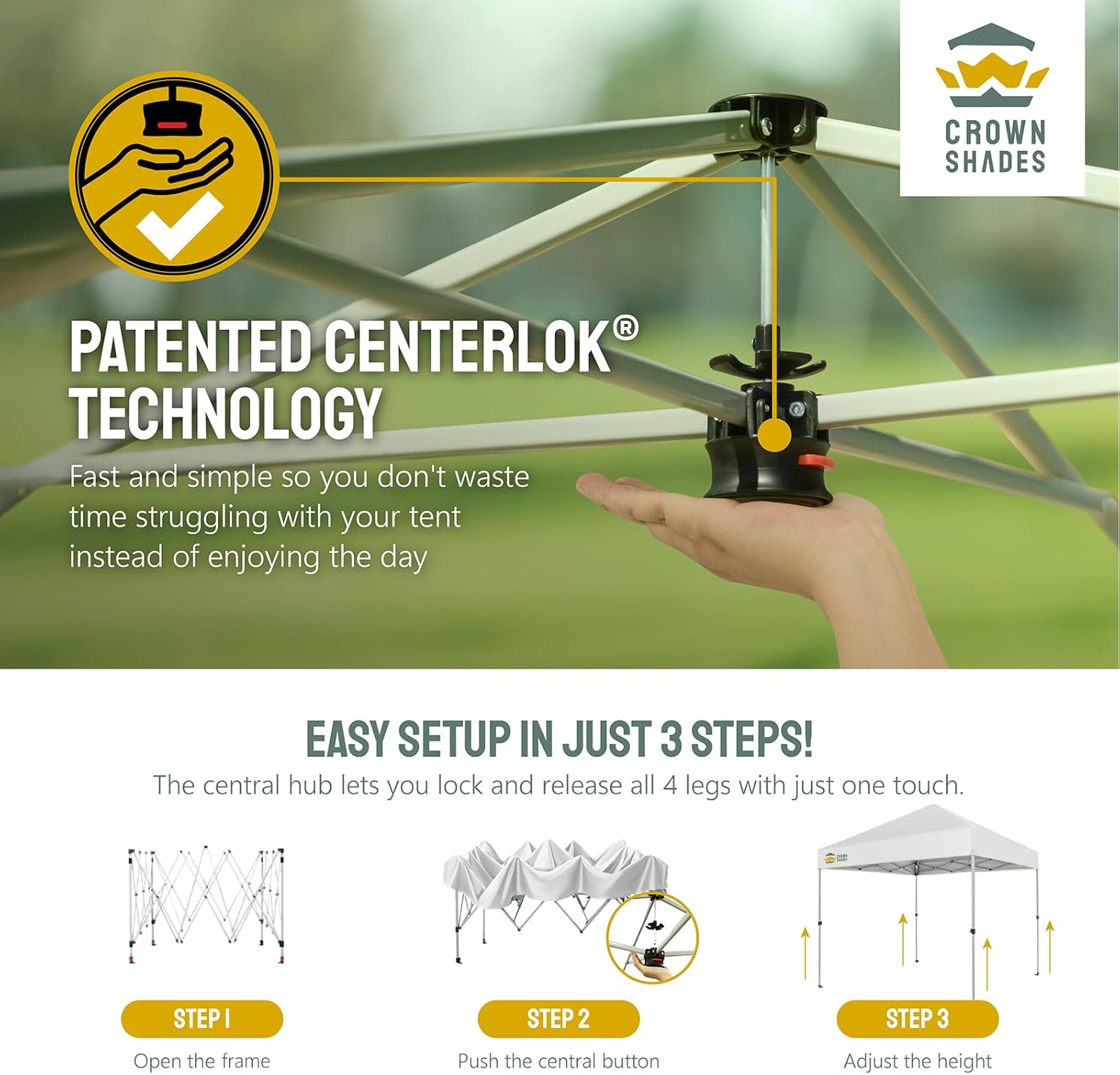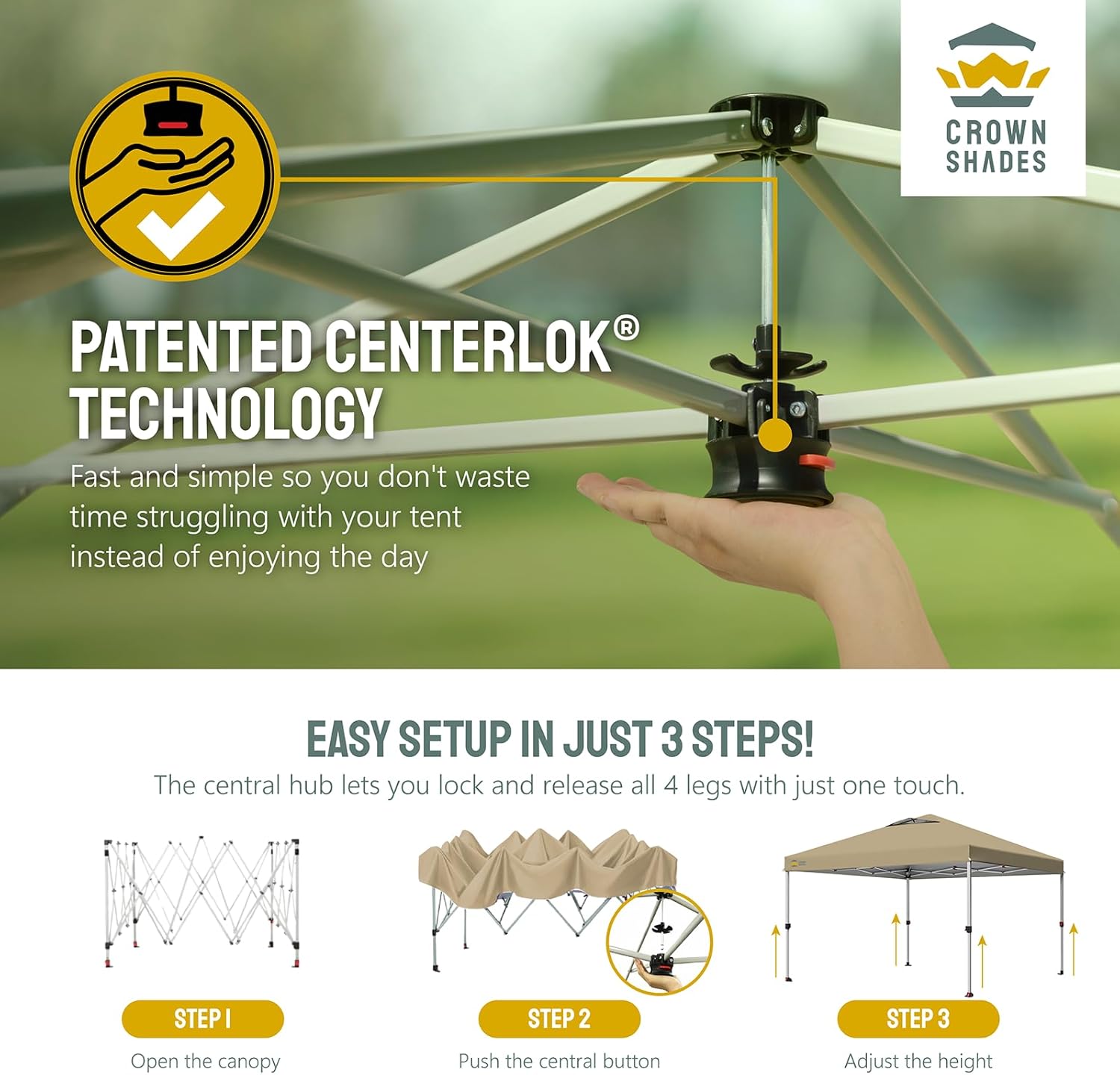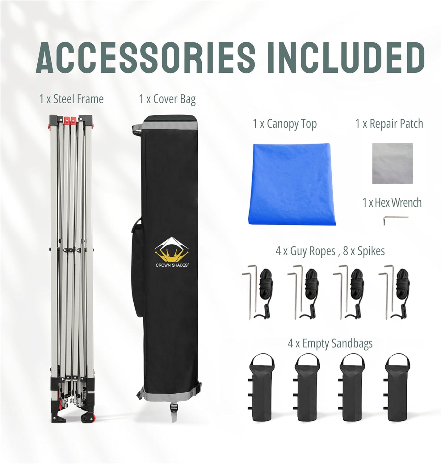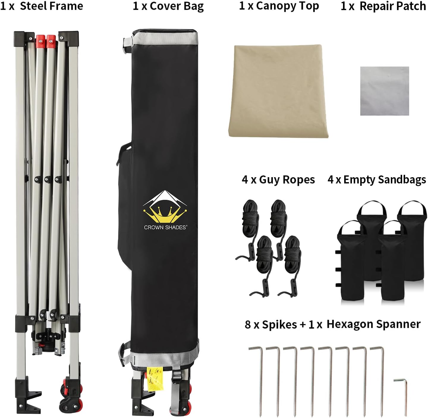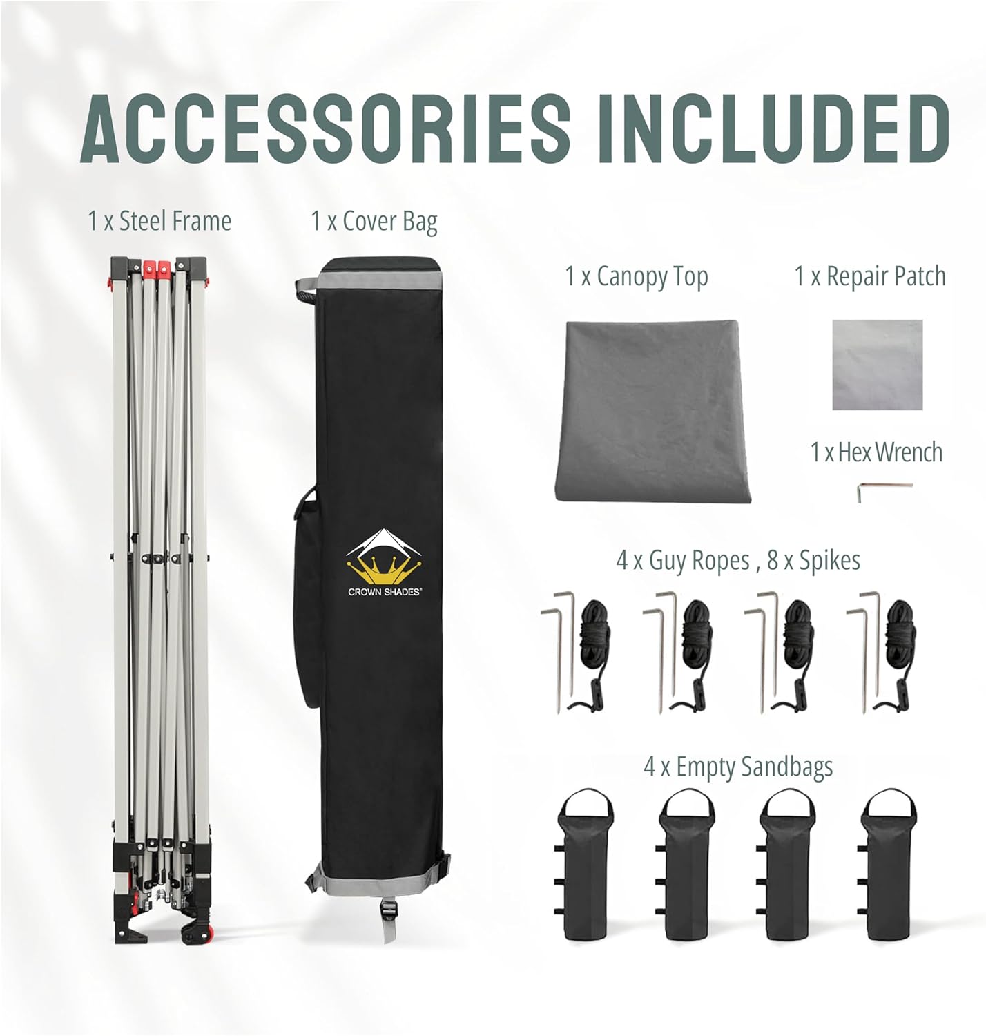 10x10 Pop-Up Awning - One-Click Installation Beach Tent - Outdoor Sunshade Silver Coated Top, 3 Heights and 4 Sand Pockets