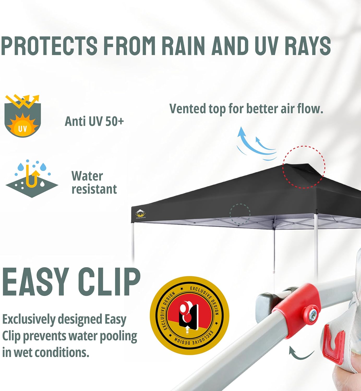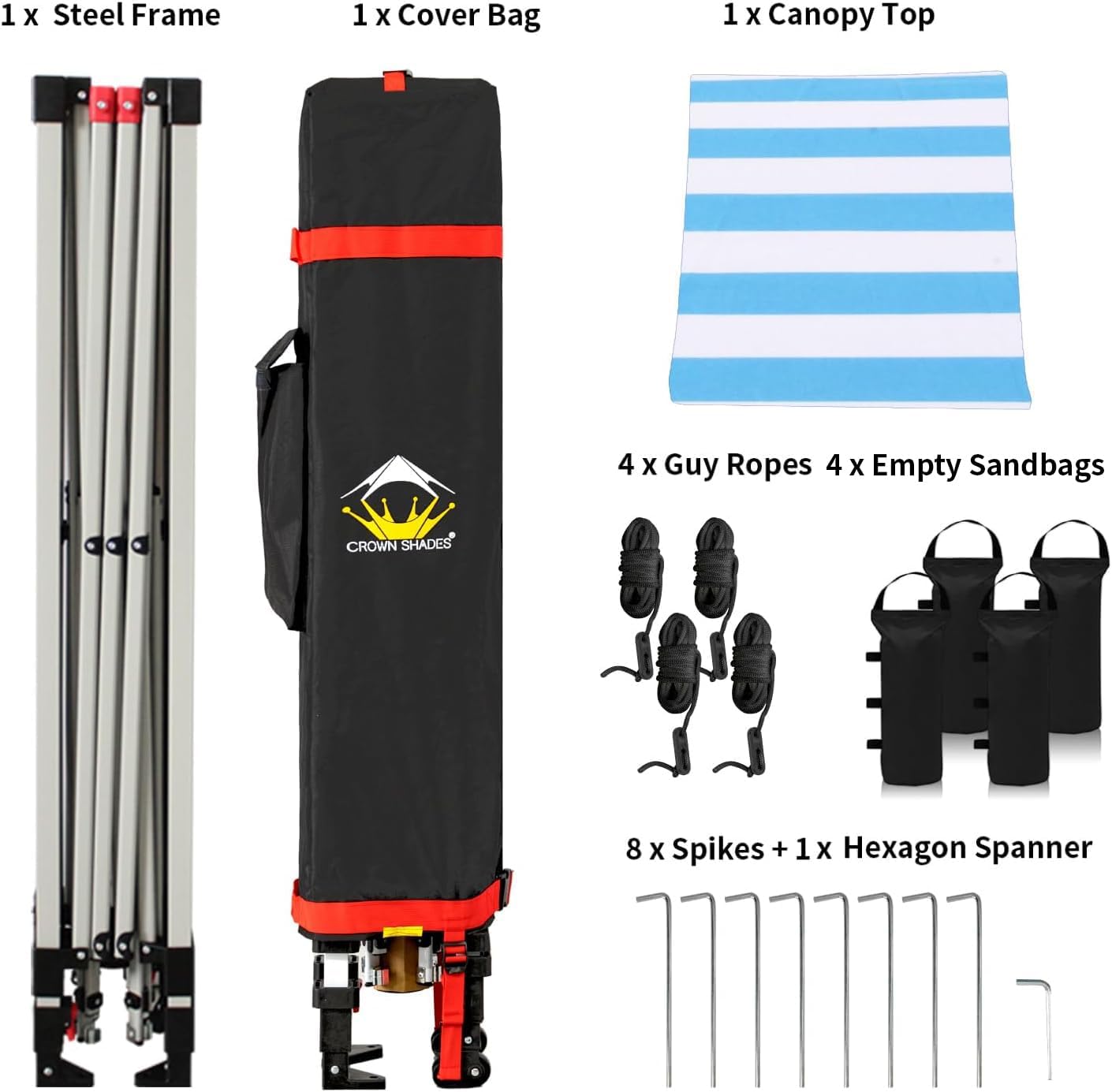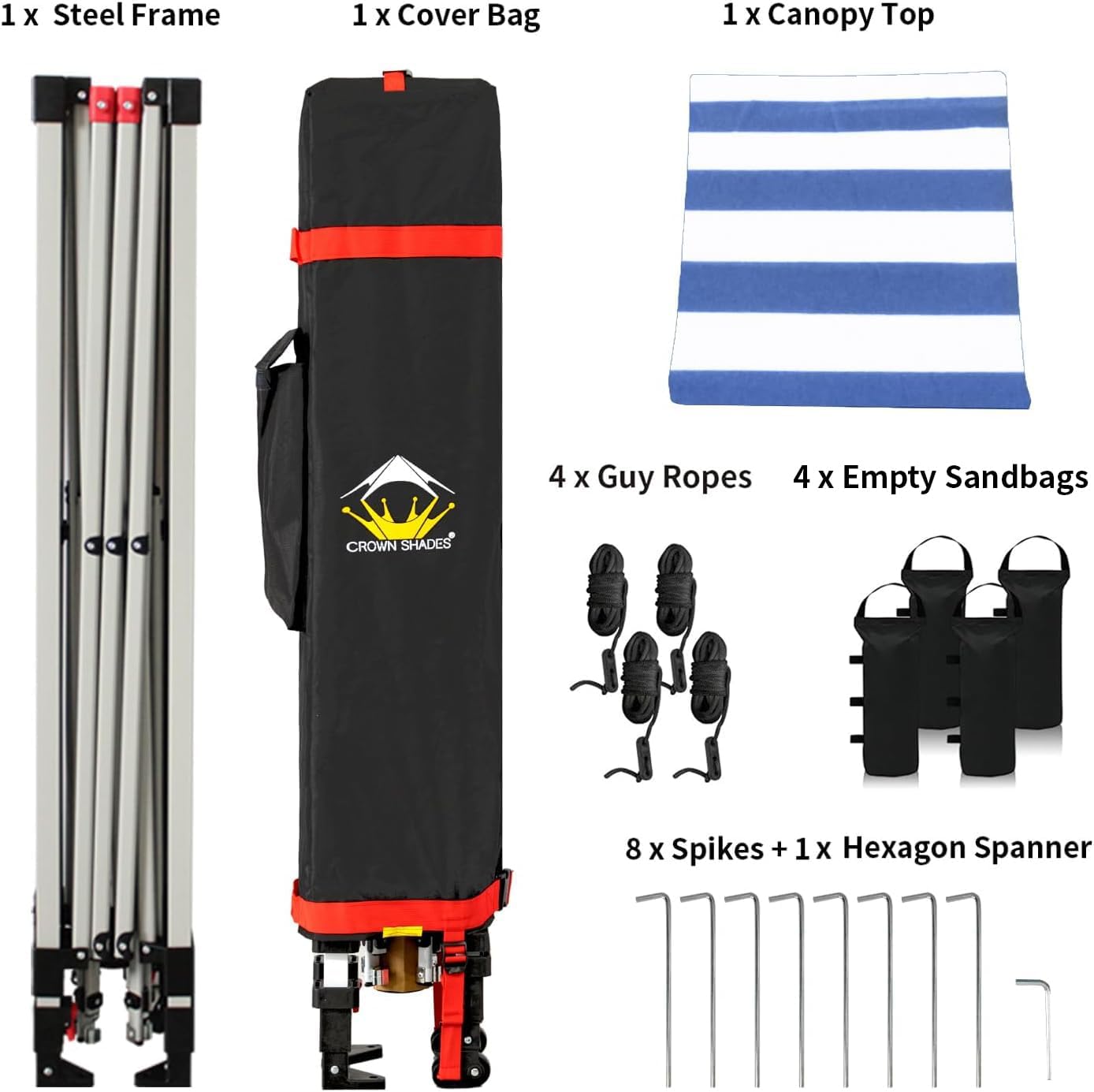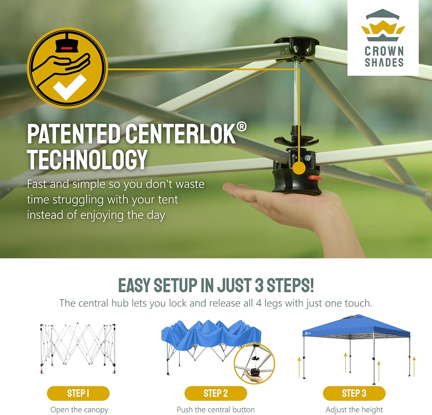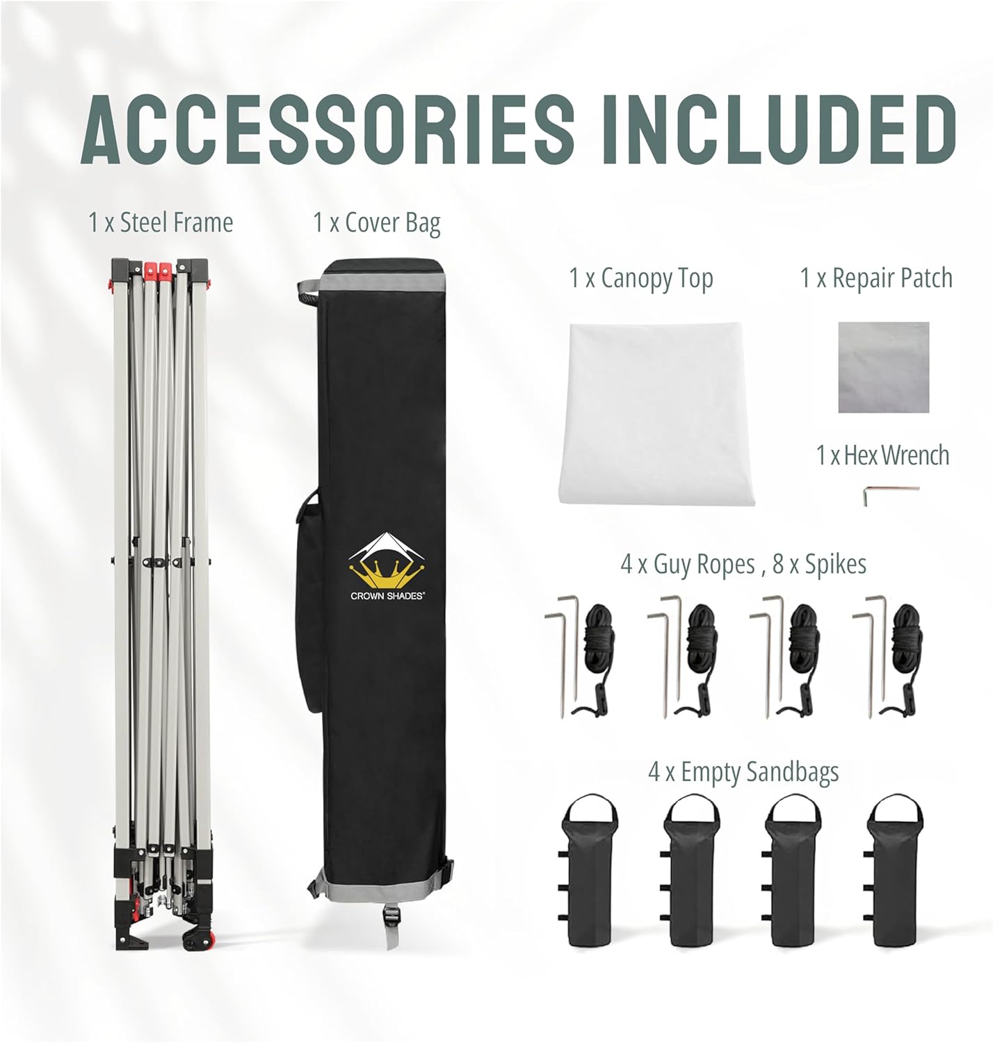 10x10 Pop-Up Awning - One-Click Installation Beach Tent - Outdoor Sunshade Silver Coated Top, 3 Heights and 4 Sand Pockets