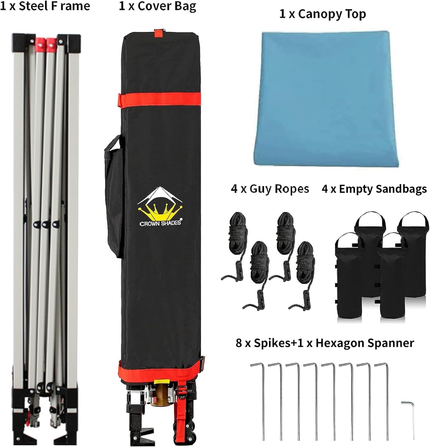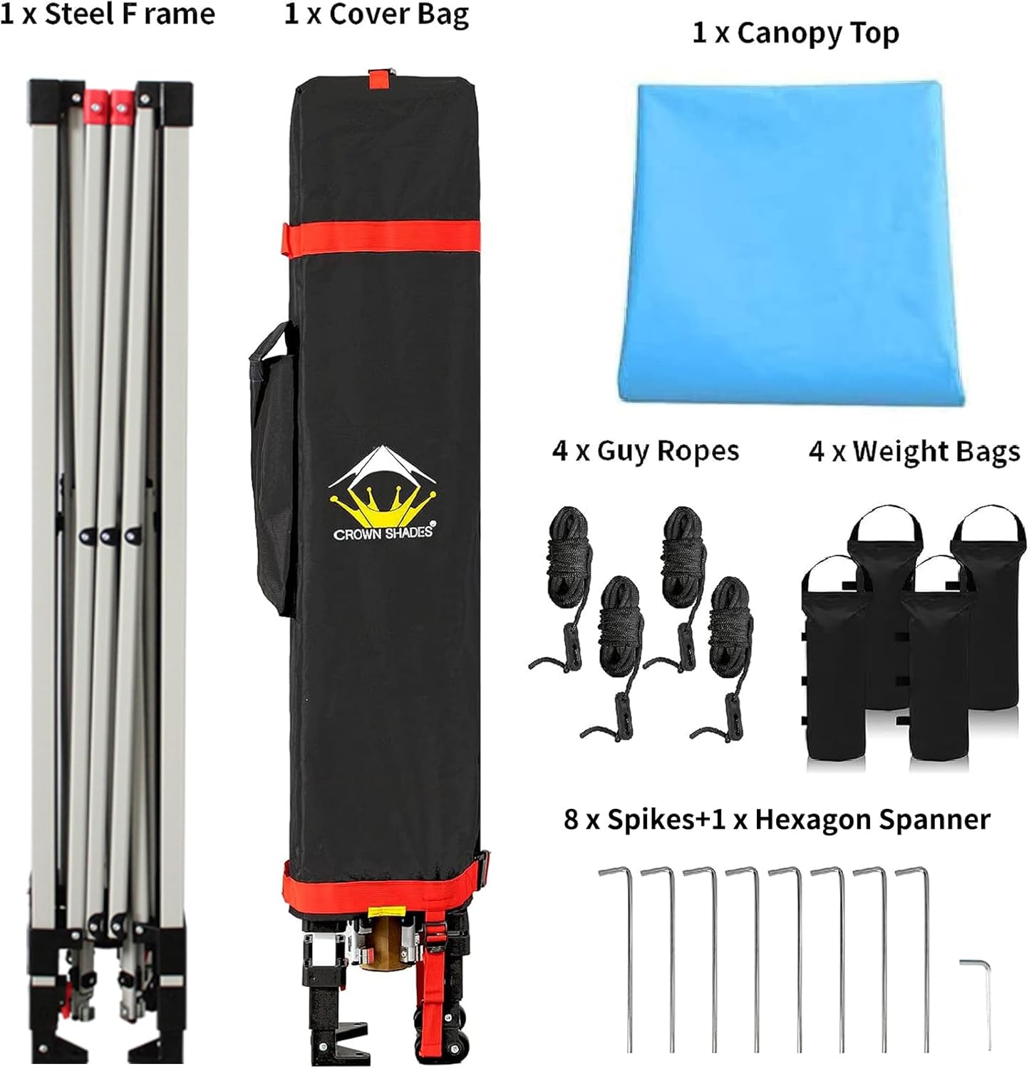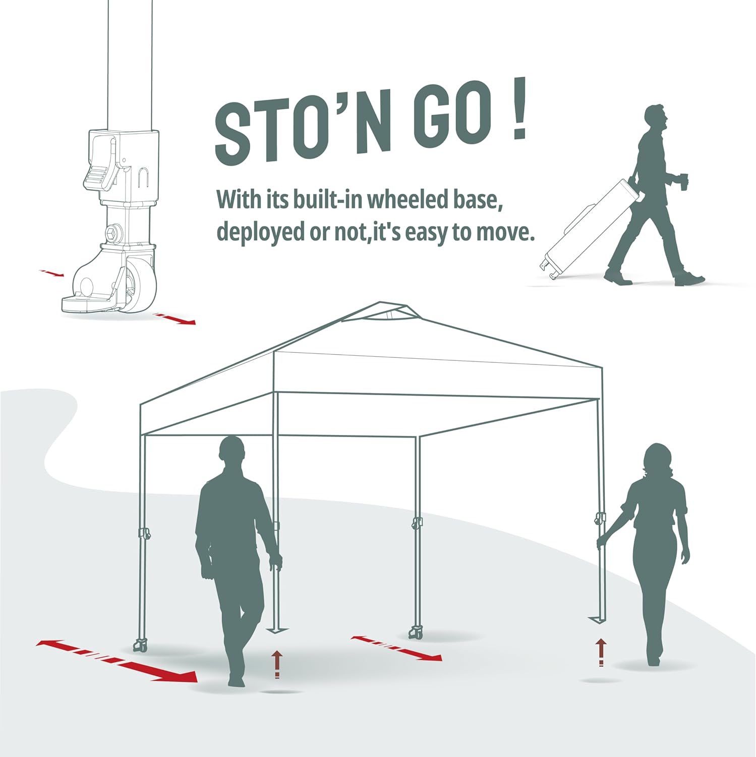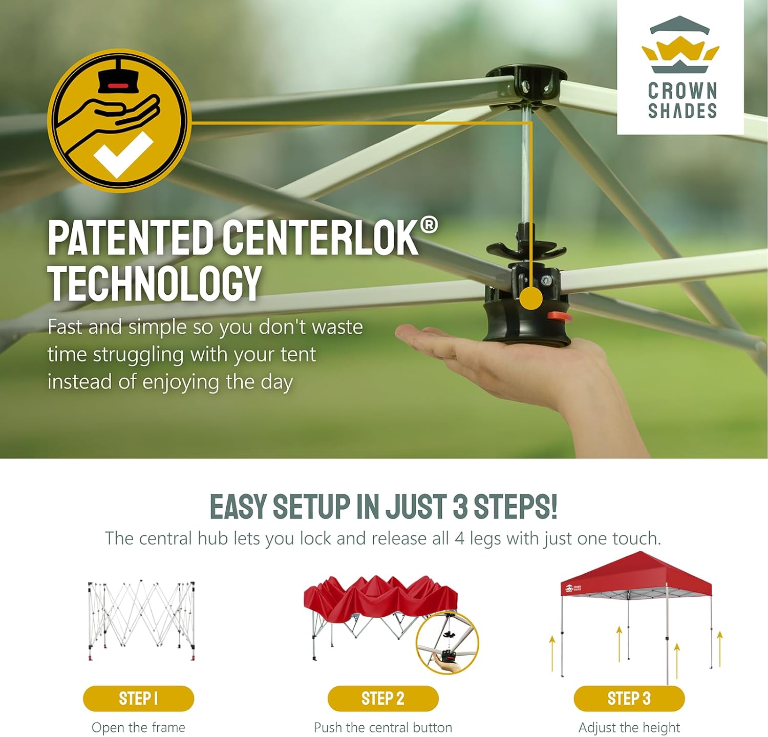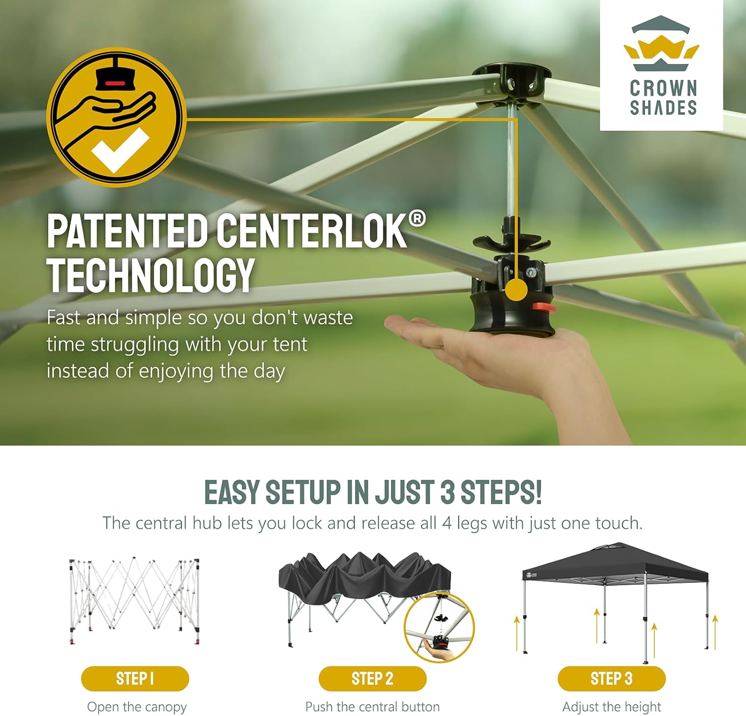 10x10 Pop-Up Awning - One-Click Installation Beach Tent - Outdoor Sunshade Silver Coated Top, 3 Heights and 4 Sand Pockets