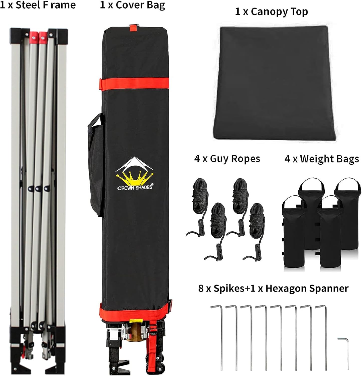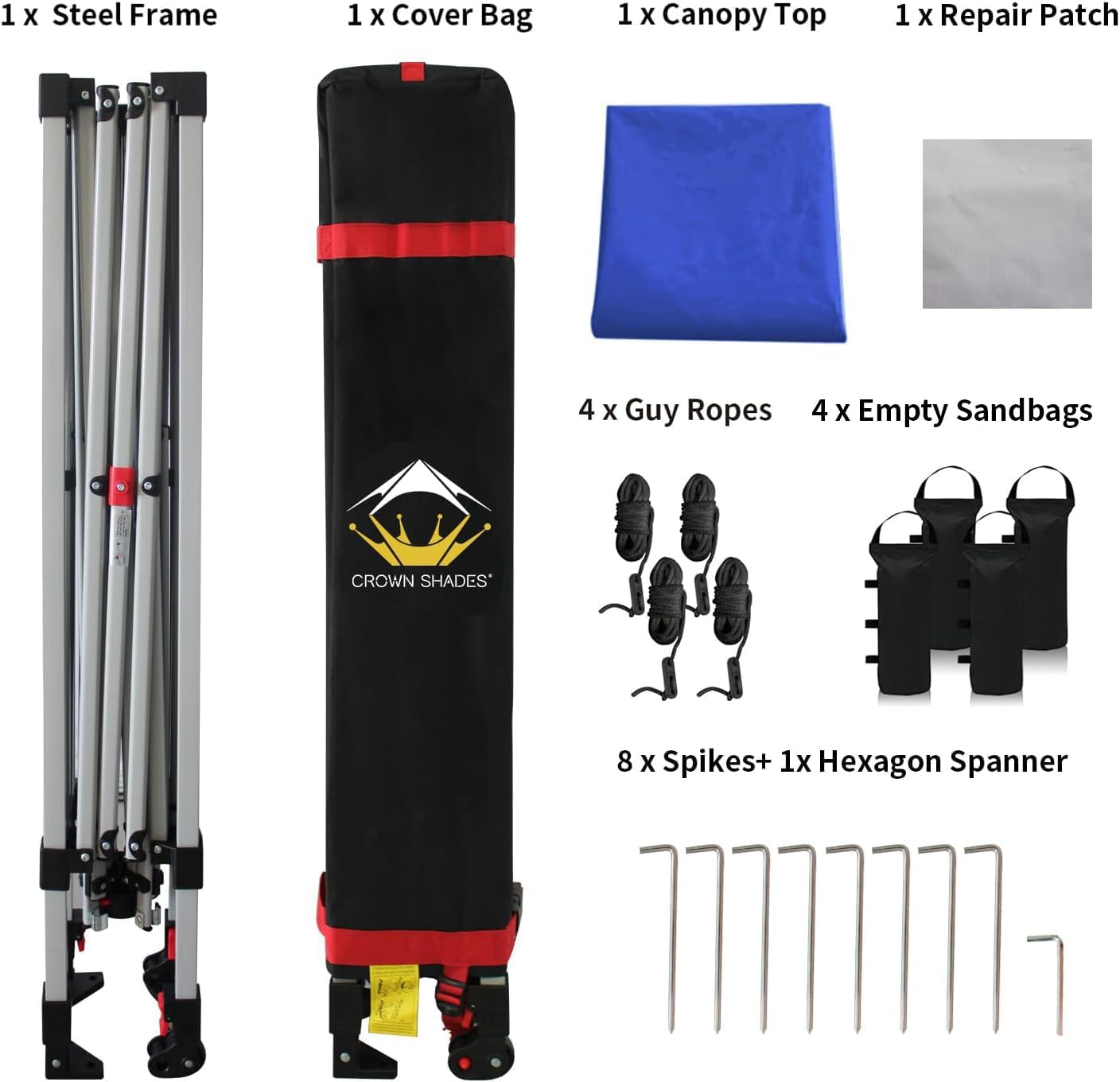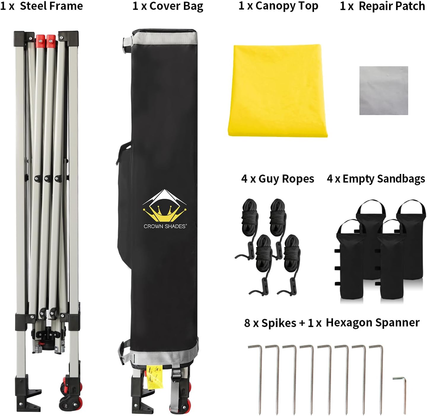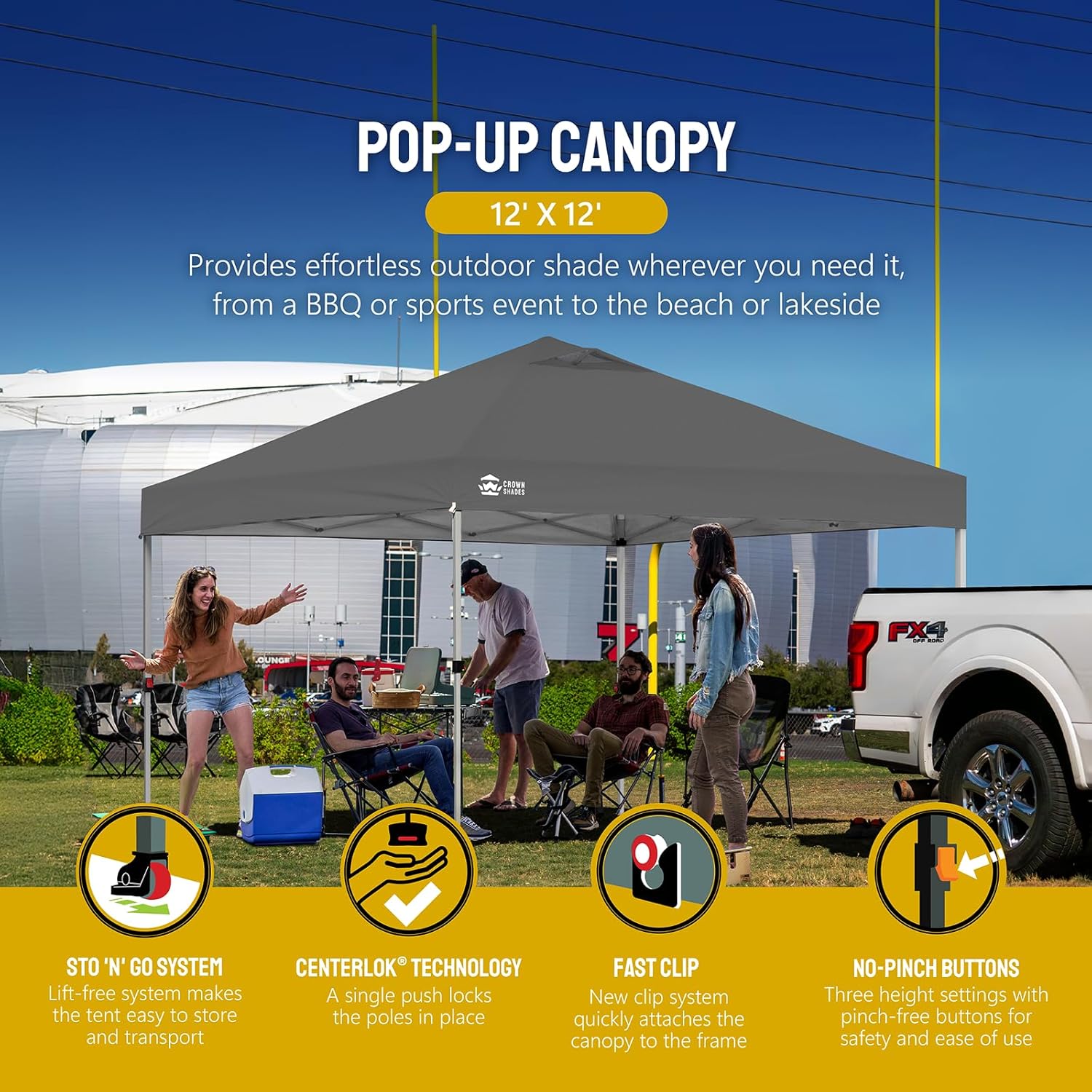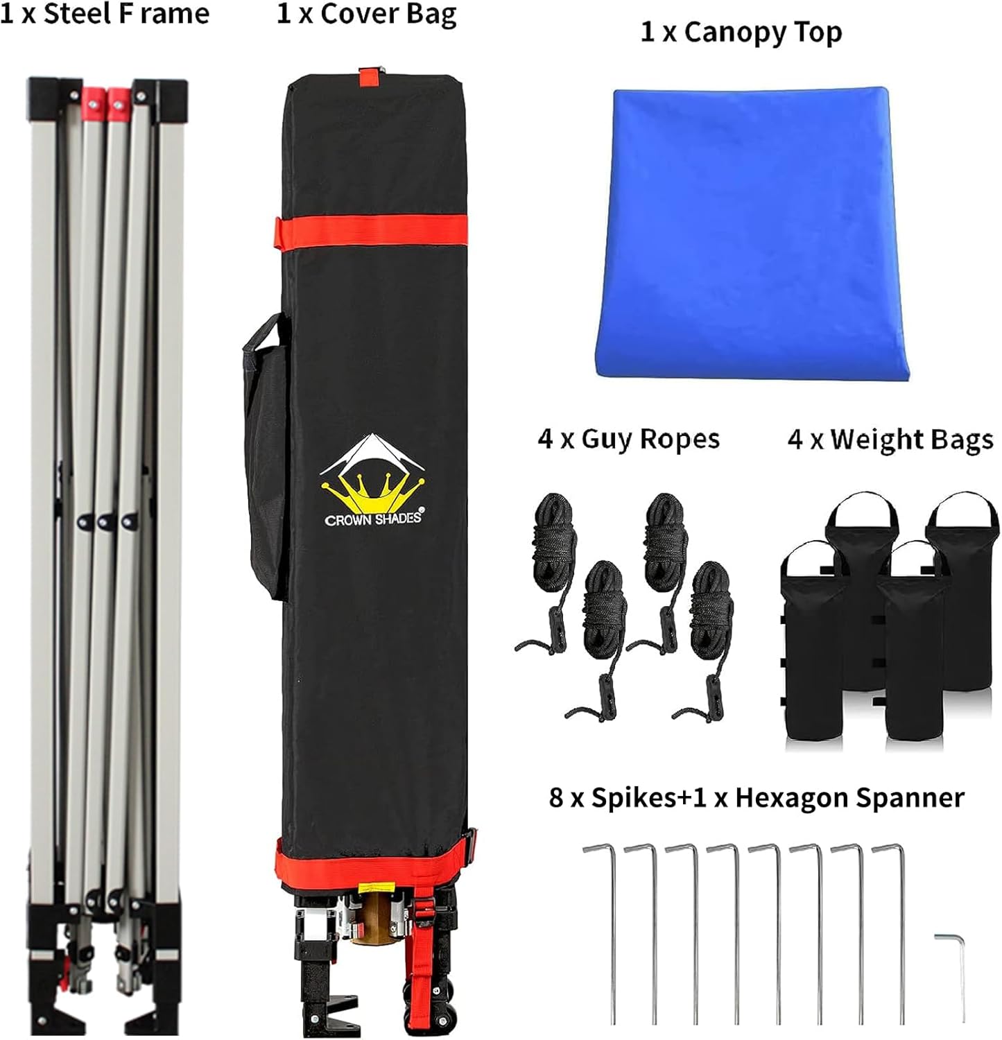 10x10 Pop-Up Awning - One-Click Installation Beach Tent - Outdoor Sunshade Silver Coated Top, 3 Heights and 4 Sand Pockets