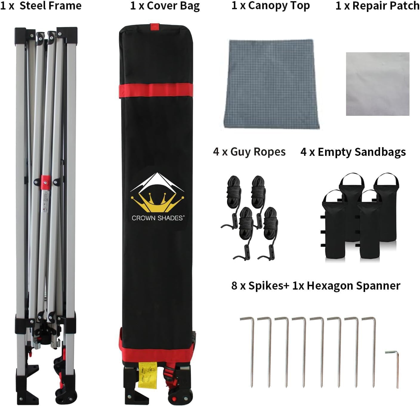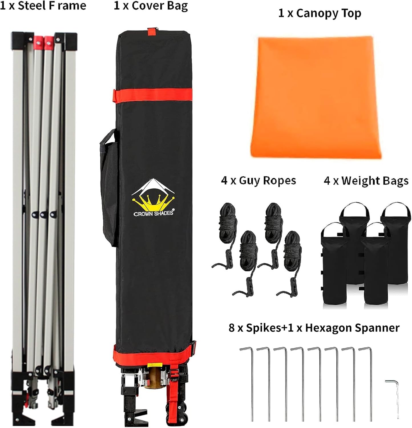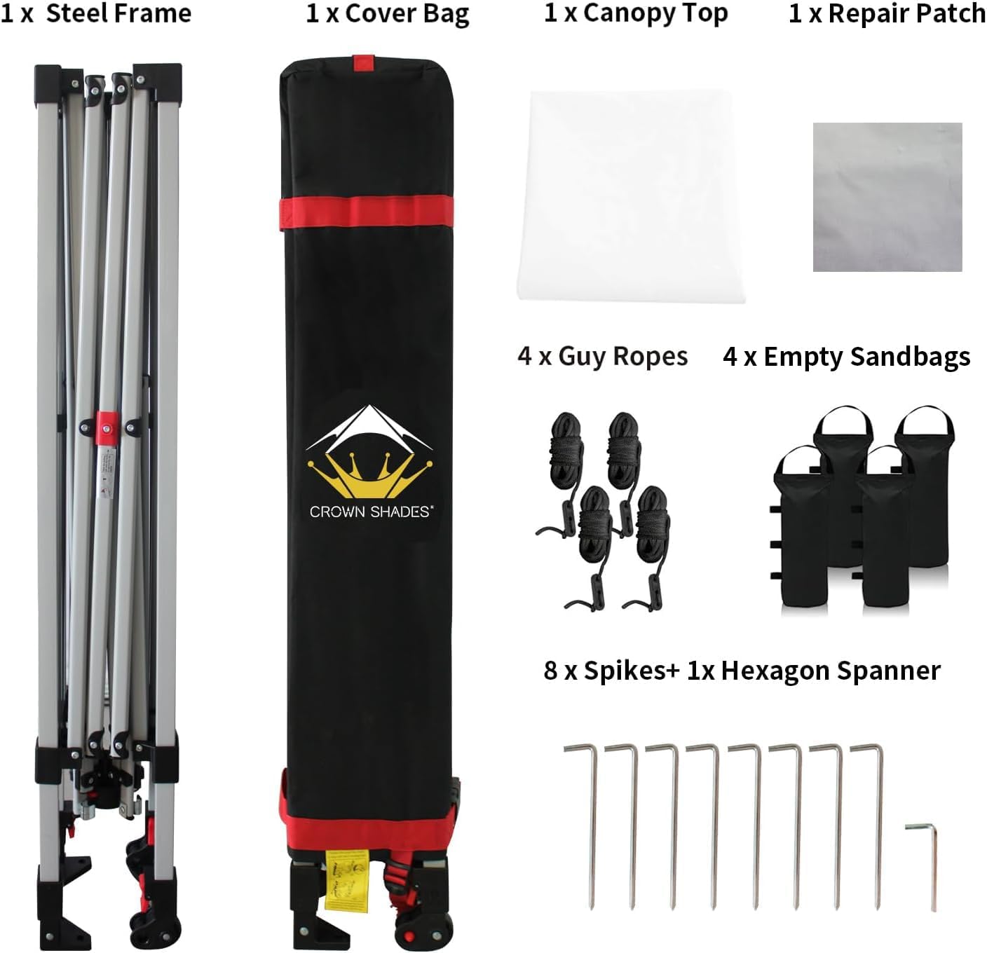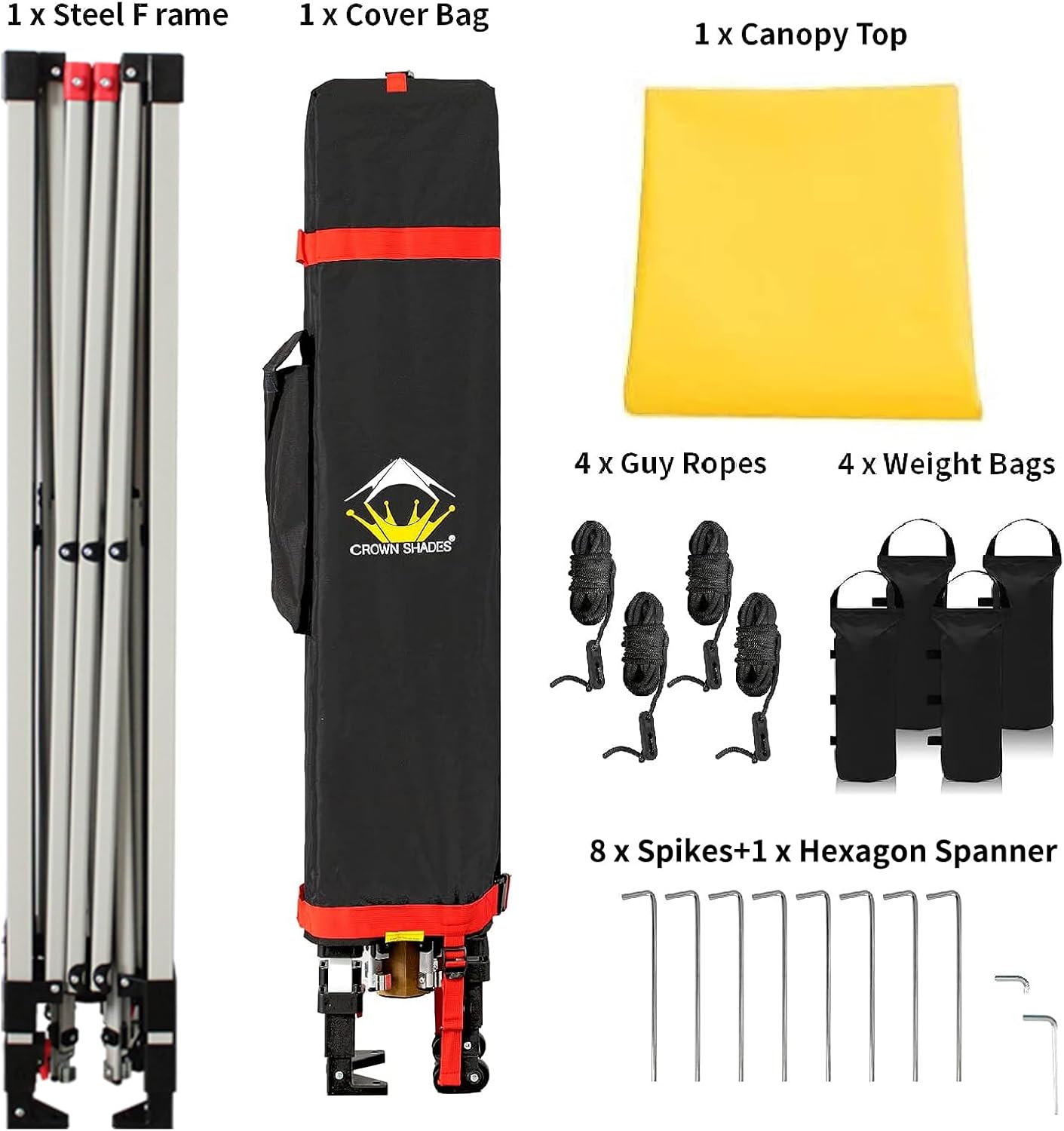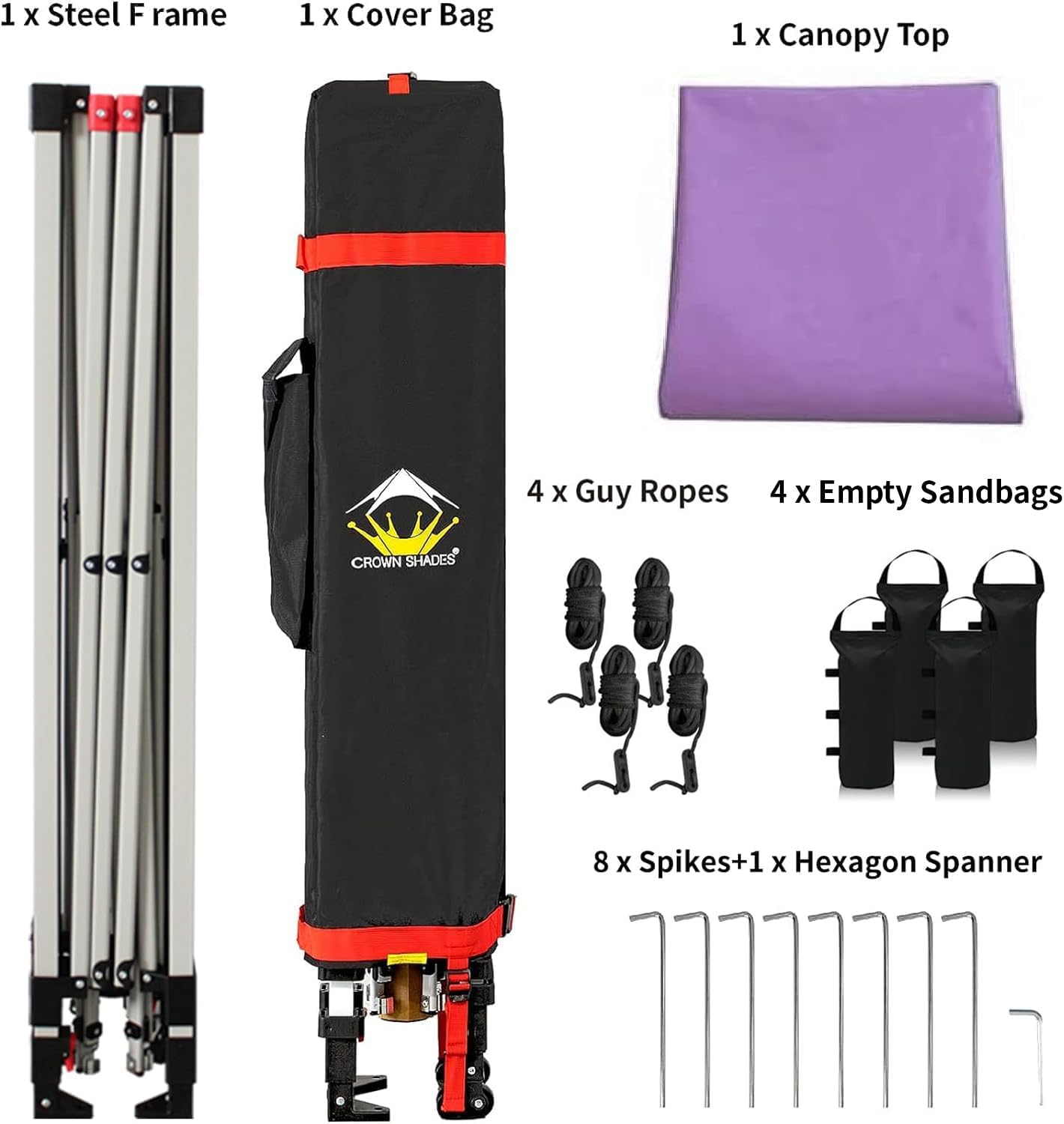 10x10 Pop-Up Awning - One-Click Installation Beach Tent - Outdoor Sunshade Silver Coated Top, 3 Heights and 4 Sand Pockets