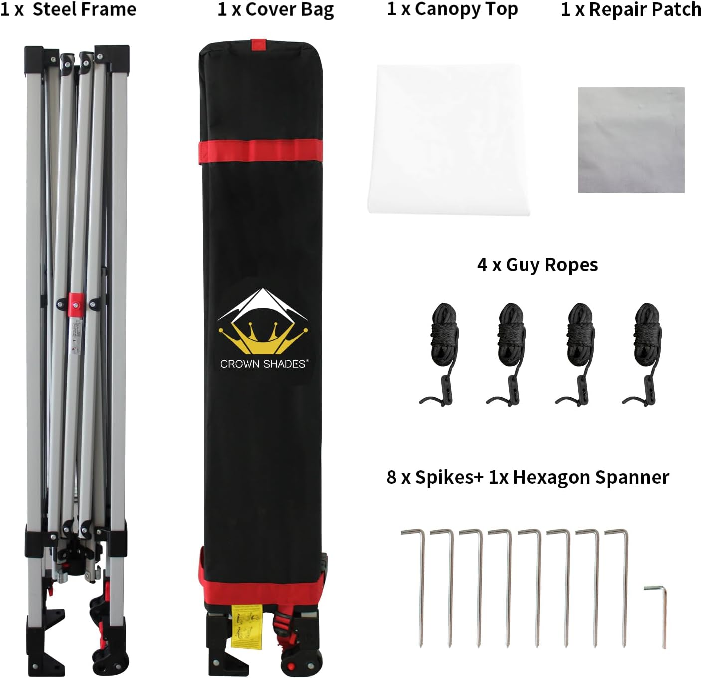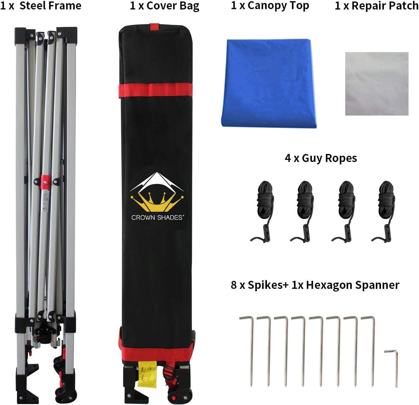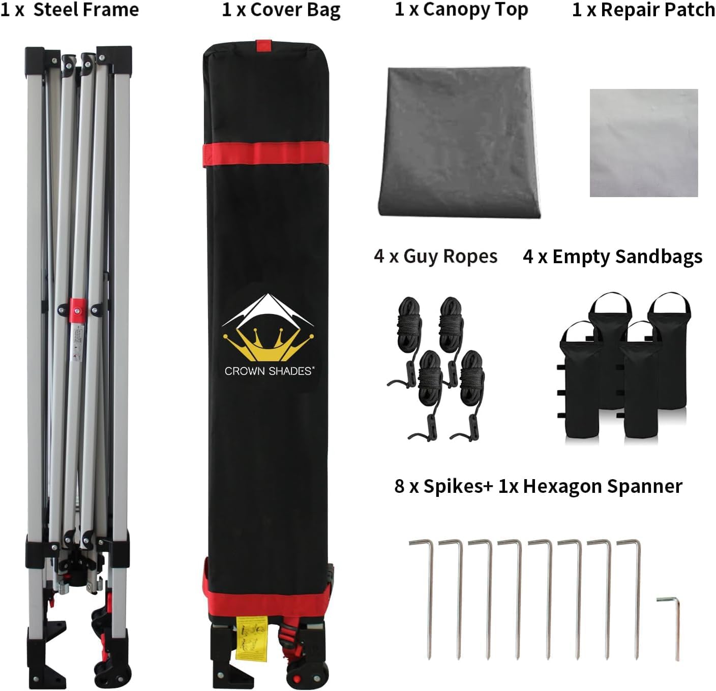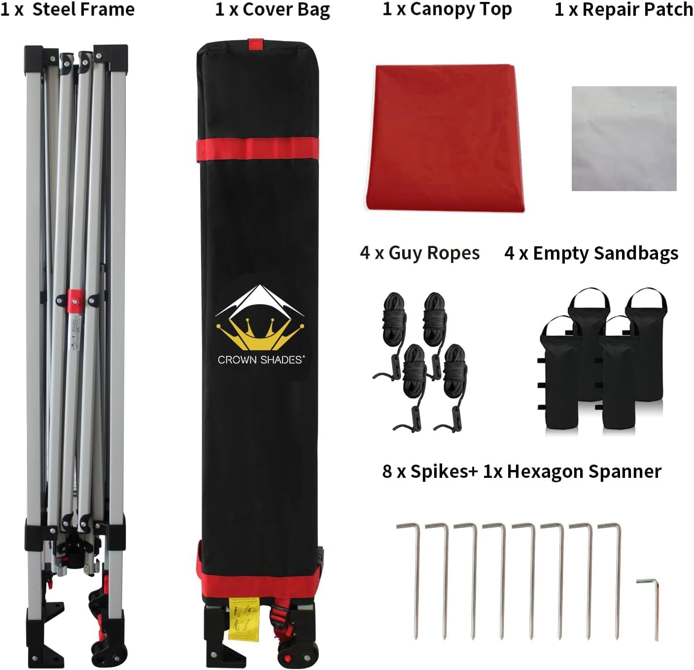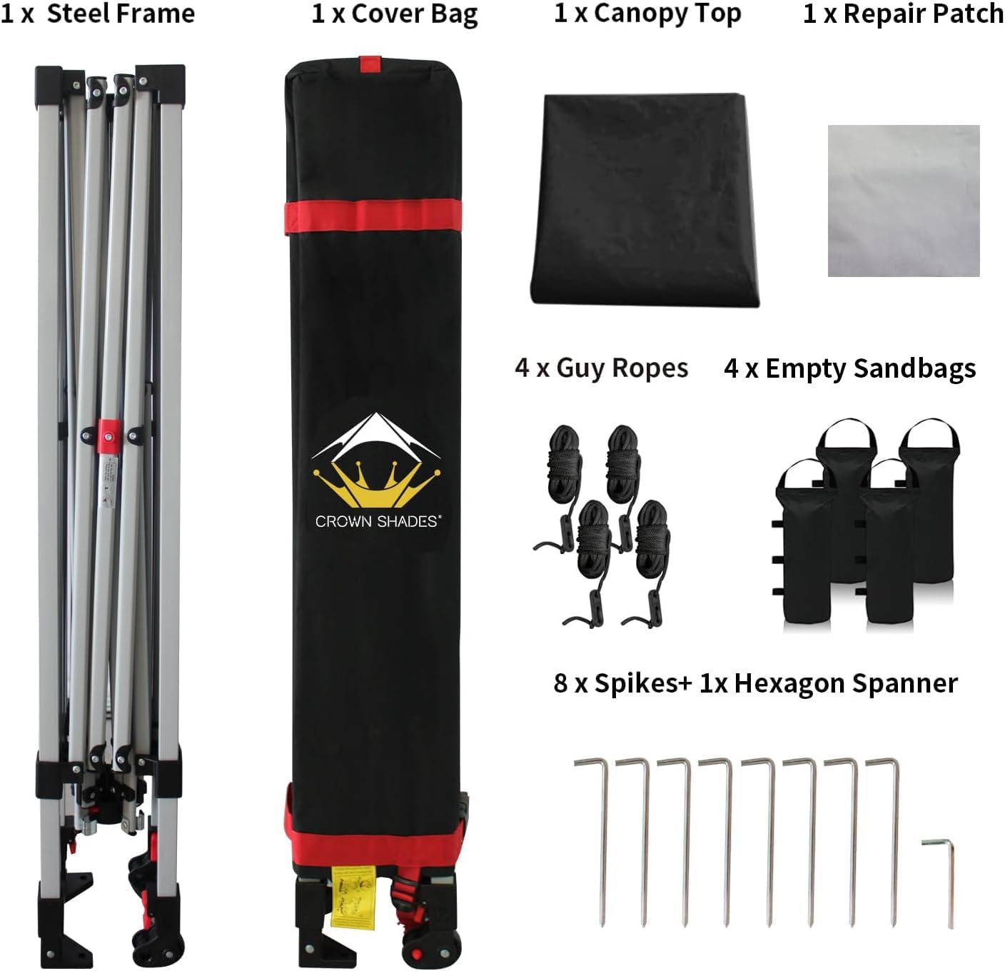 10x10 Pop-Up Awning - One-Click Installation Beach Tent - Outdoor Sunshade Silver Coated Top, 3 Heights and 4 Sand Pockets