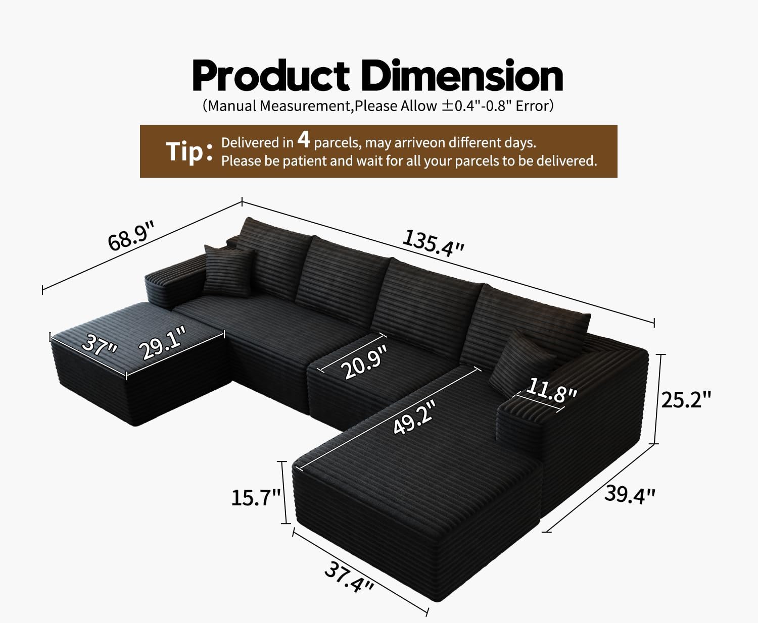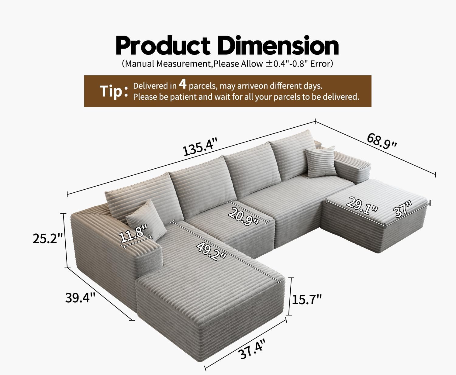 108" U-shaped sofa, modular sofa Comfortable cloud sofa