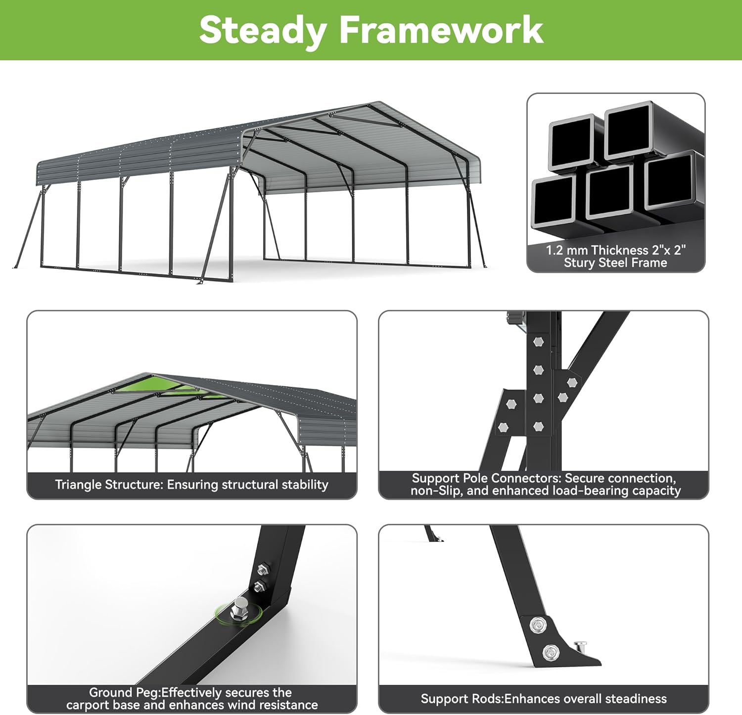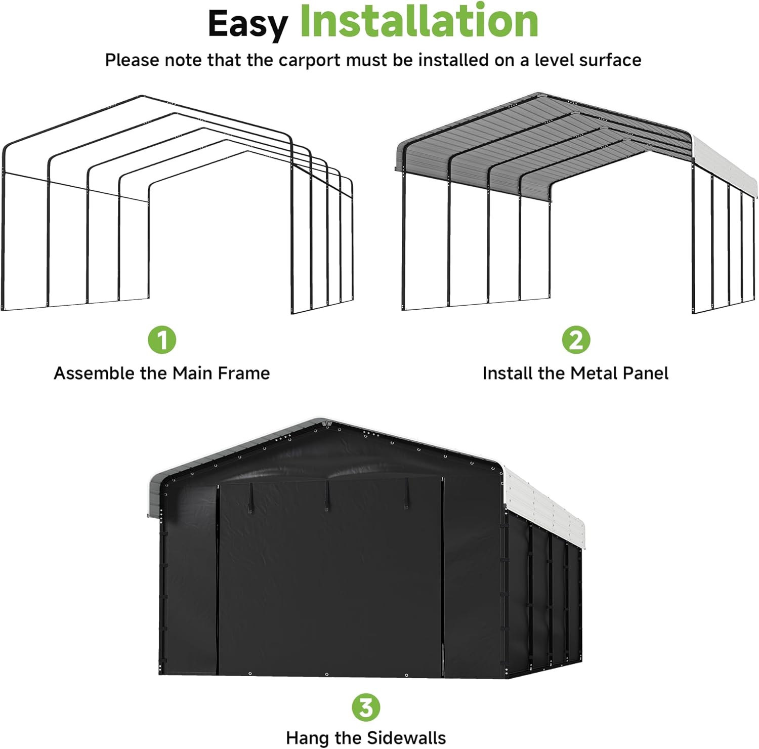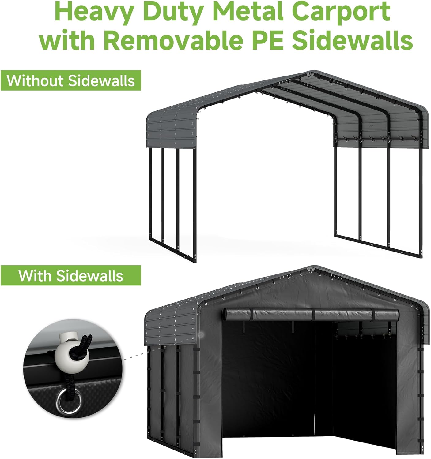 10'x15' Heavy Duty Metal Carport, Outdoor Garage Car Shelter Shade with Heavier Frame