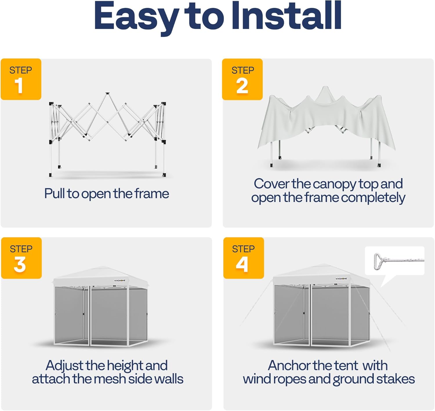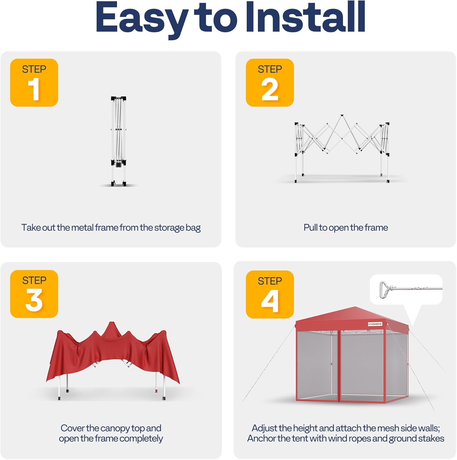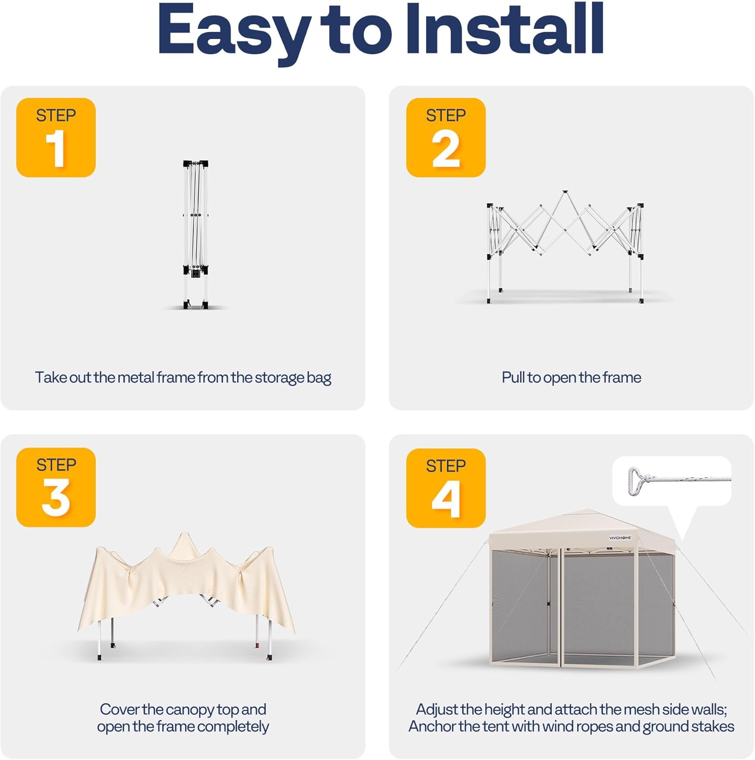 10x10ft Easy Pop-Up Canopy, Outdoor Screen Tent with Mosquito Netting, 2 Zipper Doors, and Roller Bag for Yard Camping Picnic Party Events, Beige