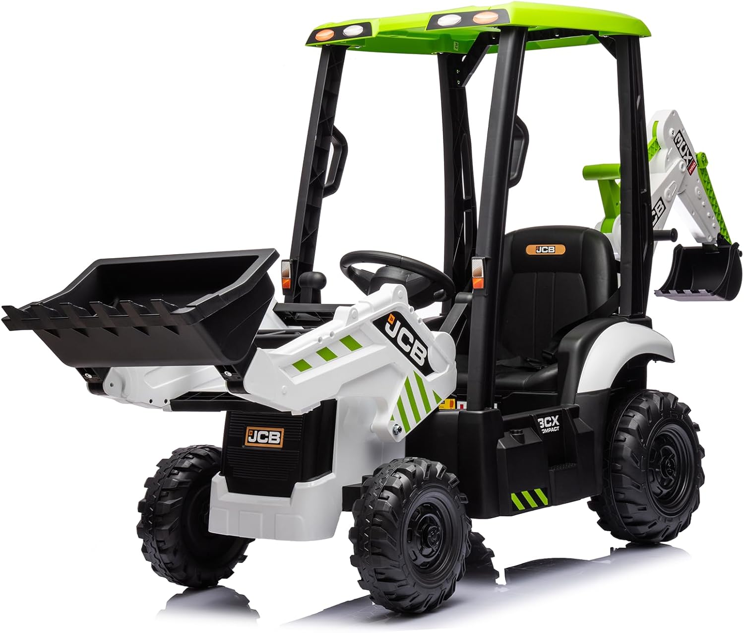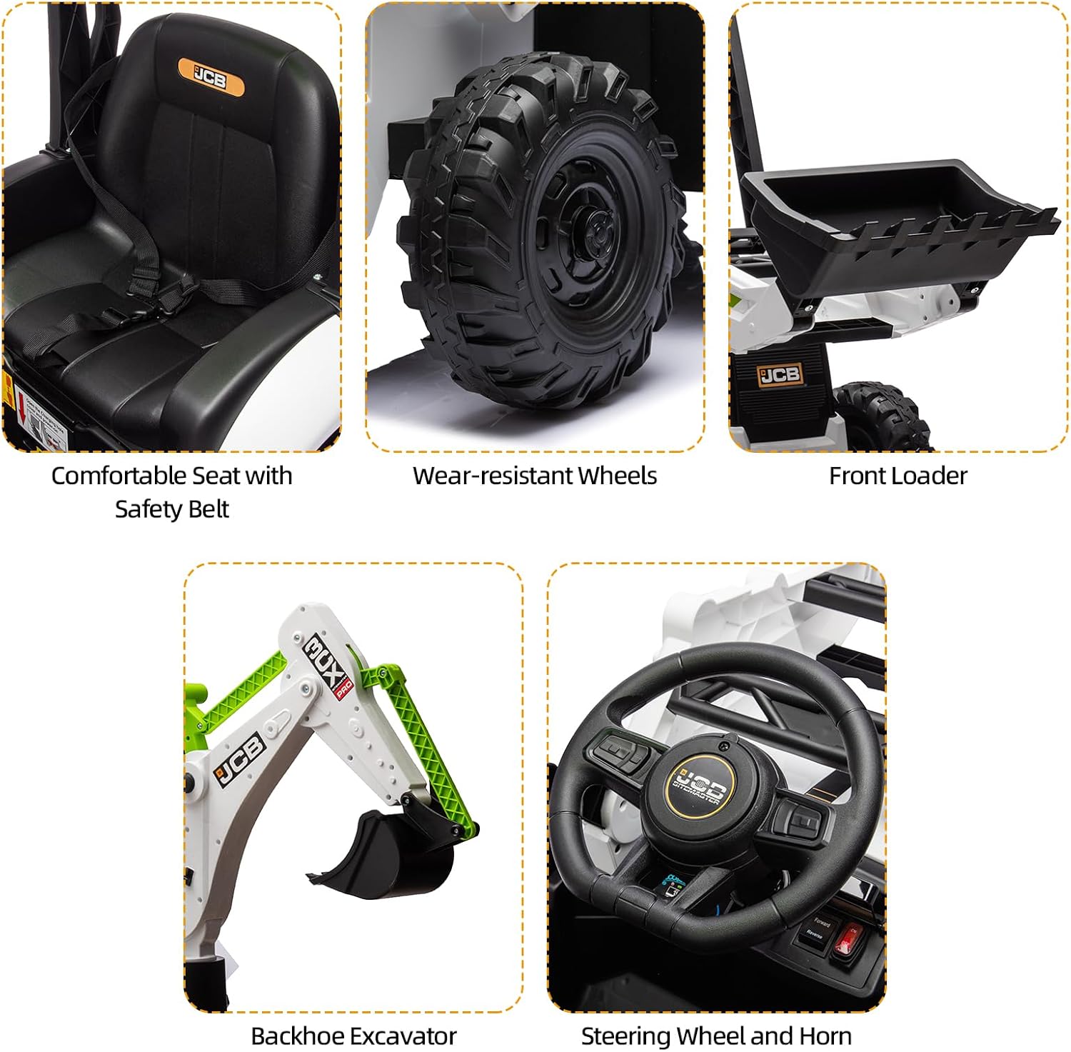 12V JCB Ride On Excavator, Ride on Toys for Kids 4-8, Electric Car for Kids with Tractor, Bulldozer, Digging Arm, Backhoe Toy Car with Slow Start/Stop, Adjustable Speeds