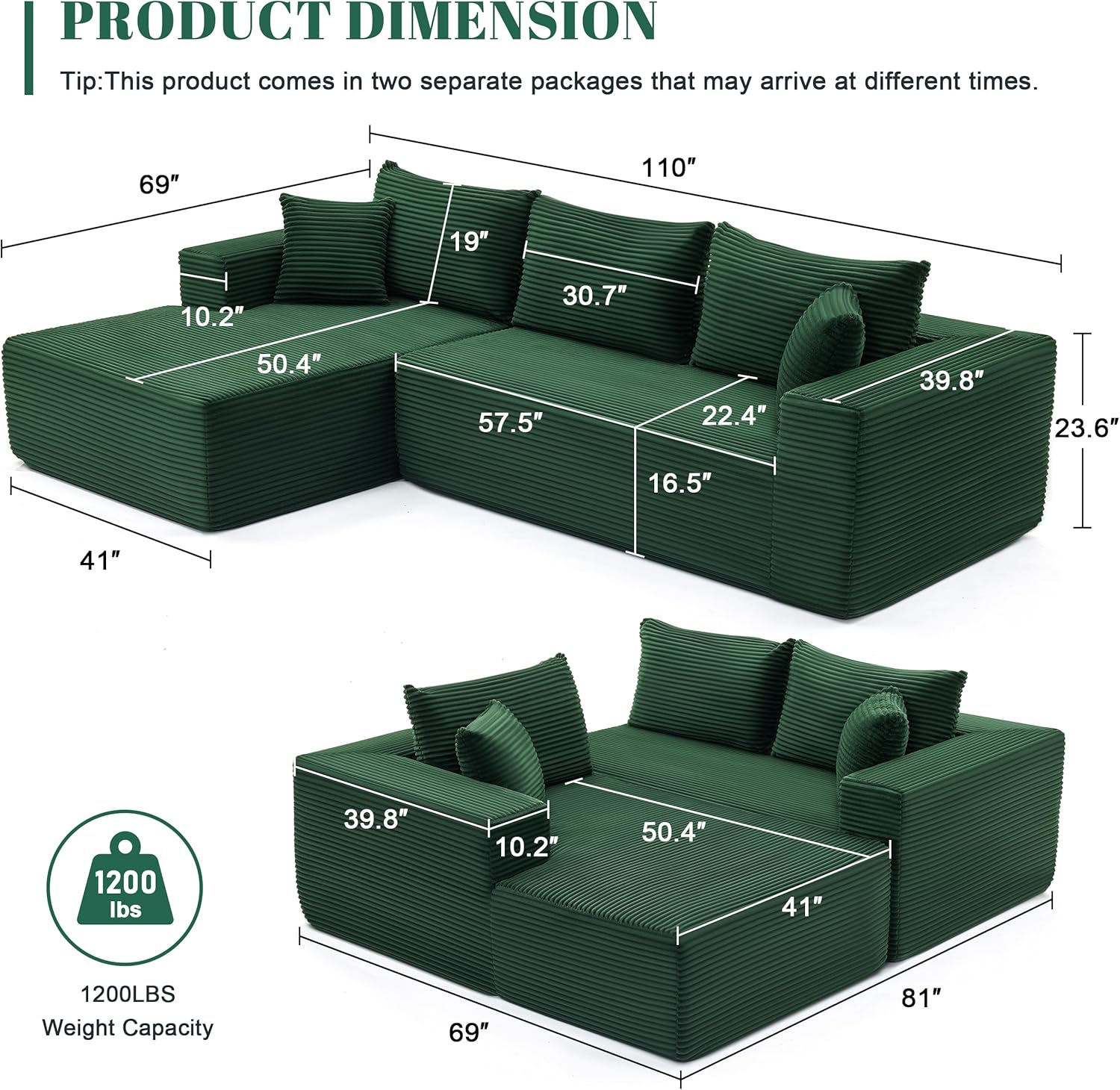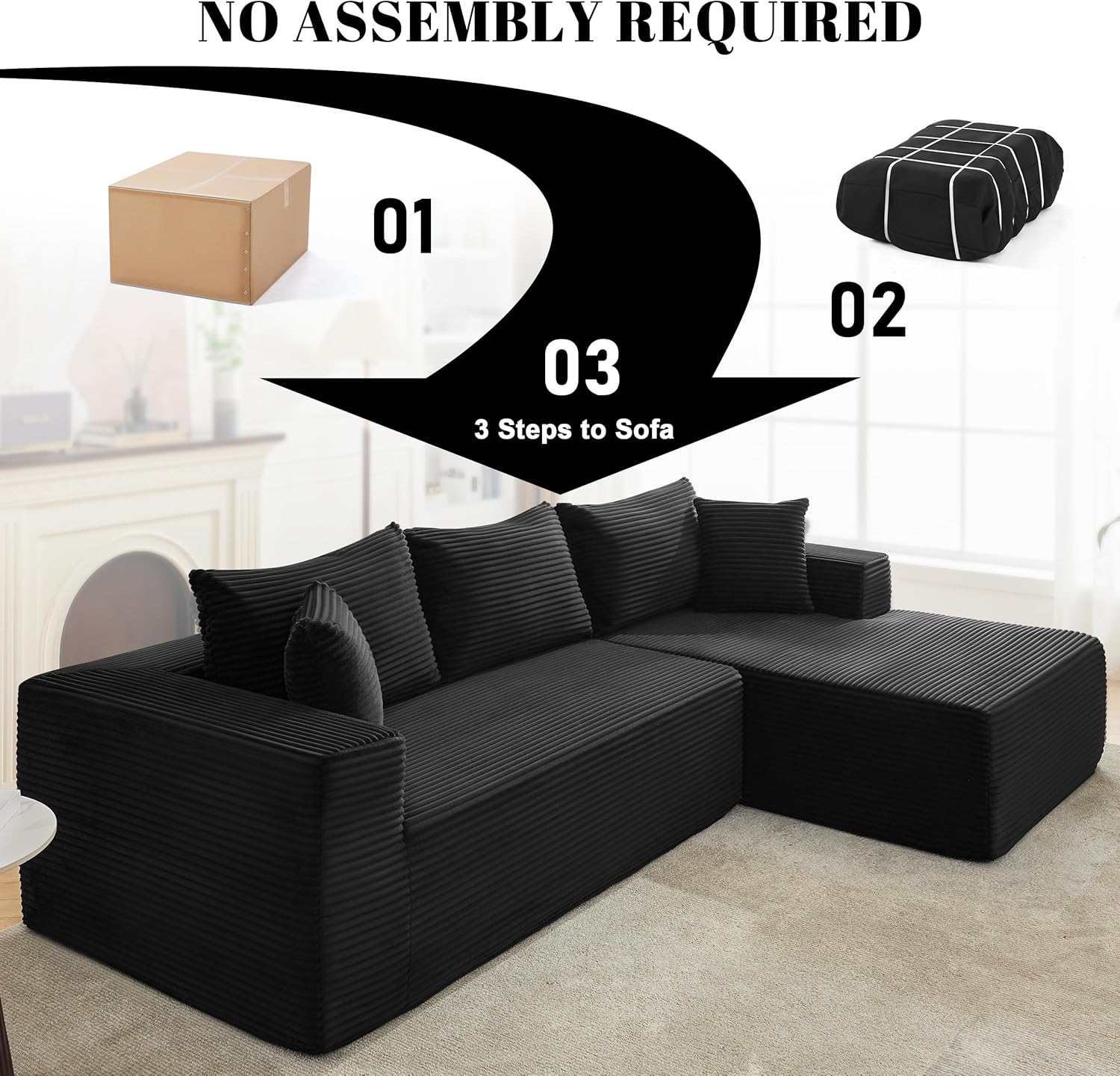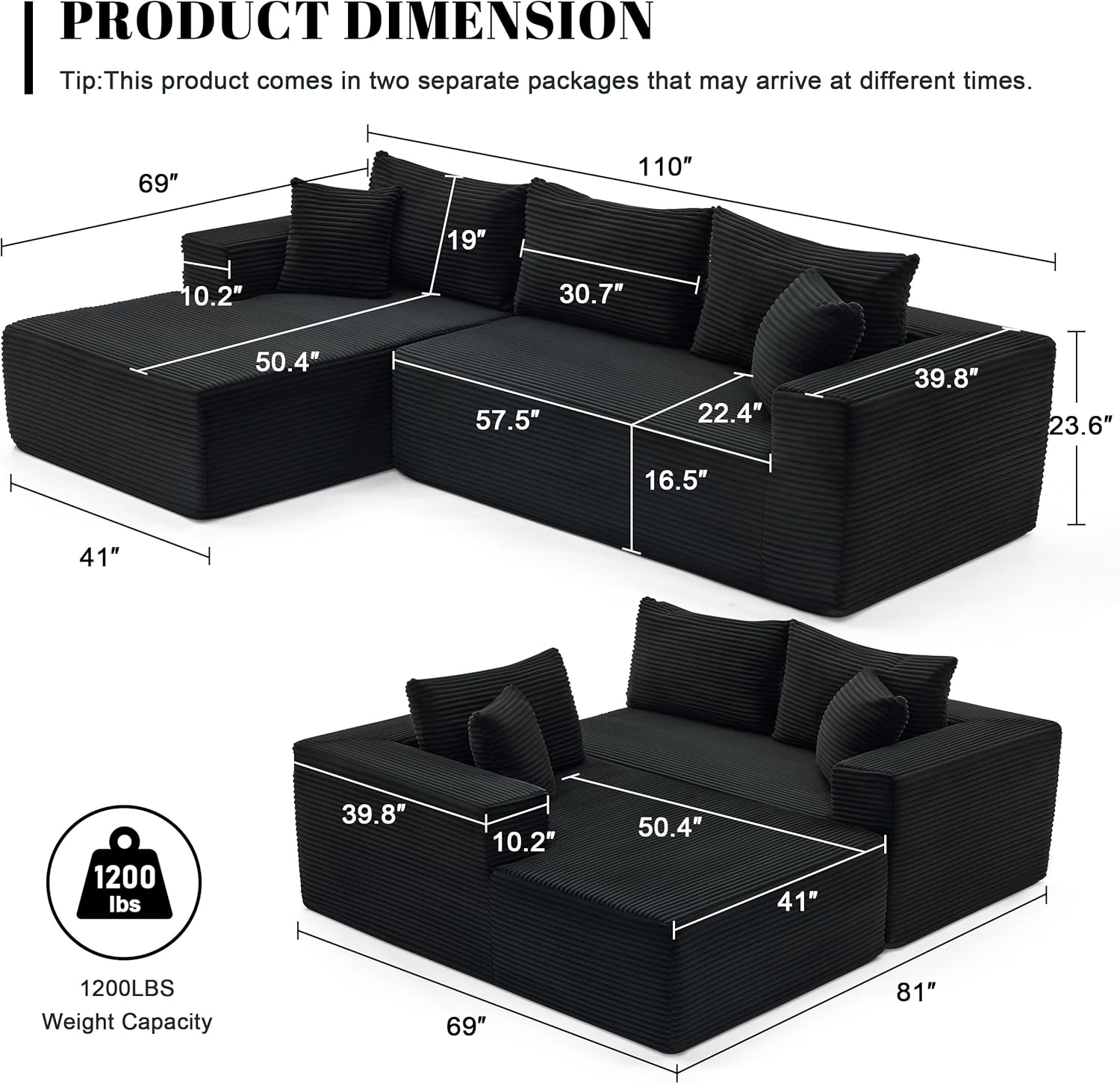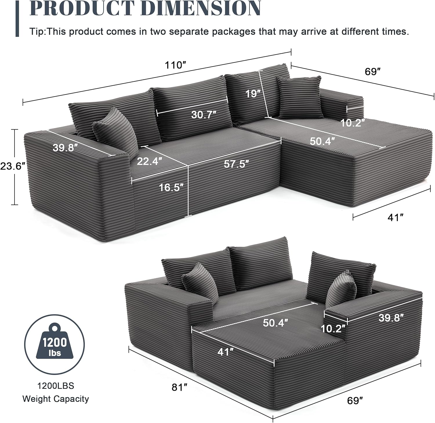 107.5 inch Cloud Modular Sectional Sofa with L-Shaped Chaise Lounge, Modern Minimalist Upholstered Sofa Deep Seating Corner Sofa