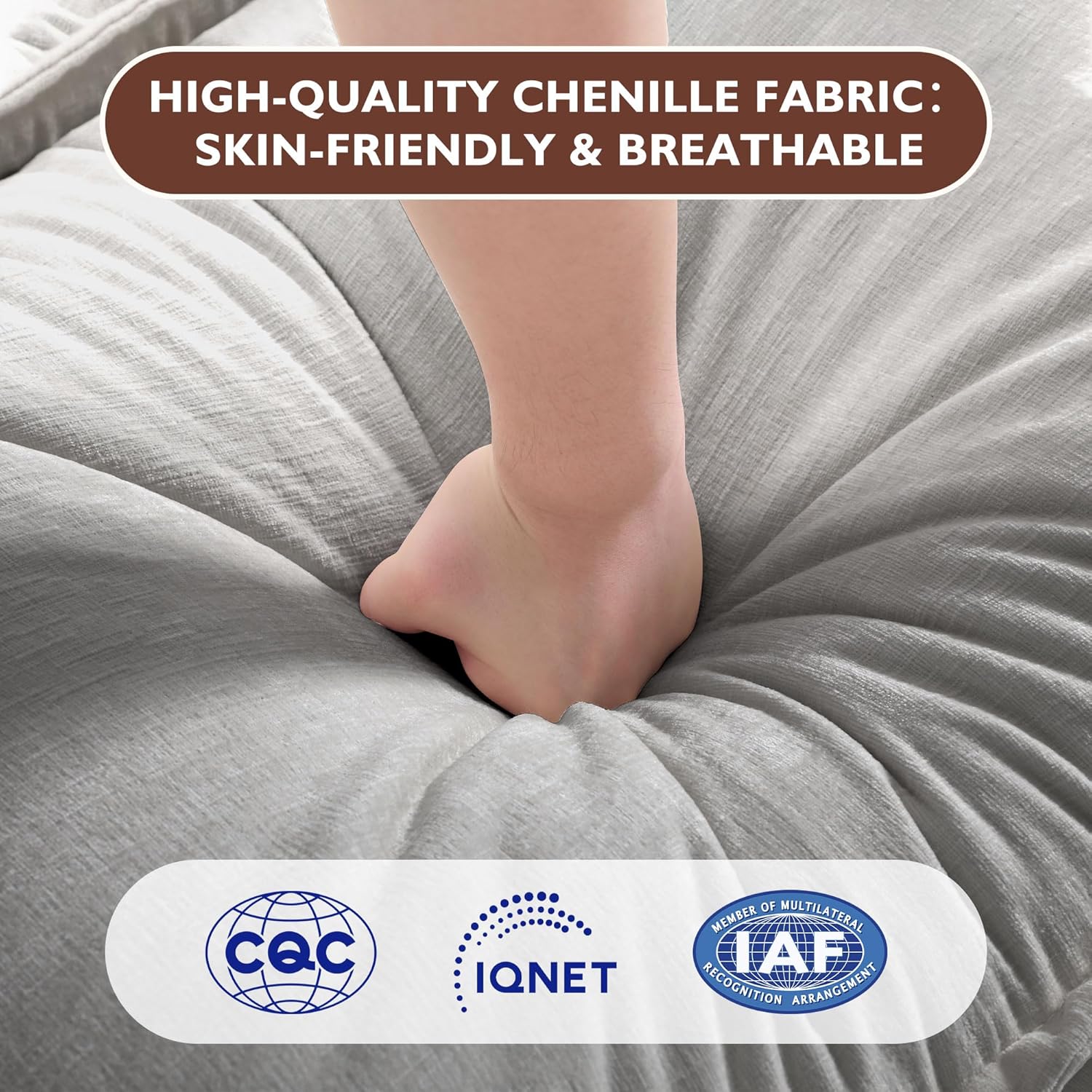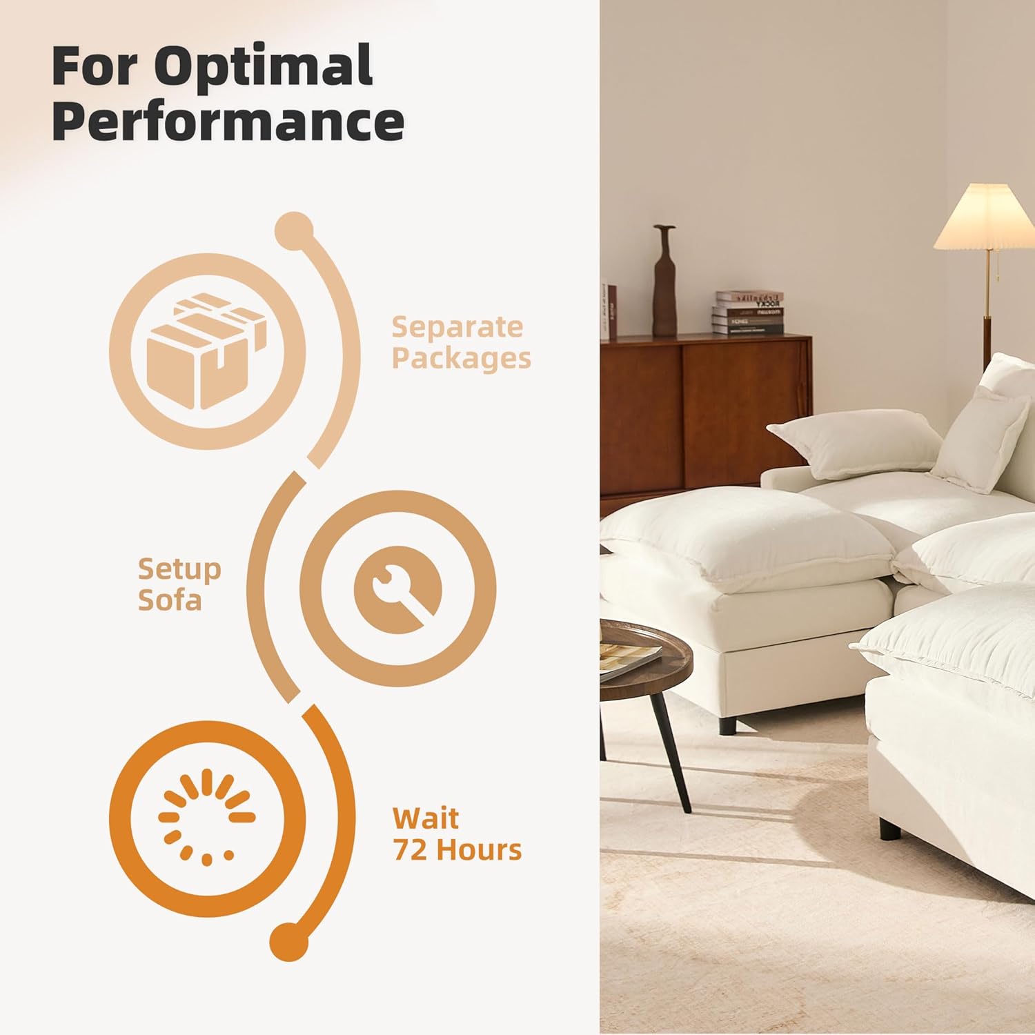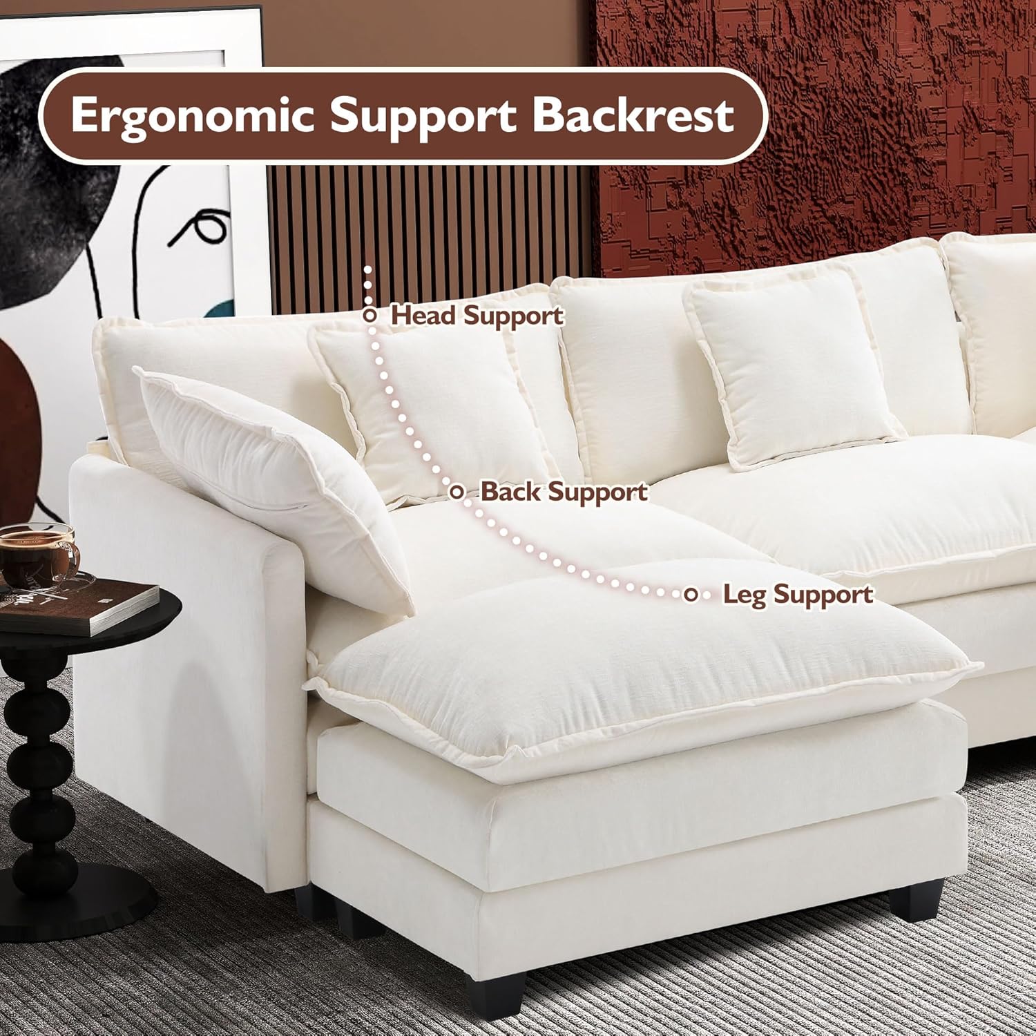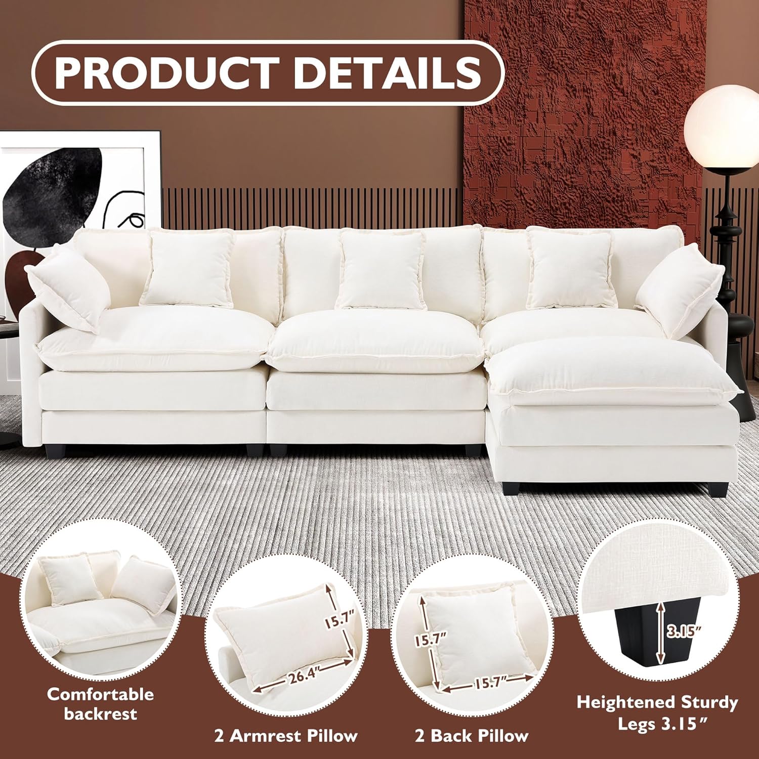 111.4 Inch L-Shaped Modern Sofa Modular Cloud Sofa with Ottoman, 4-Seater Chenille Deep Seat Sofa with Pillows for Living Room, Bedroom and Apartment, Beige