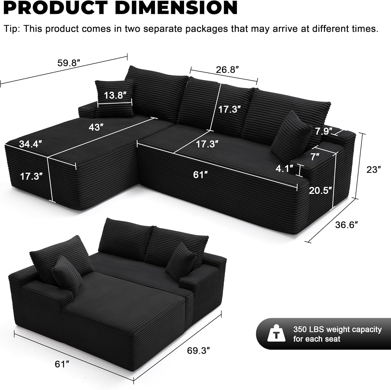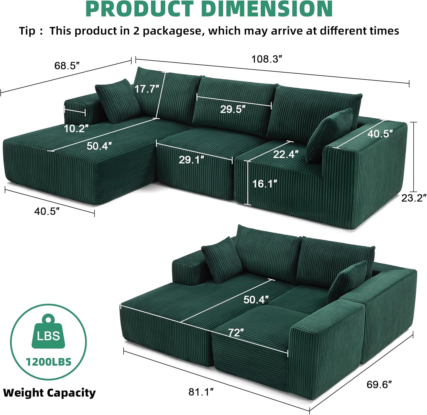 108 inch sectional sofa, cloud sectional sofa with deep seat, modern sectional L shaped sofa