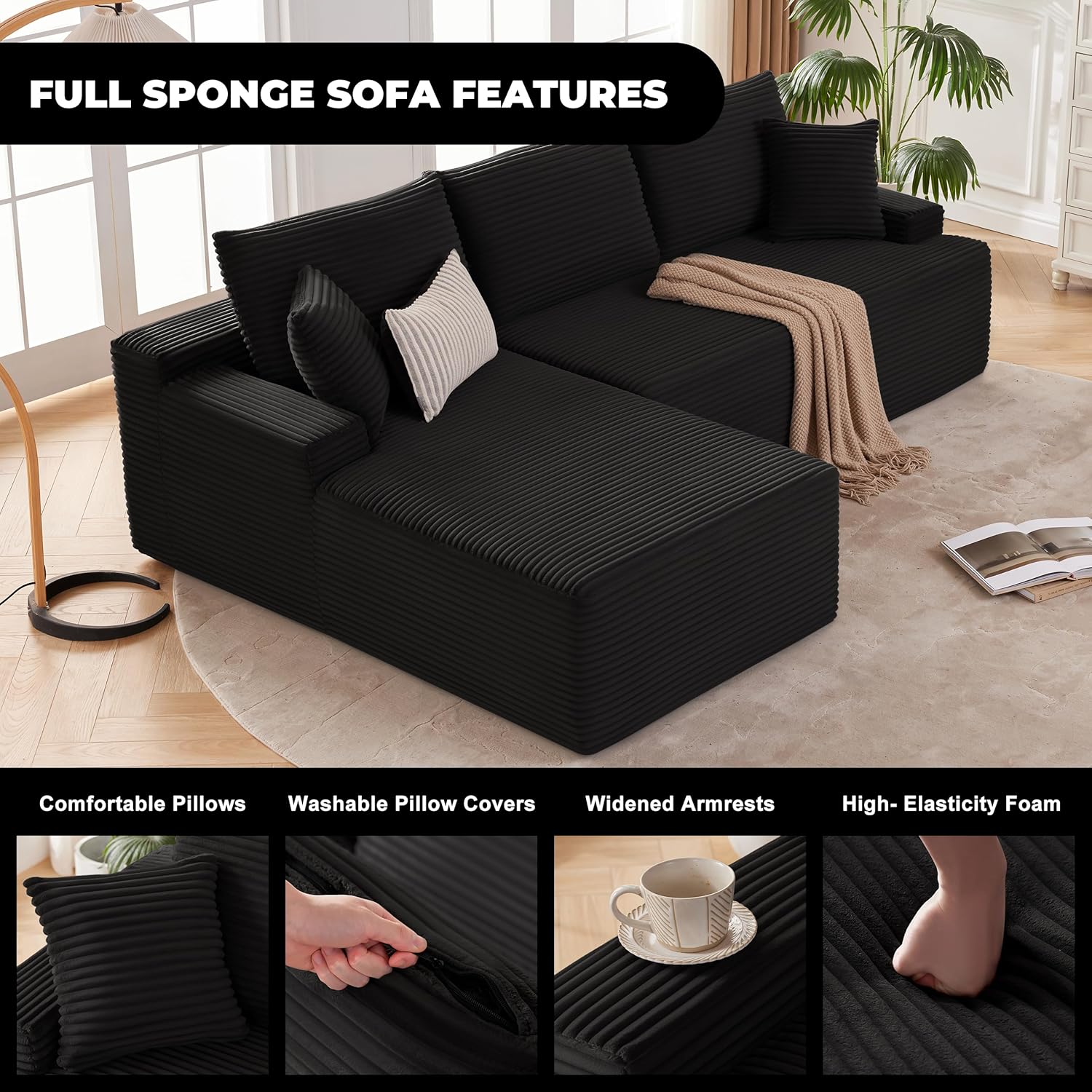 110 inch cloud sectional sofa for living room, convertible L-shaped sofa 3 seater sectional sofa