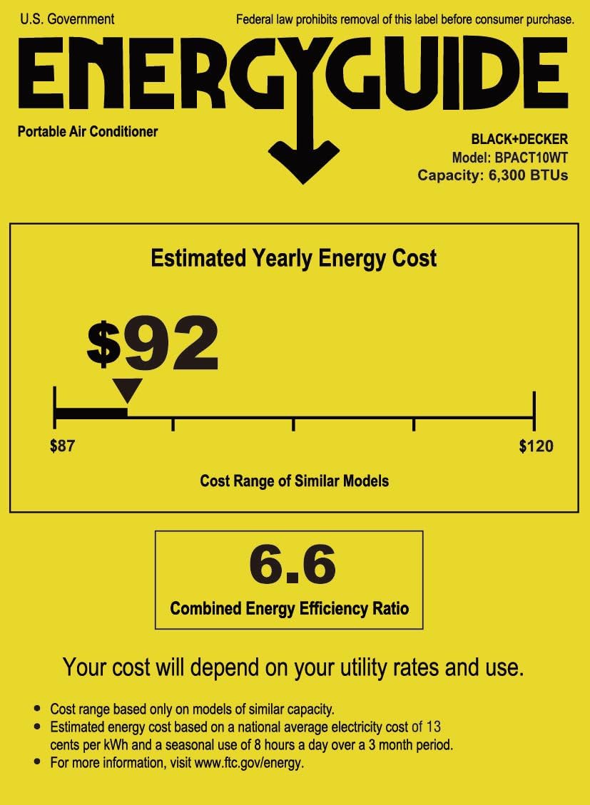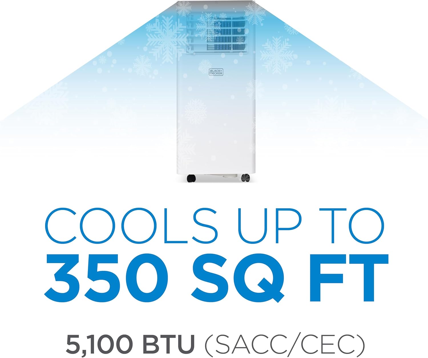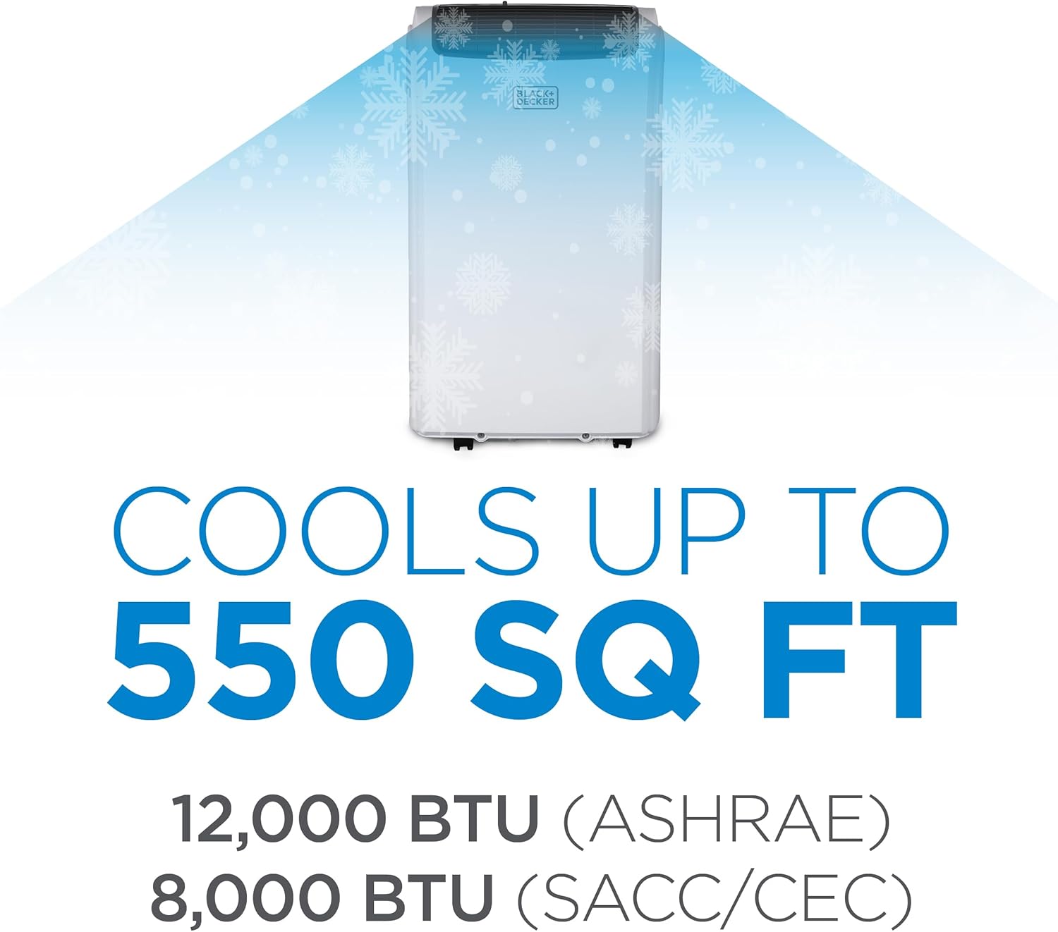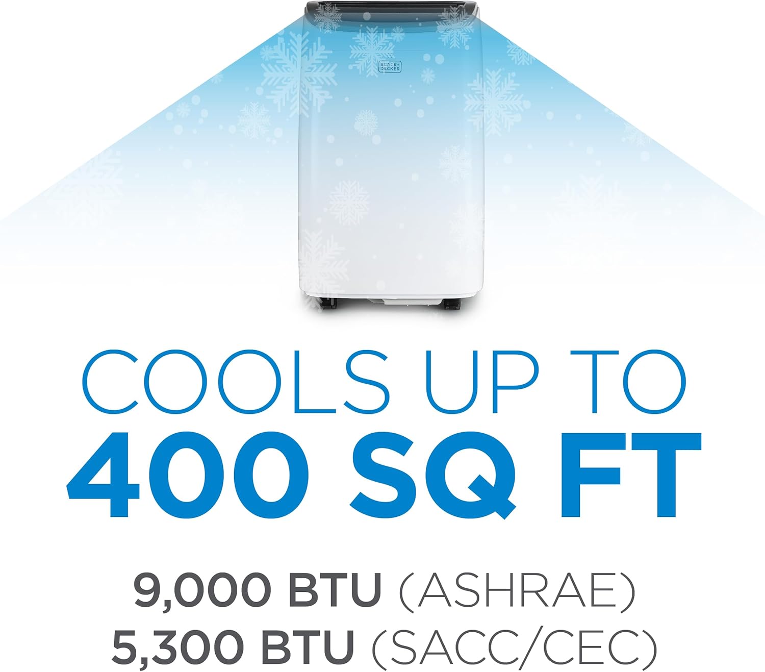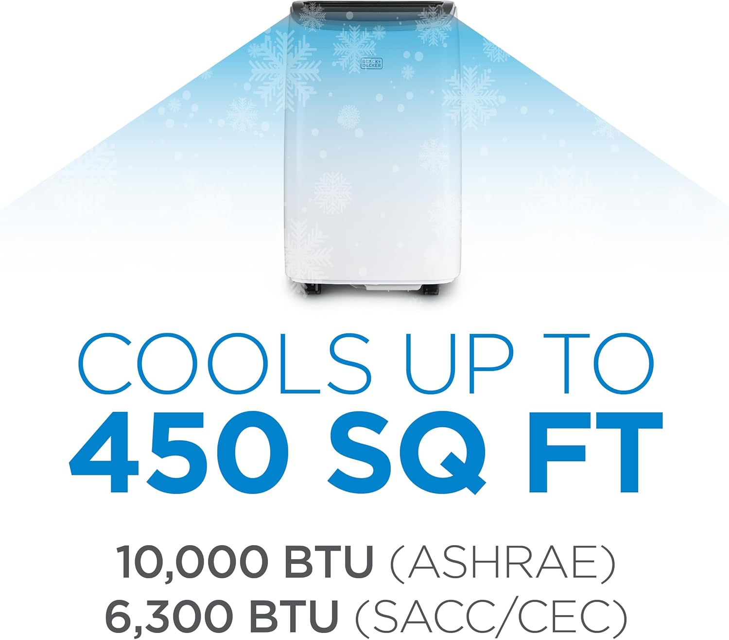 BLACK+DECKER 10,000 BTU Portable Air Conditioner for Rooms up to 450 Sq. with Remote Control, White