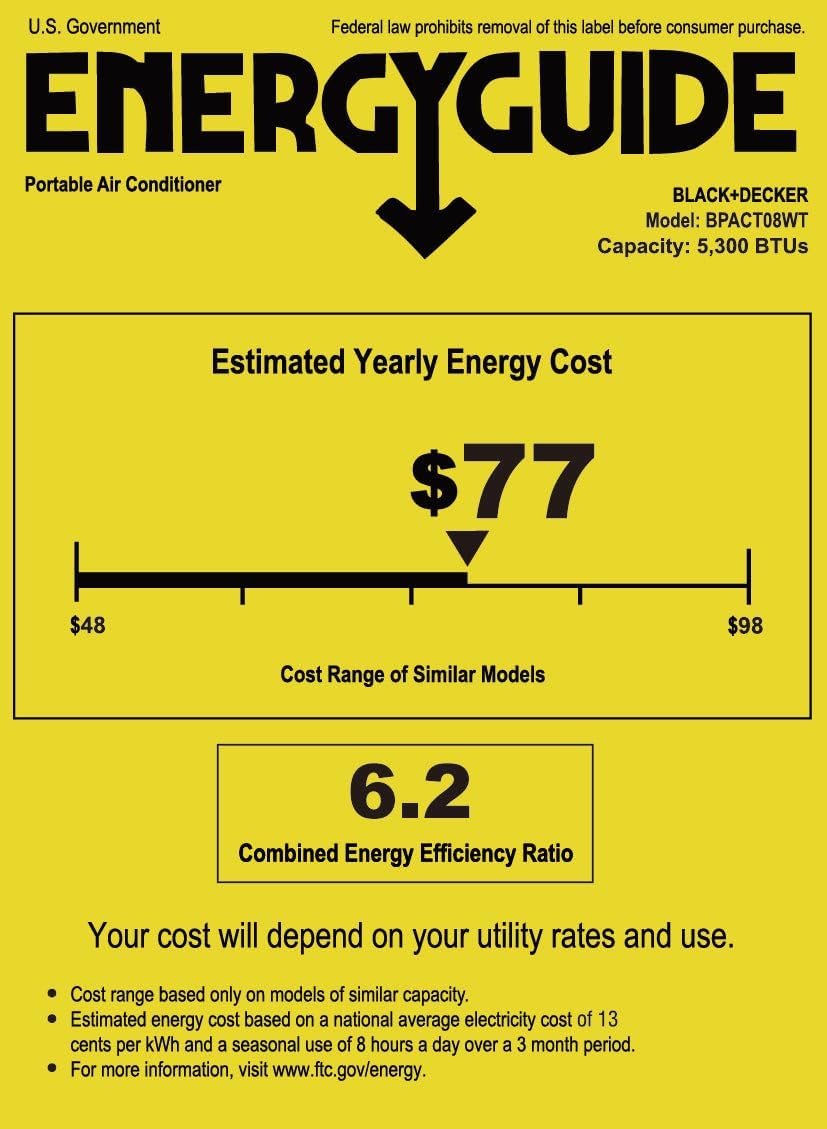 BLACK+DECKER Window Air Conditioner 5000 BTU, Cools Up to 150 Square Feet, AC Unit with Mechanical Controls, Manual Fan Only and Cool Settings, BD05MWT6, White