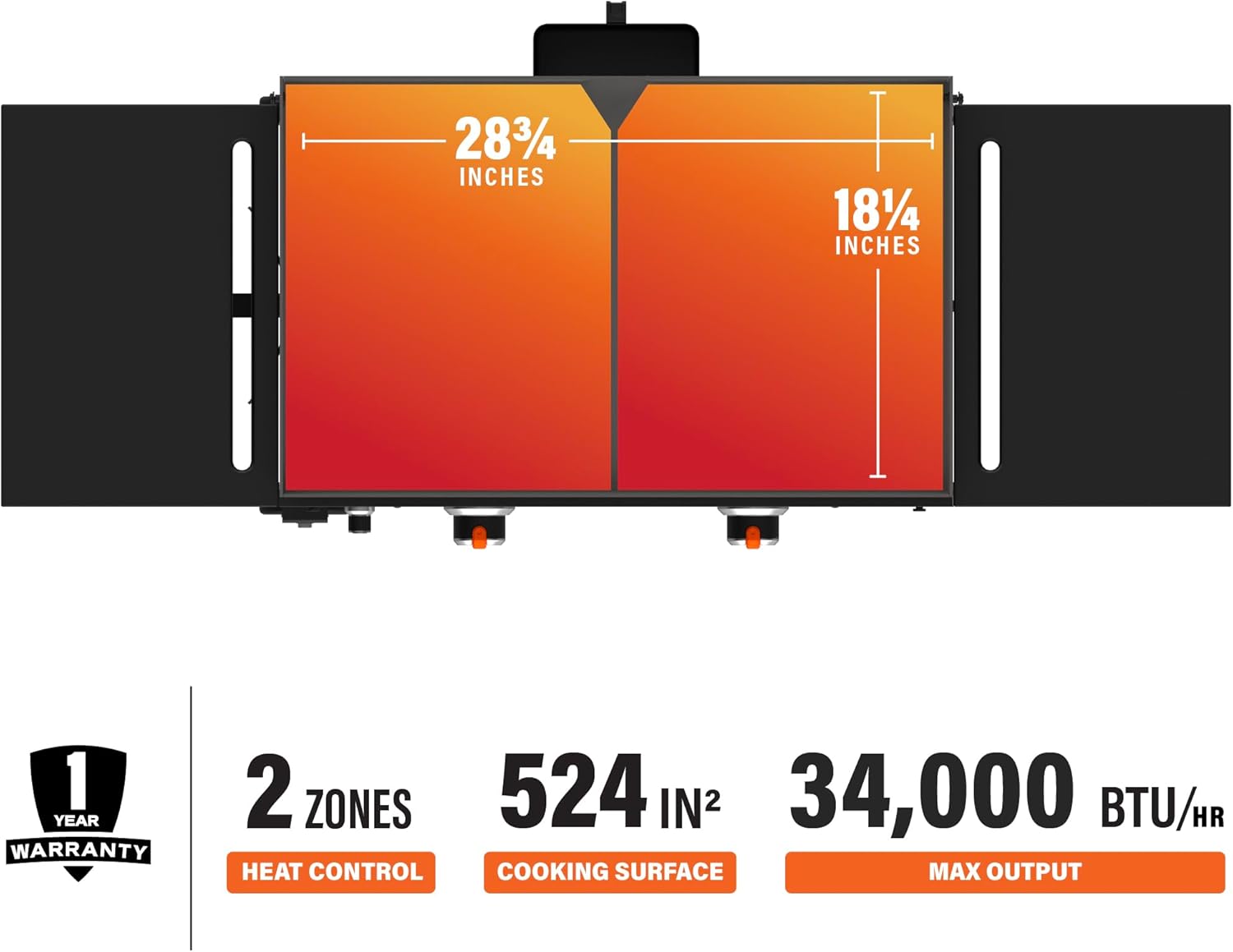 Blackstone 1883 Original 28” Griddle with Integrated Protective Hood and Counter Height Side Shelves, Powder Coated Steel, Black