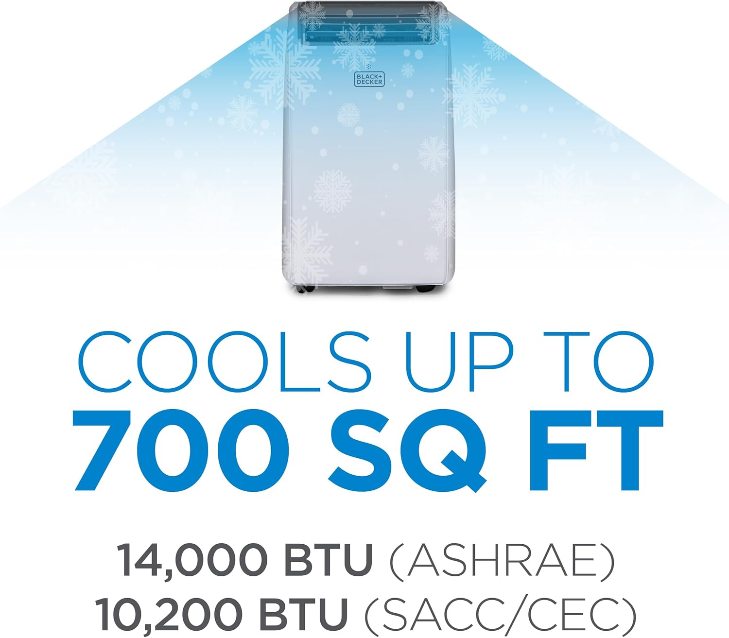 BLACK+DECKER Air Conditioner, 14,000 BTU Air Conditioner Portable for Room up to 700 Sq. Ft. with Remote Control, White