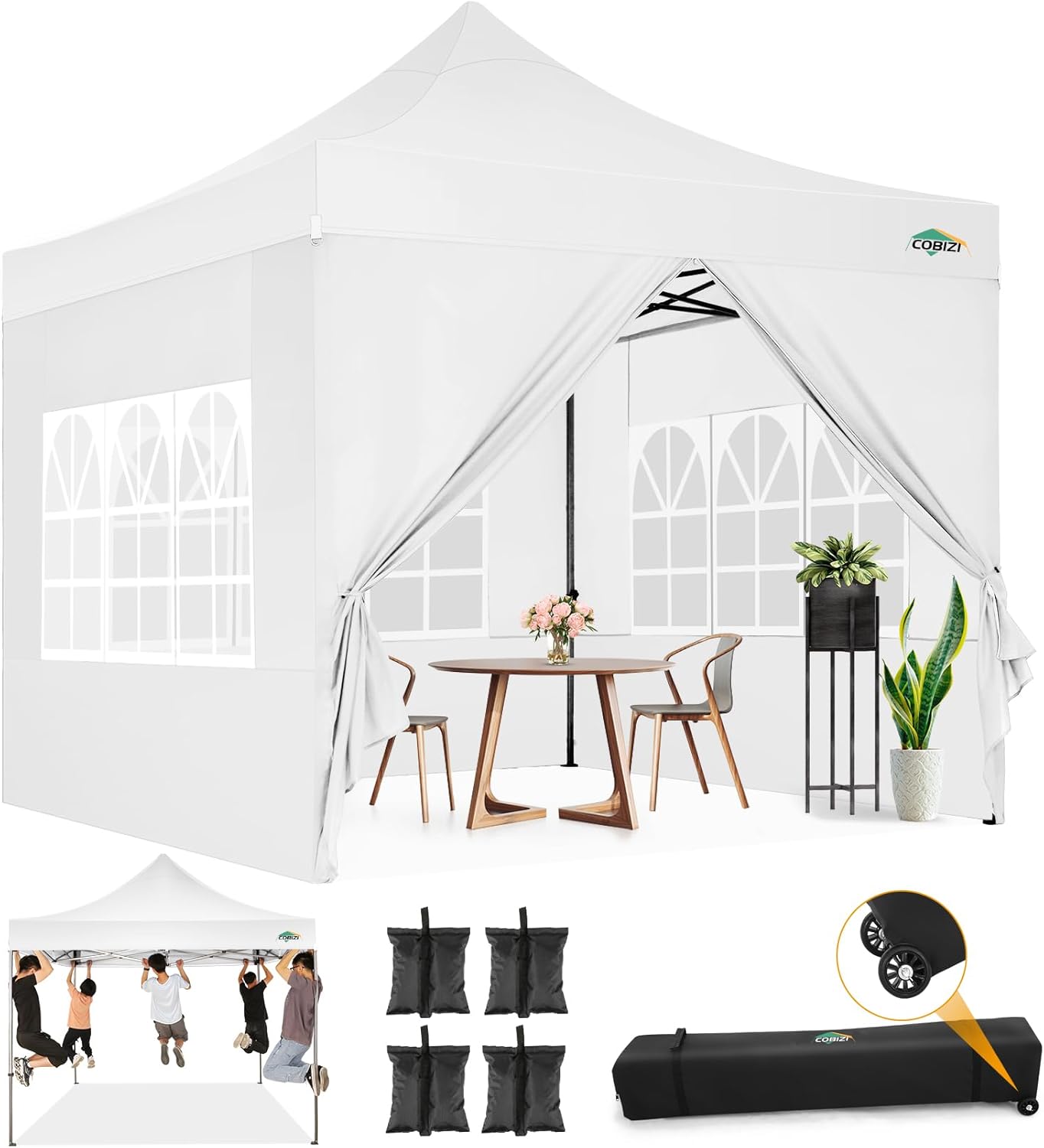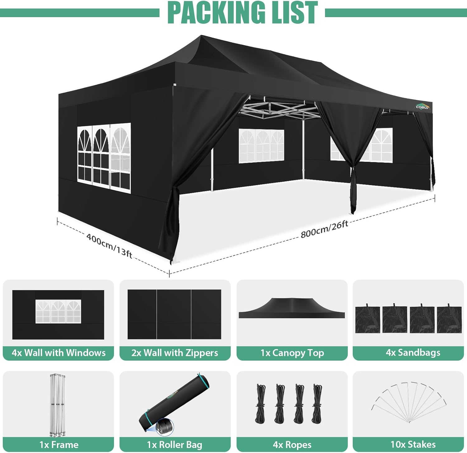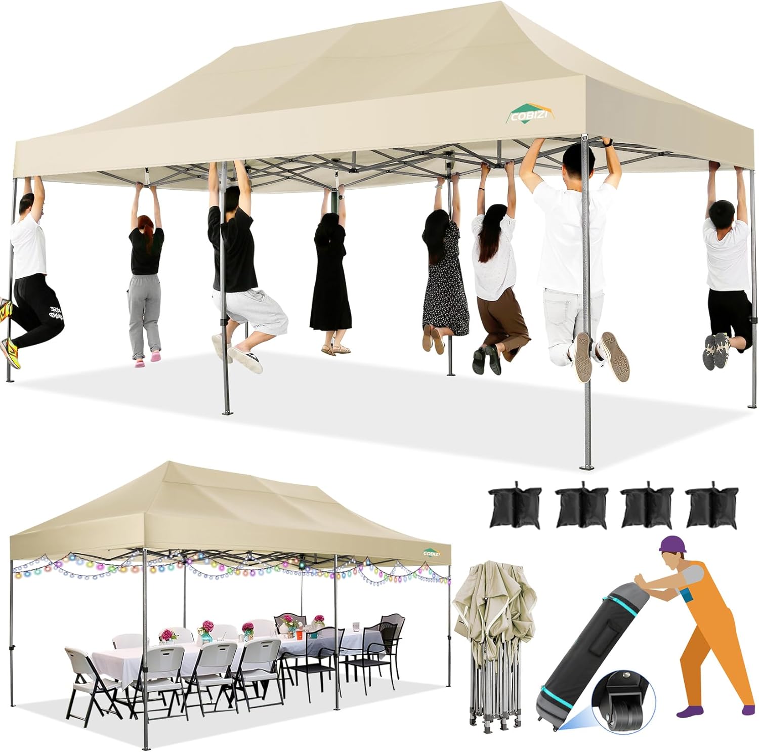 COBIZI 10x20 Heavy Duty Pop up Canopy Tent with 6 sidewalls Easy Up Commercial Outdoor Canopy Wedding Party Tents for Parties All Season Wind & Waterproof Gazebo with Roller Bag,Black(Frame Thickened)