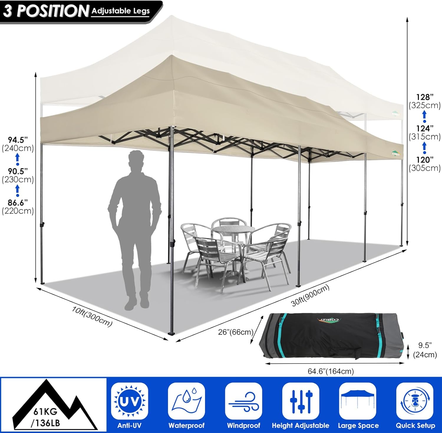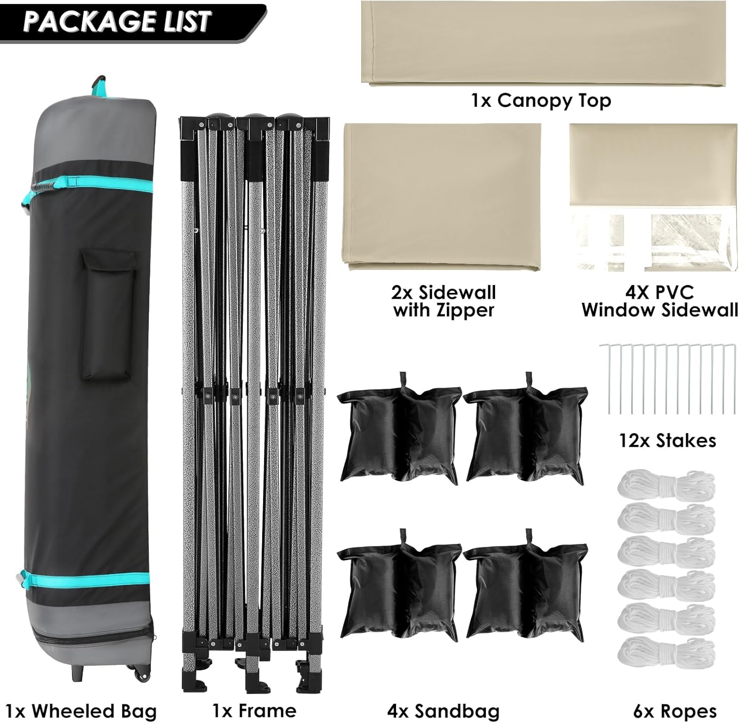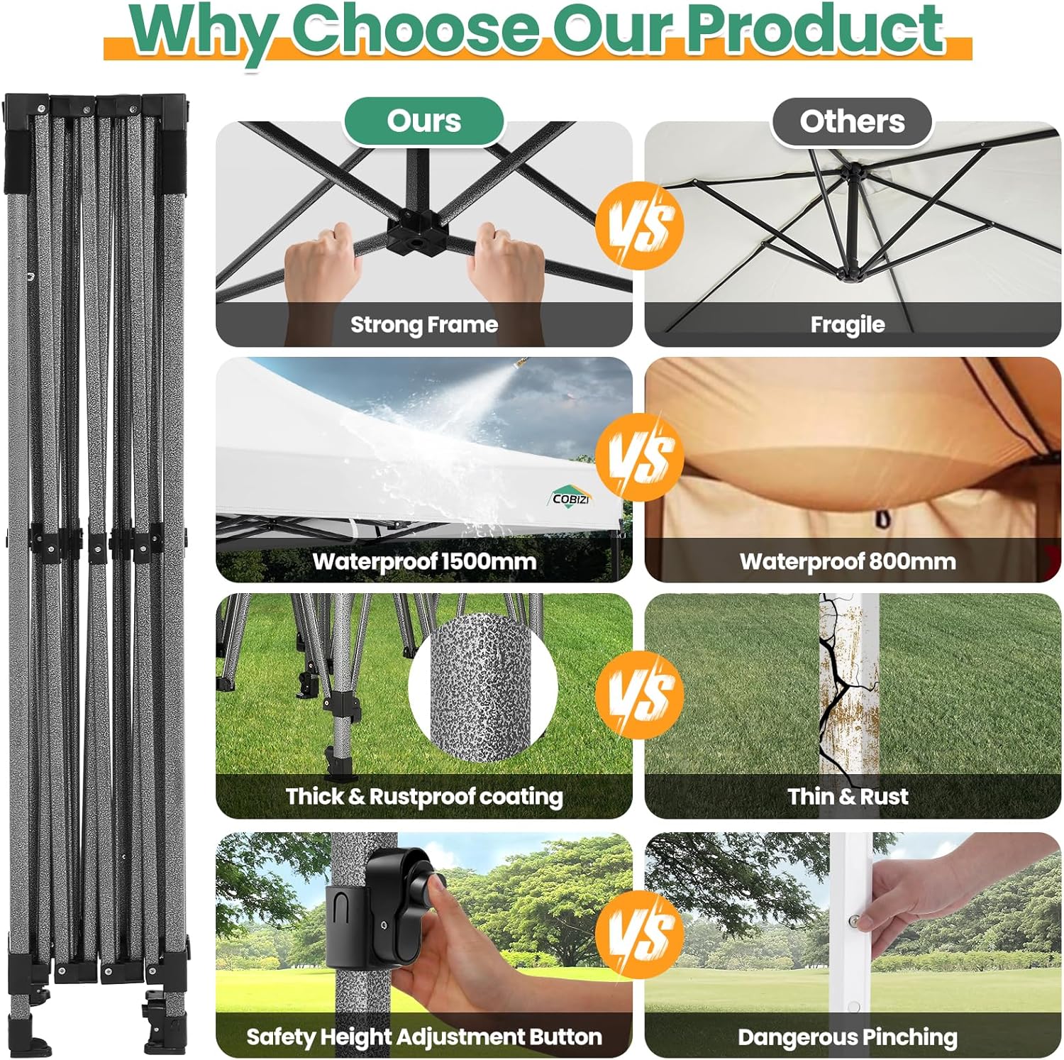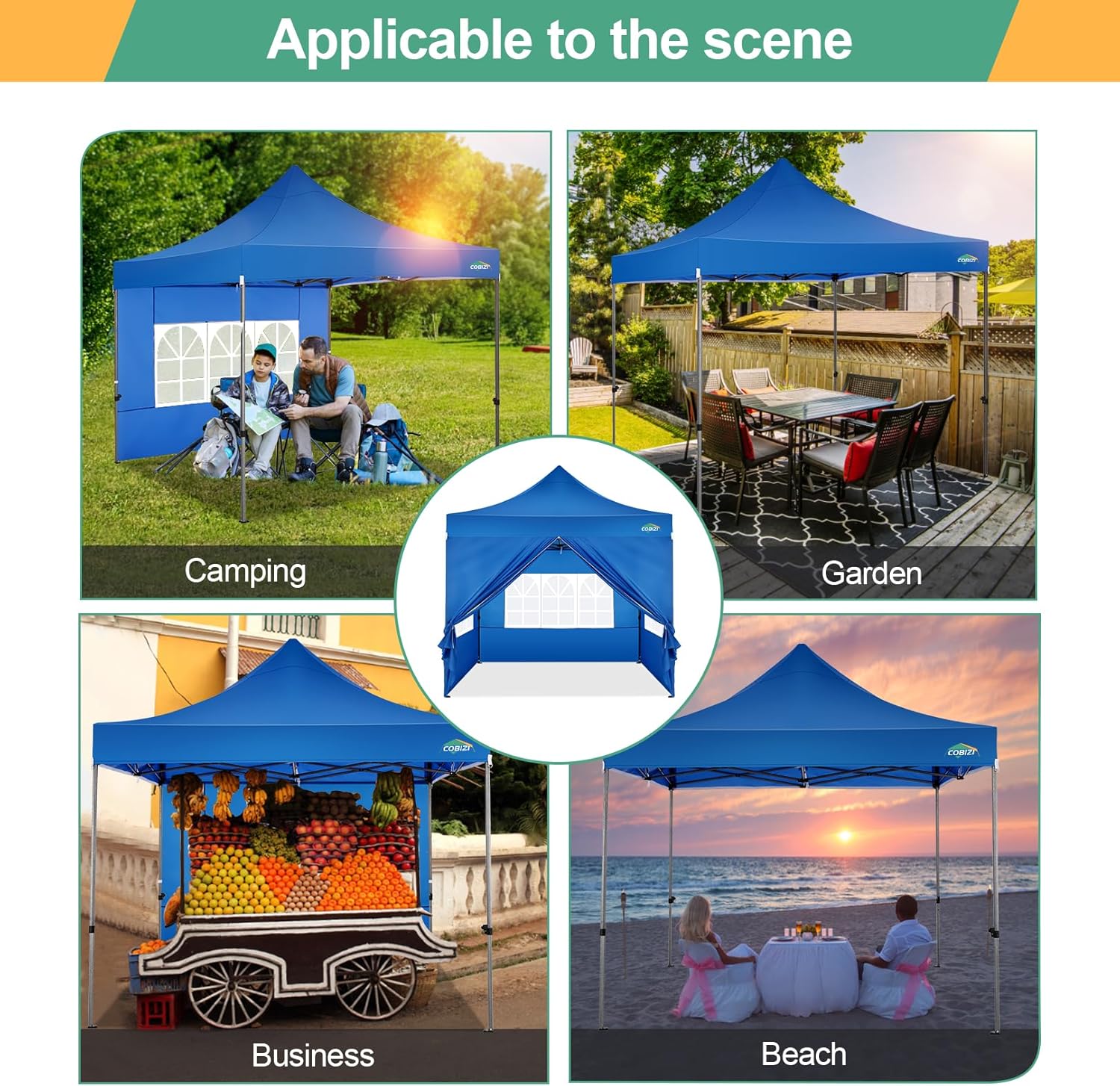 COBIZI 10x20 Heavy Duty Pop up Canopy Tent with 6 sidewalls Easy Up Commercial Outdoor Canopy Wedding Party Tents for Parties All Season Wind & Waterproof Gazebo with Roller Bag,Black(Frame Thickened)
