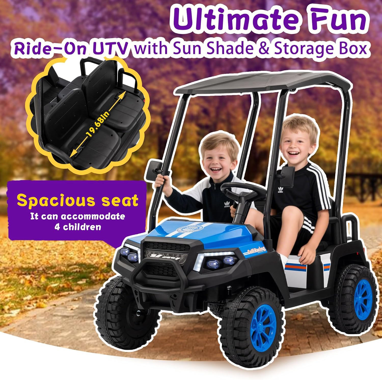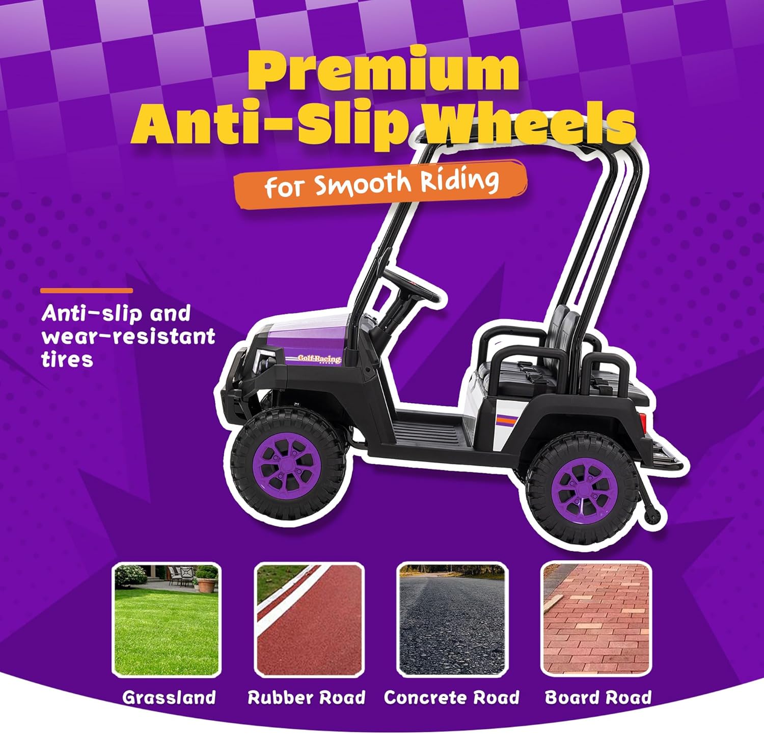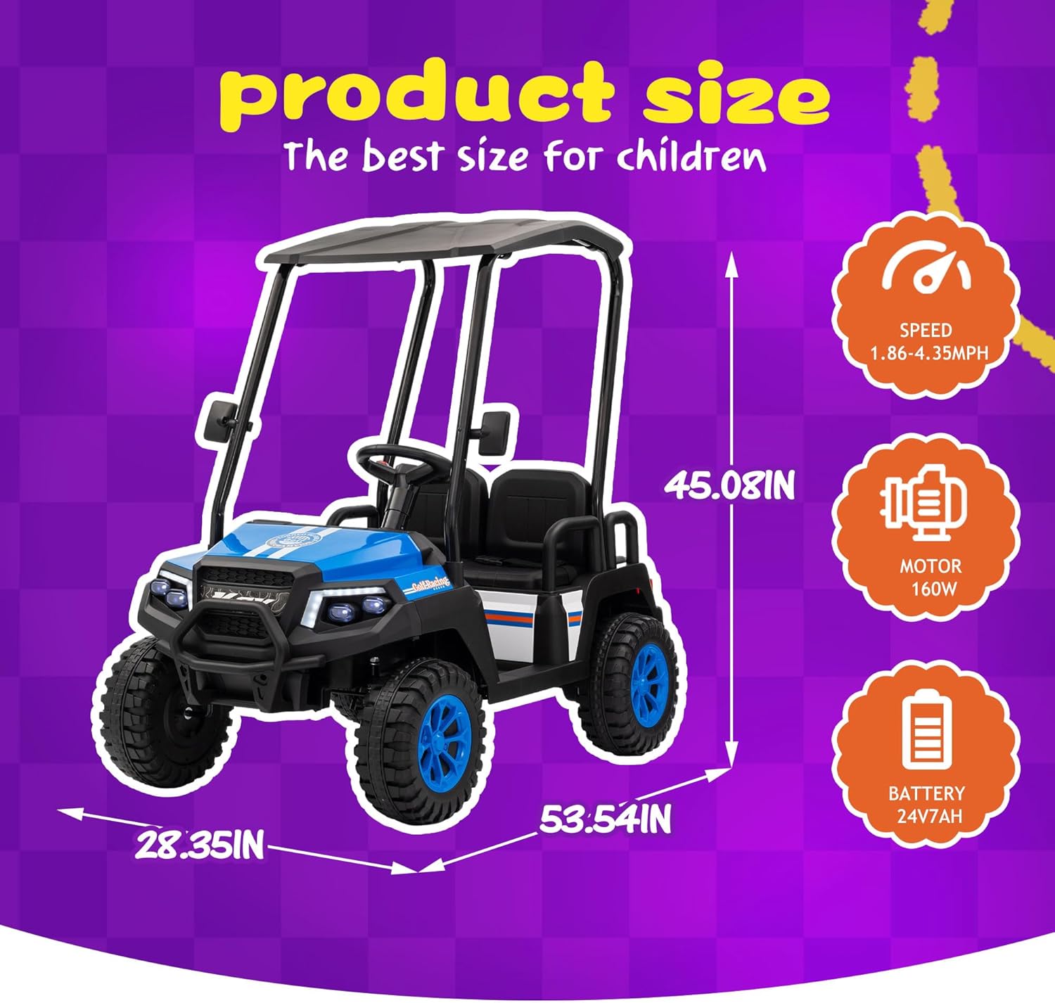 24V 7AH Children's Golf Cart with Remote Control, Removable Awning, 4-Wheel Spring Suspension