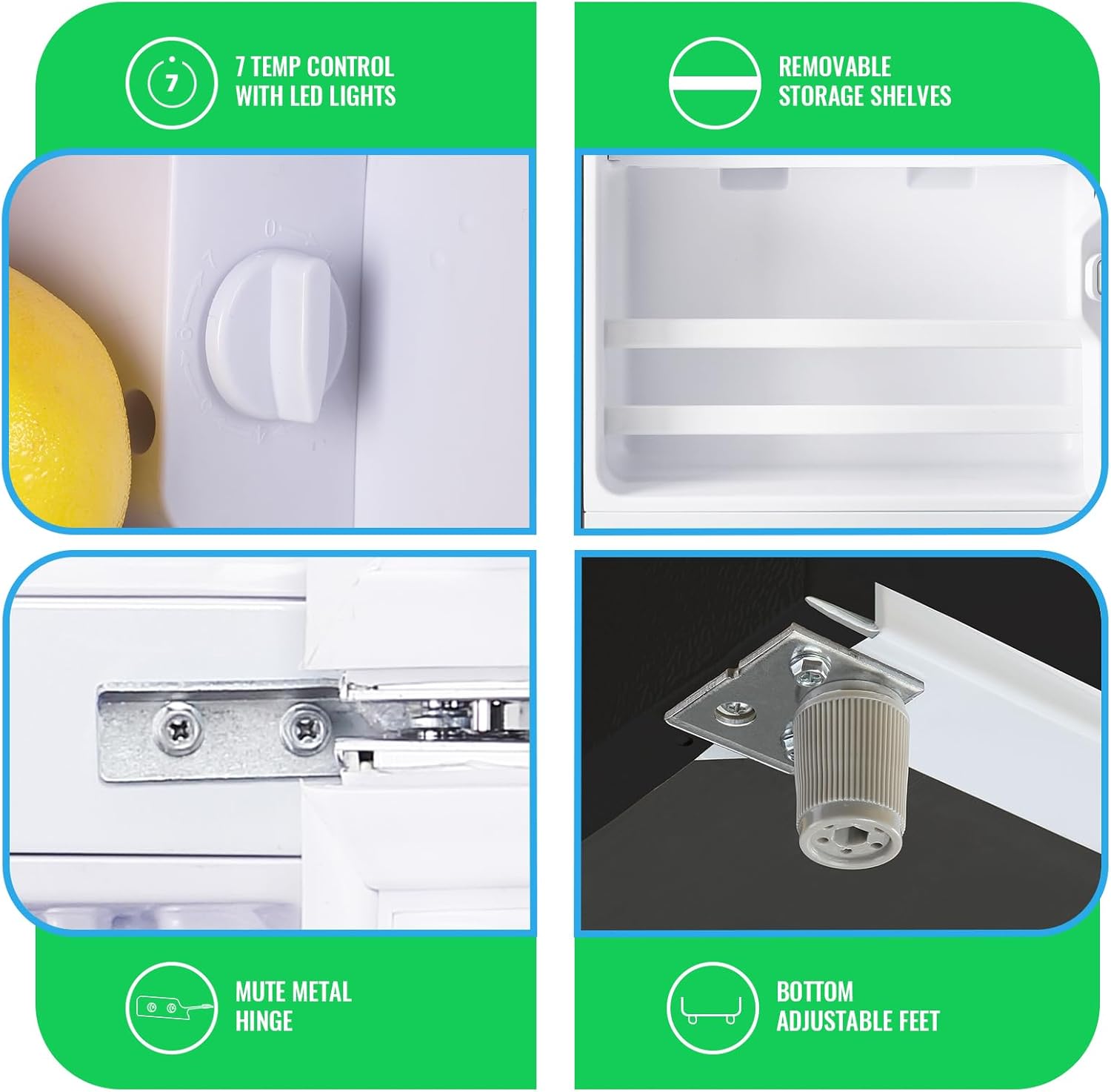 2.4 Cu.Ft Mini Fridge with Freezer & Double Door Small Tiny Size Refrigerator with 7 Temperature Control Knob Only Suitable for One Person Use Black