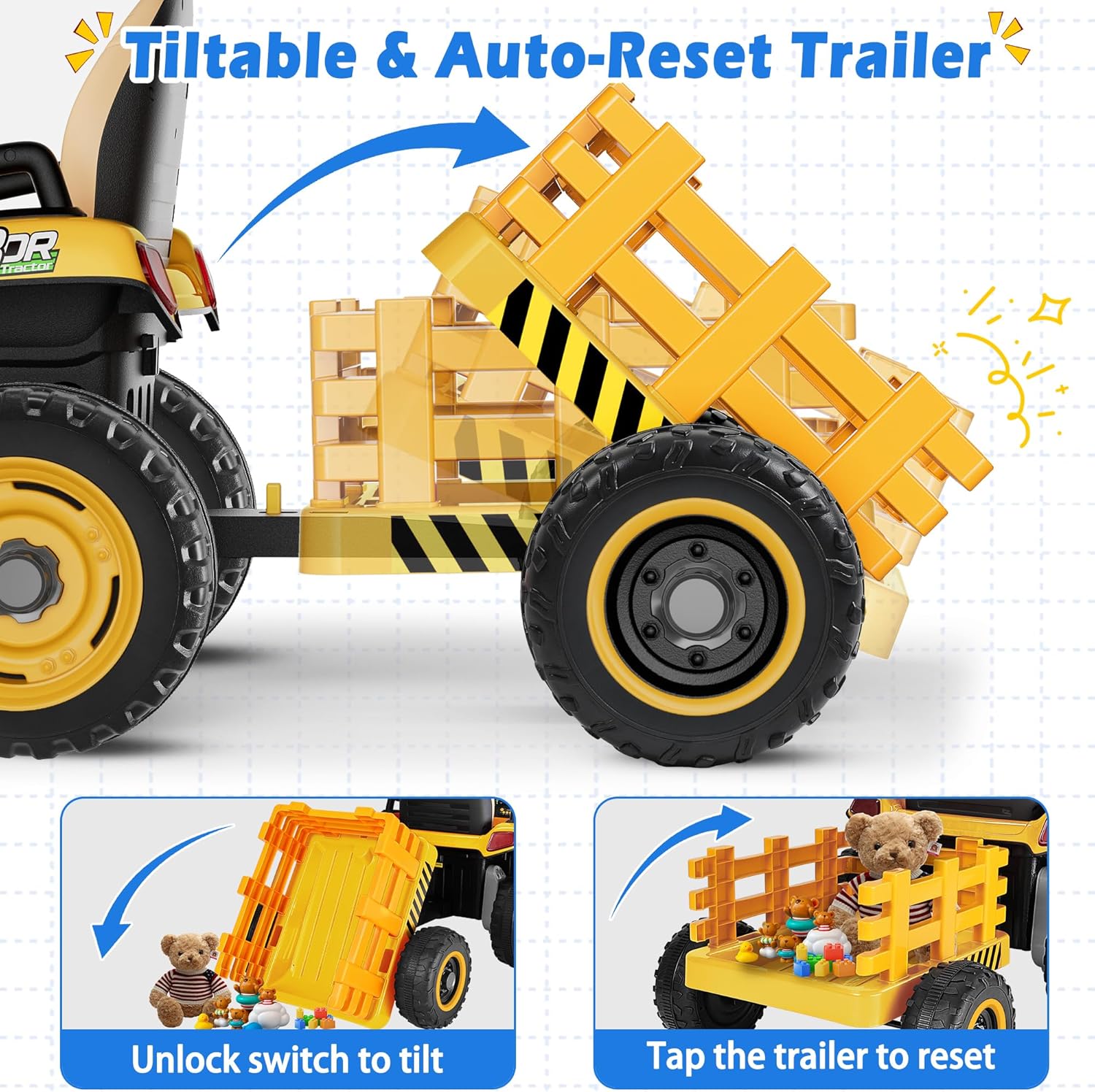 24V Ride On Tractor w/Tiltable & Detachable Trailer, 2x65W Motors, EVA Tires, Remote Control, Bluetooth, Shifter, Music, Electric Car for Kids, Green