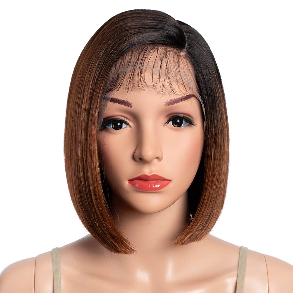 Kinky Straight Short Bob Wig Glueless Lace Front Wig