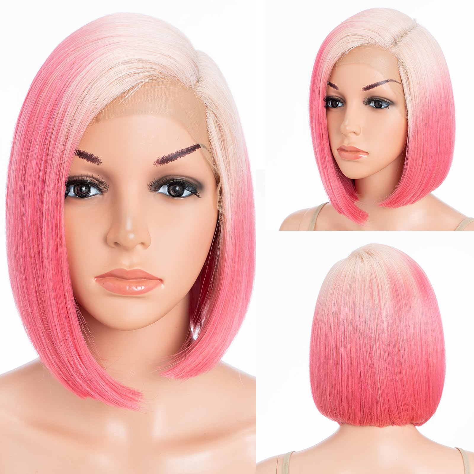 Lace Front Wigs for Black Women Bob Wigs for White Women Synthetic Hair Natural Straight Swiss Lace Heat Resistant Fibers
