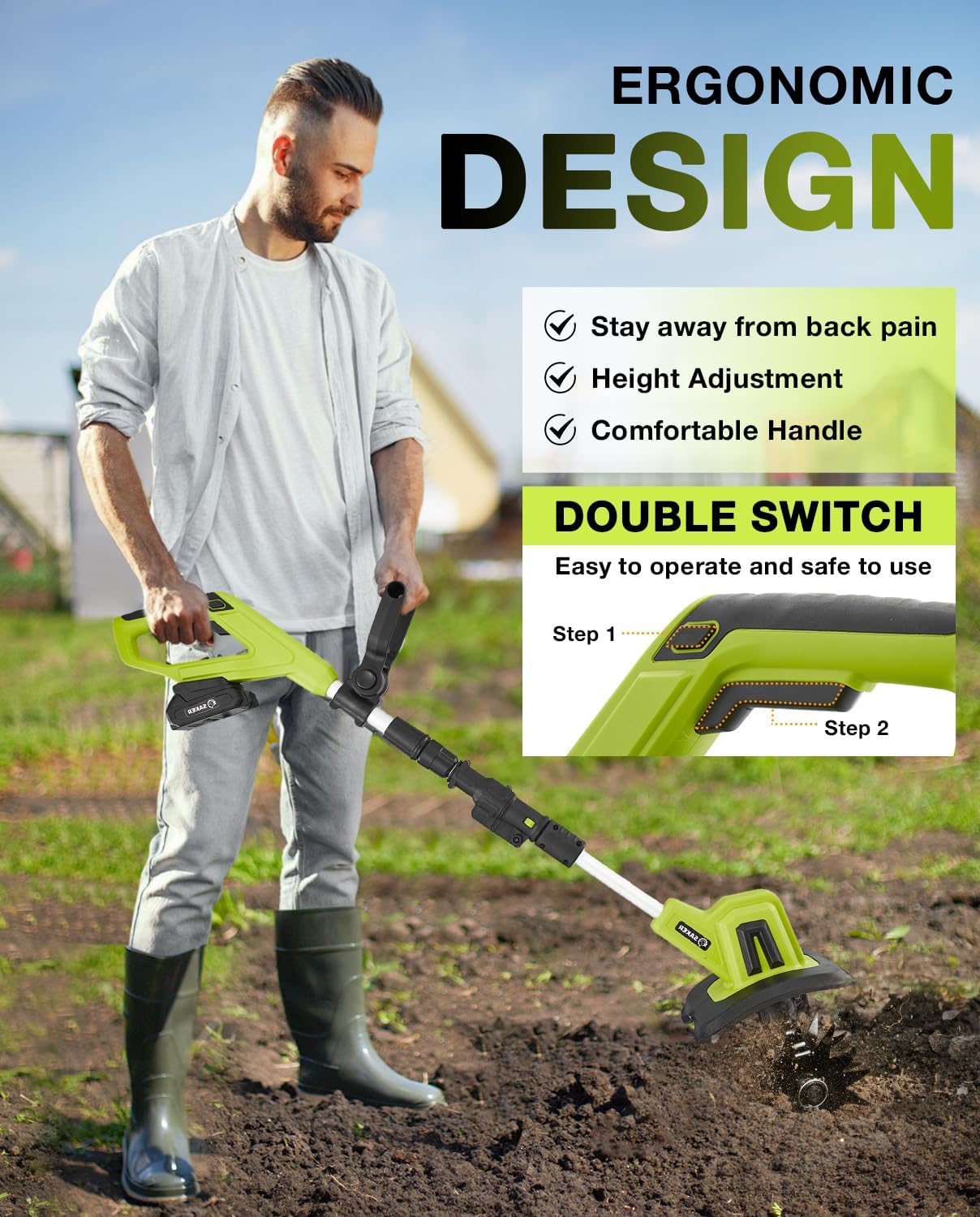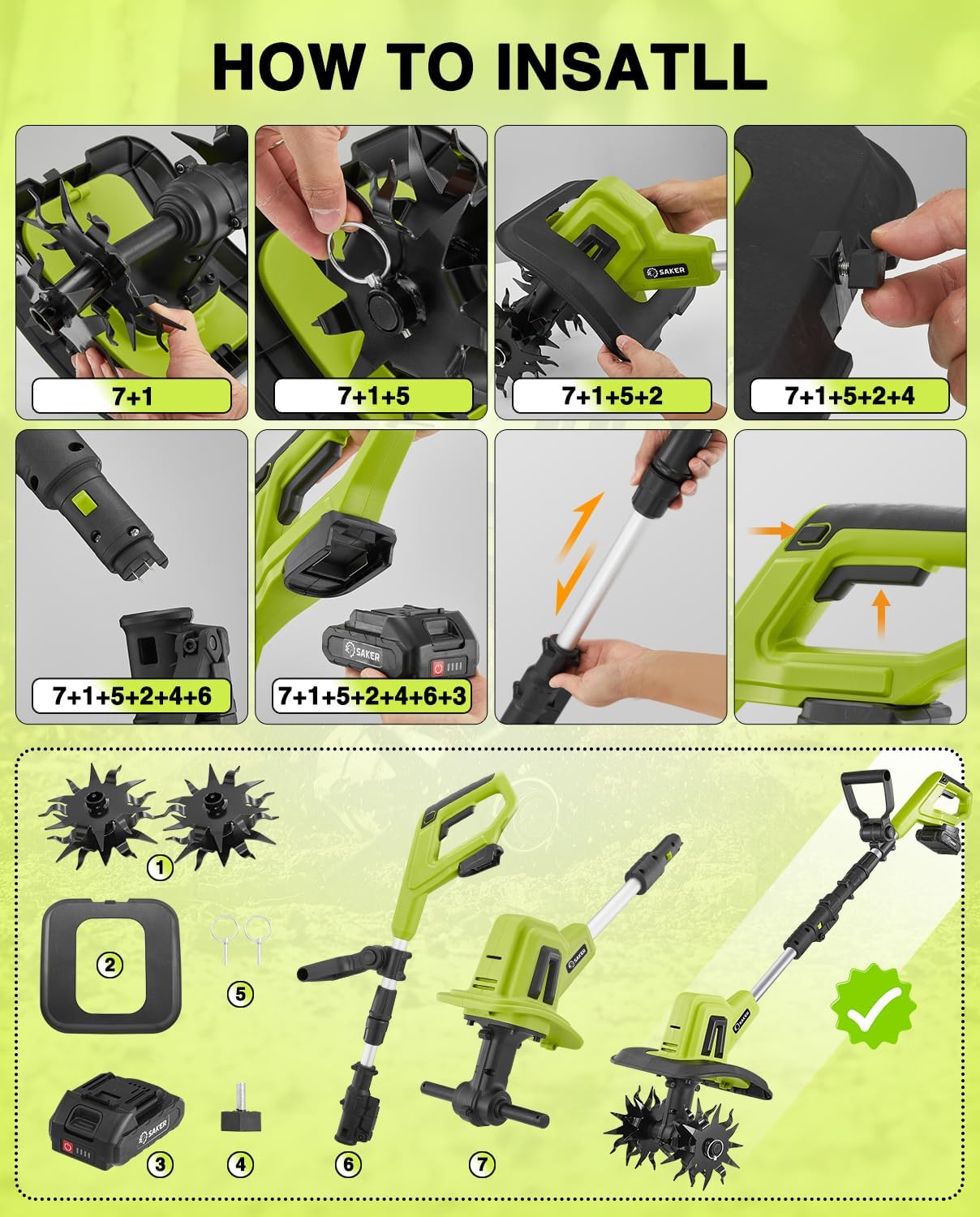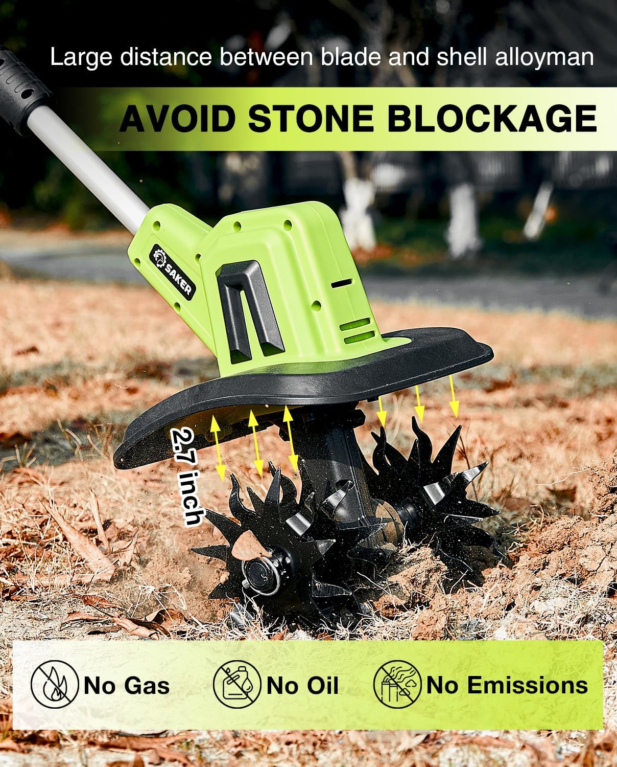 Saker 22V Cordless Electric Garden Tiller Cultivator, Lightweight Rototiller for Gardening, 9-Inch Tilling Width, 6.3-Inch Depth for Soil Preparation, Weeding, and Gardening 2 Batteries SK-TC18B