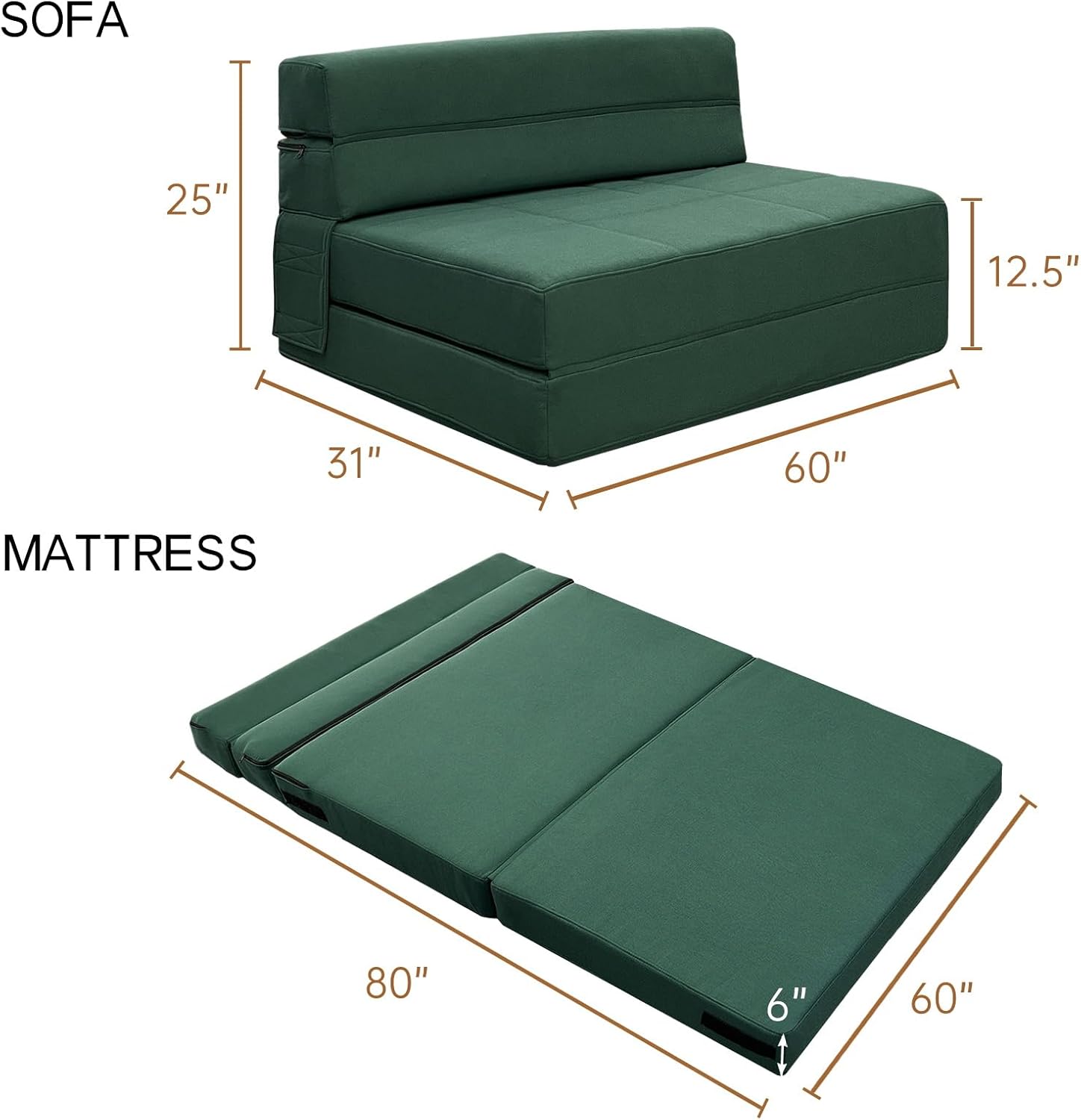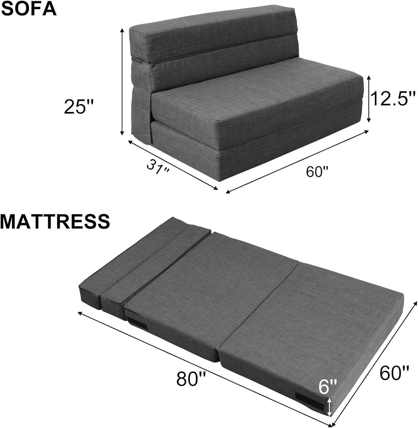 60 inch pull out sofa bed, memory foam sofa with 2 pillows, futon bed, guest bed and pull out sofa,