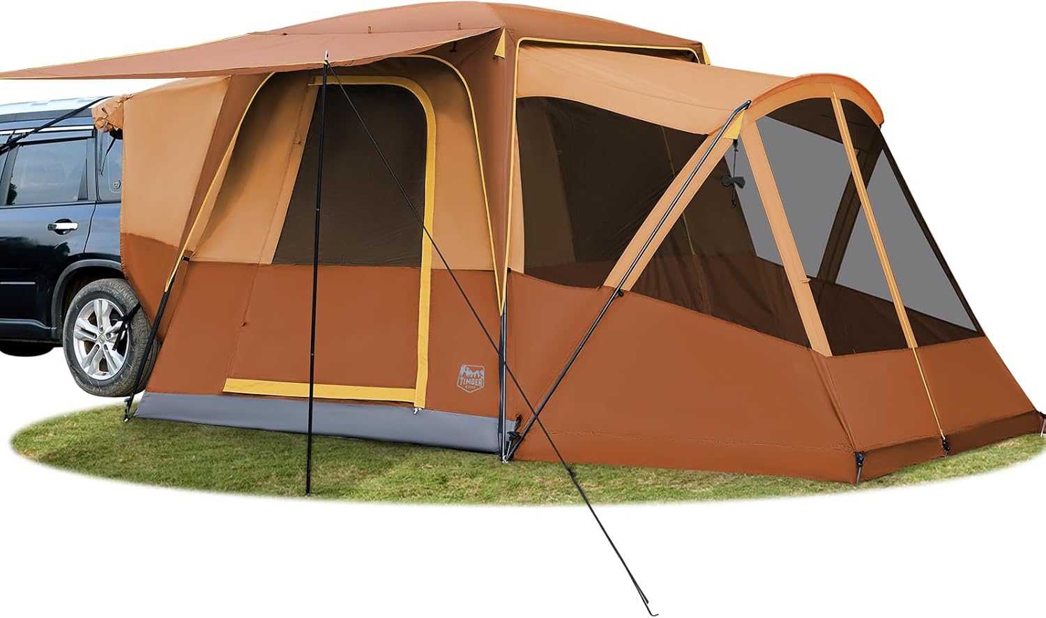 TIMBER RIDGE 5-9 Person SUV Tent with Screen Porch and Awning for Family Camping, Weather Resistant and Portable Van or Car Tent, Includes Rainfly and Storage Bag, 13' W X 10' L X 7.1' H