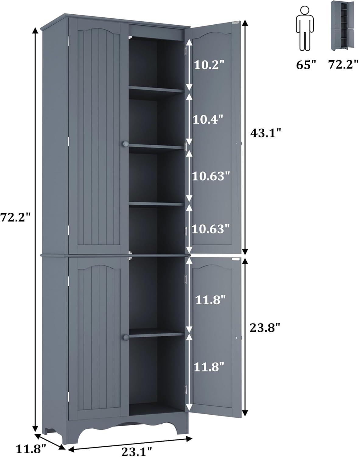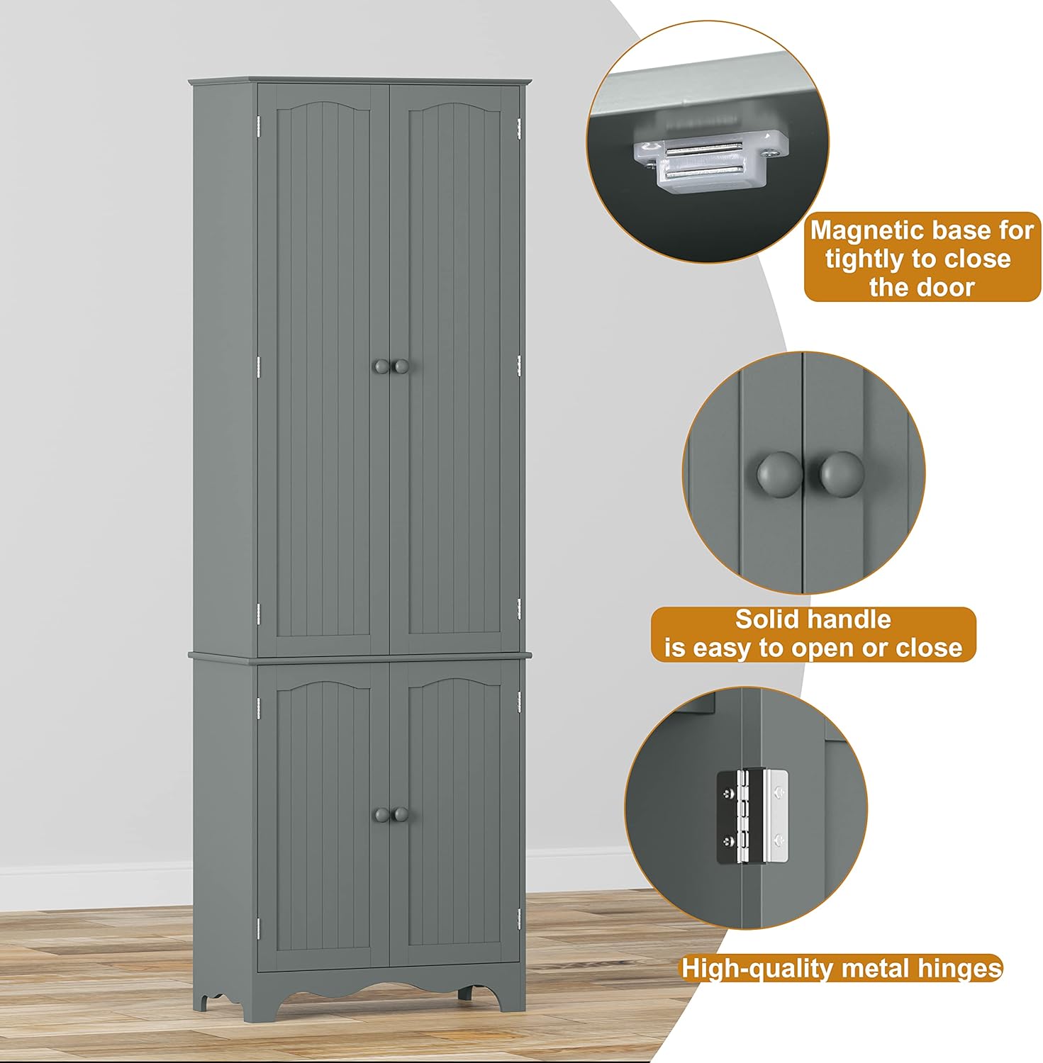 Tall Pantry Cabinet, Freestanding Storage Cabinet, Wooden Kitchen Pantry with 4 Doors and 5 Shelves, 72" Floor Cabinet Organizer