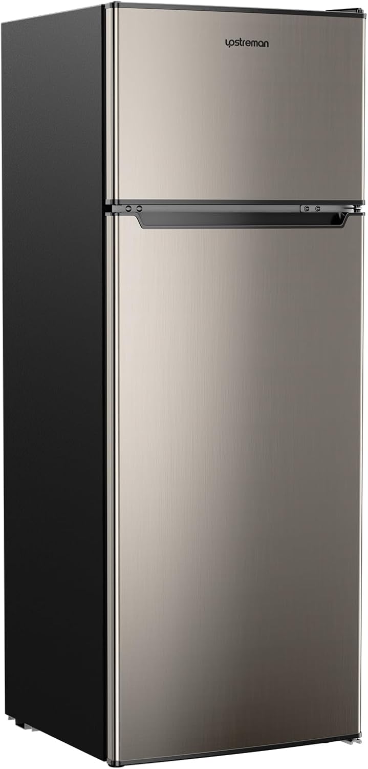 Upstreman 7.7 Cu.Ft. Refrigerator with Freezer, Double Door, Adjustable Thermostat, Large Capacity, Reversible Door Swing, Refrigerator for Apartment, Office, Dorm, Stainless (BD75)