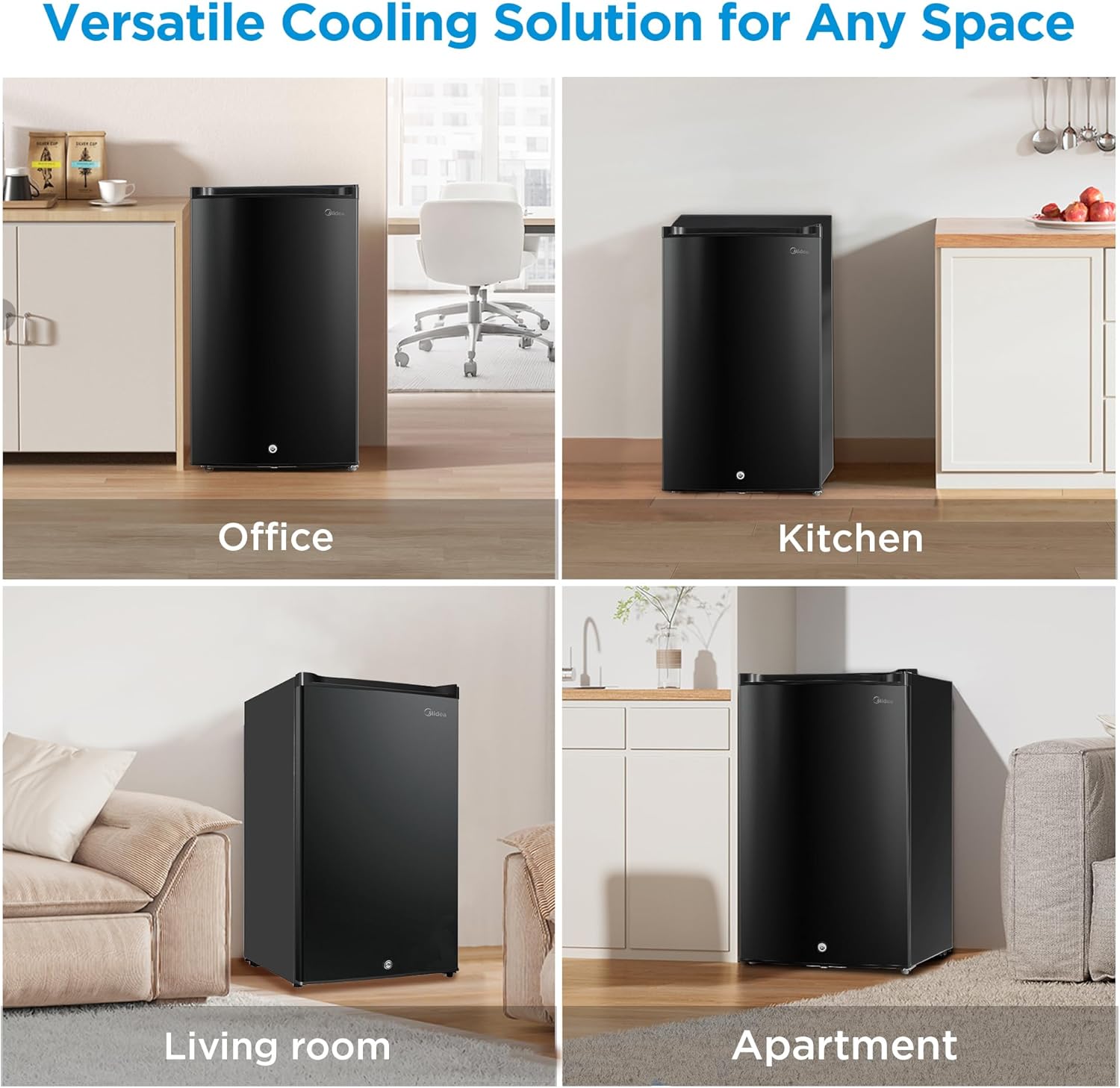 Upstreman 3.2 Cu.Ft Mini Fridge with Freezer, Single Door Mini Fridge, Dorm Fridge, Adjustable Thermostat, Mini Refrigerator for Bedroom, Office, Dorm, Black-BR321