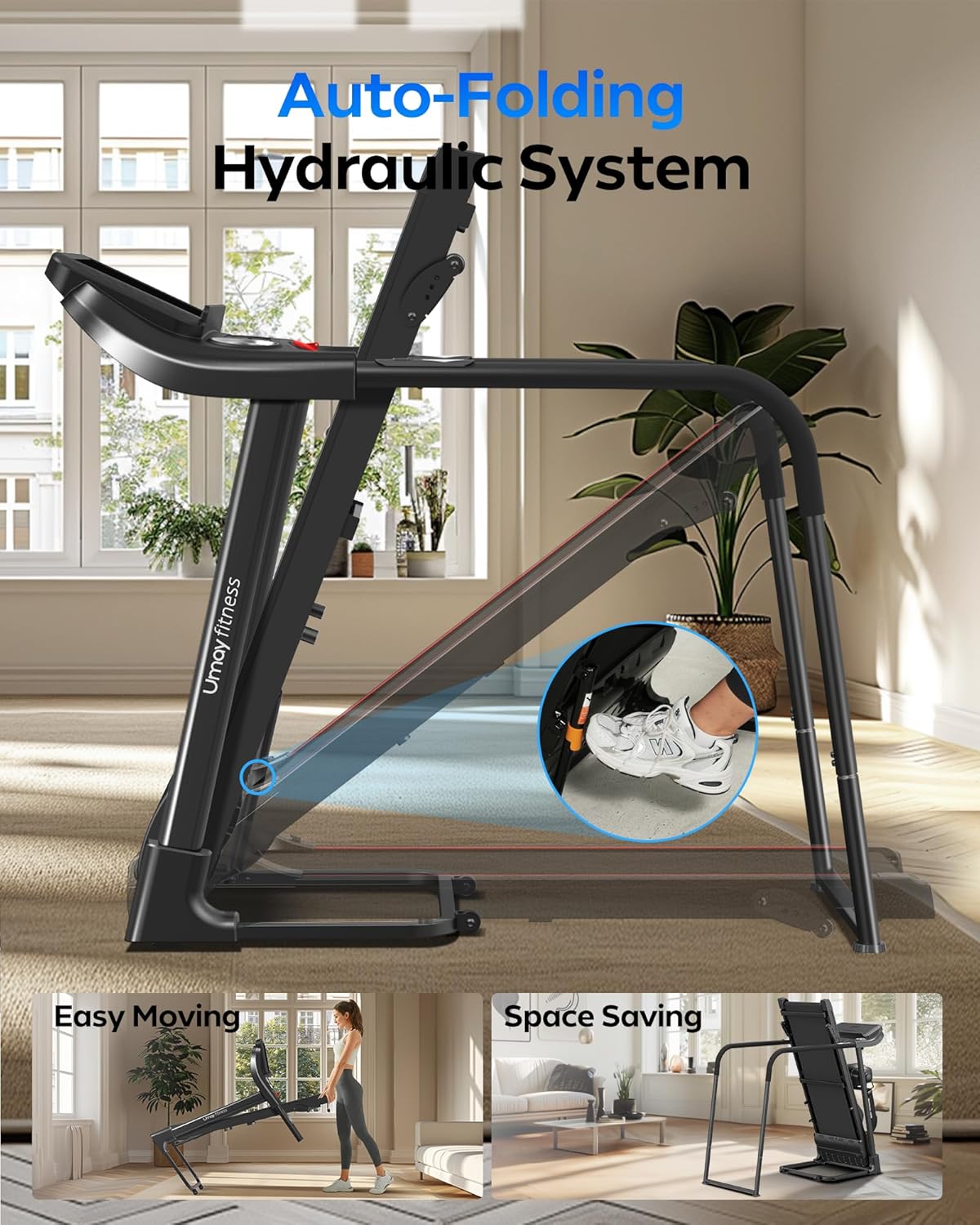 UMAY household folding tilt treadmill with heart rate sensor Low noise