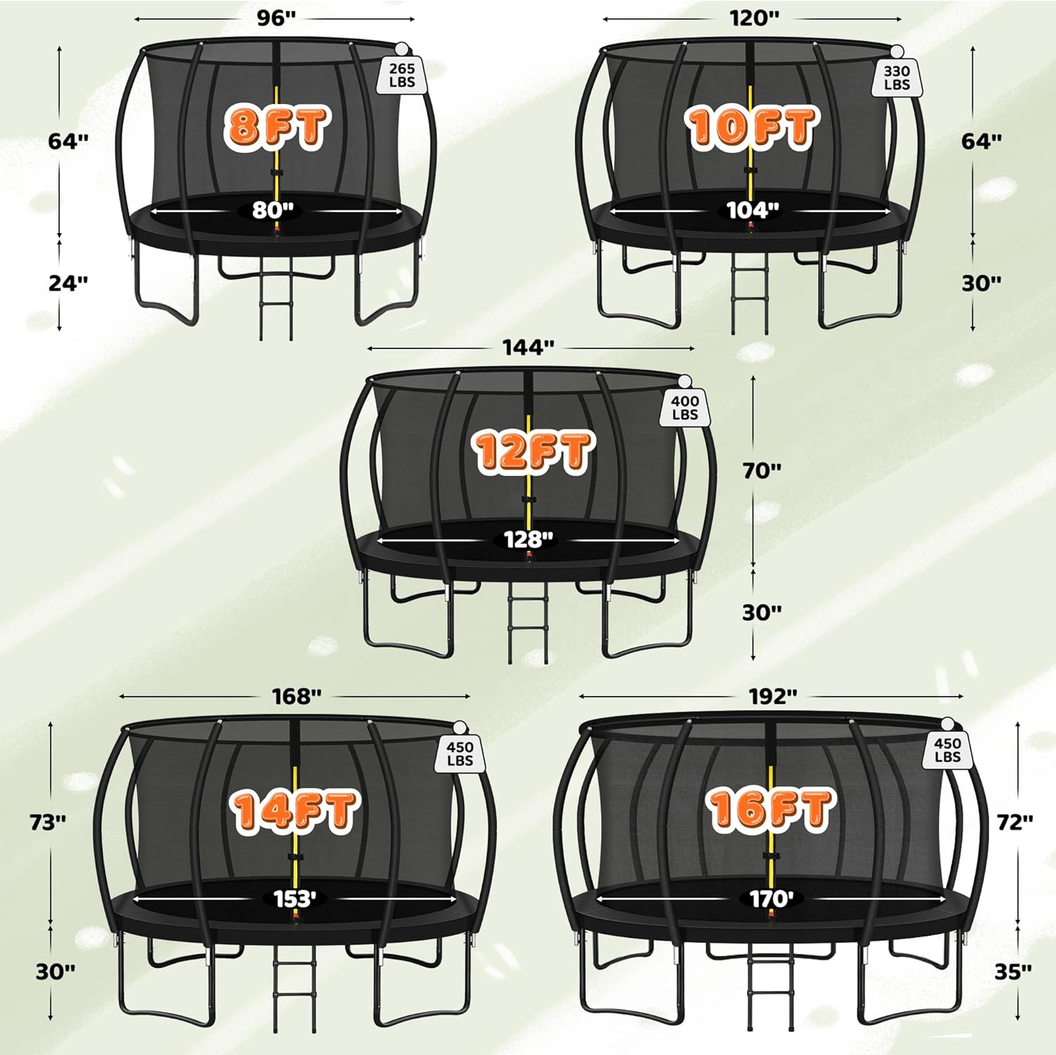 Trampoline 8FT 10FT 12FT 14FT 16FT, Recreational Trampolines with Enclosure Net and Ladder, Outdoor Anti-Rust Trampolines for Kids and Adults, ASTM Approved