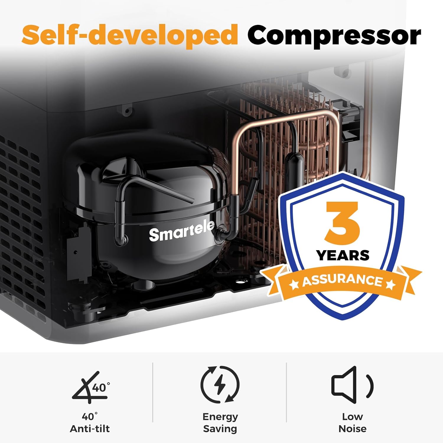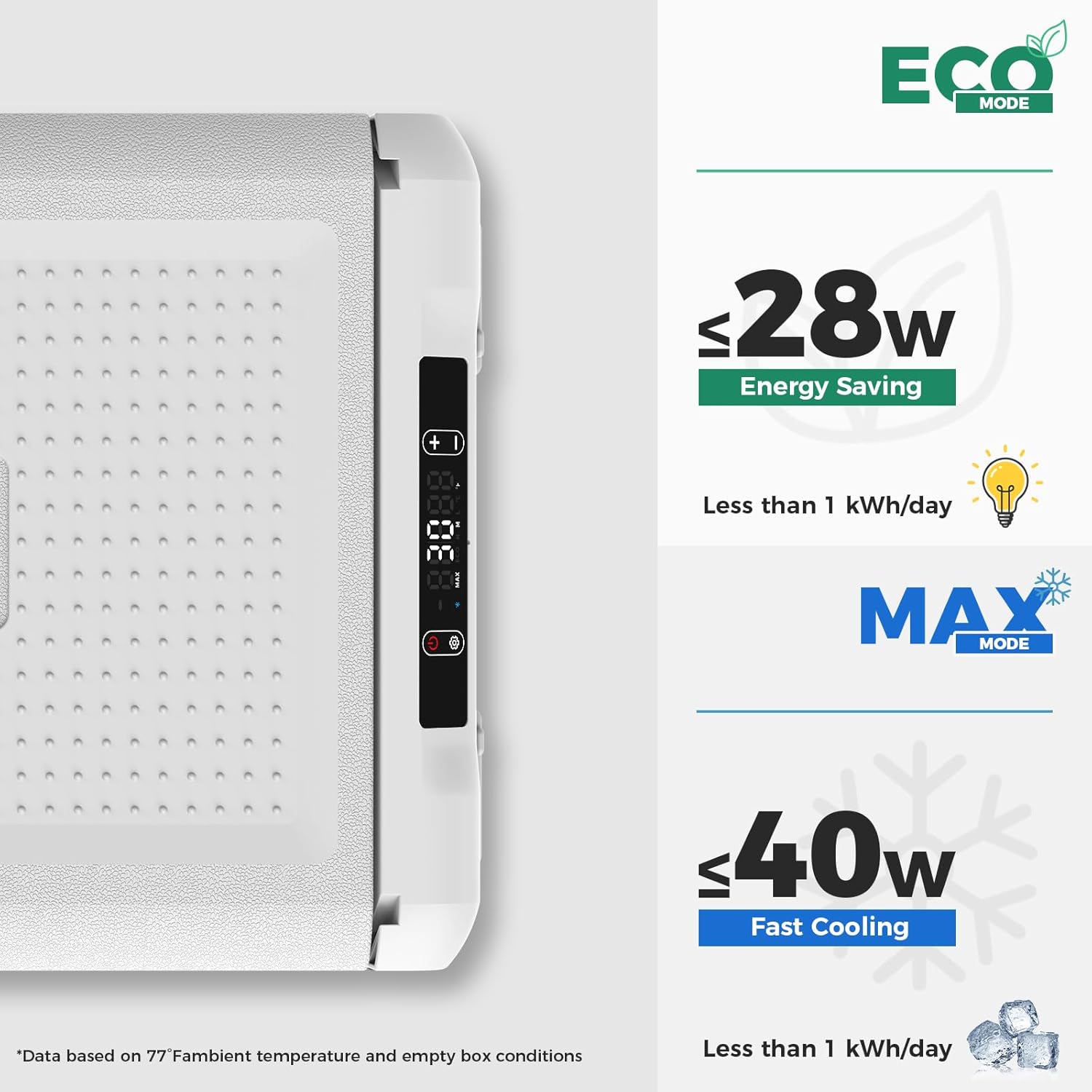 • 28W Low Power Consumption: With the Smartele self-developed compressor,this electric cooler consumes only 28W in ECO energy saving mode and 40W in MAX mode.This portable Fridge consumes far less than 1kWh/day for its intelligent cycle work,save more money