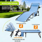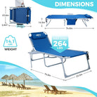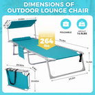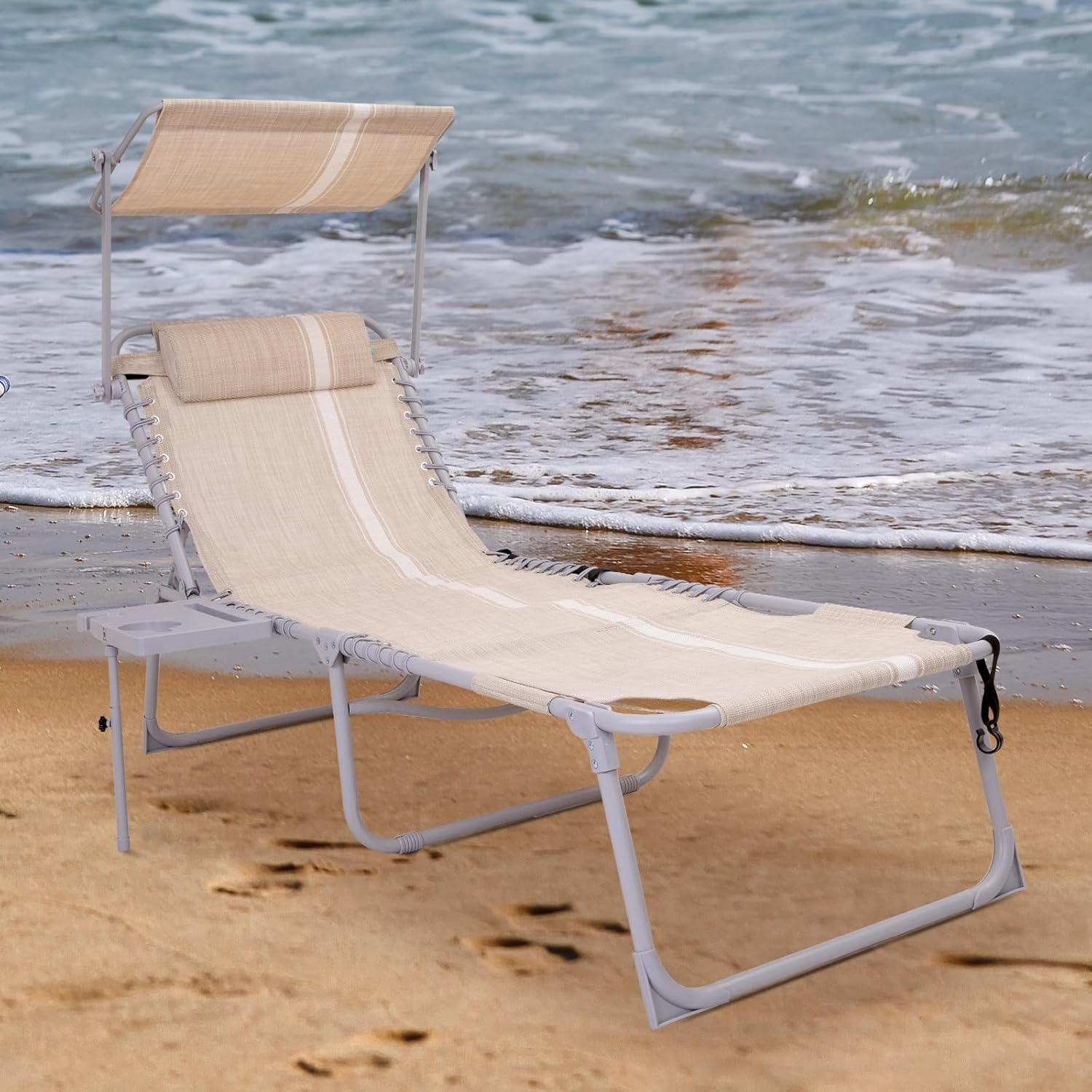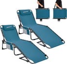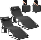 Relax in style with this 2 Pack Outdoor Chaise Lounge Chairs, perfect for any outdoor setting. These portable, folding chairs feature five adjustable reclining positions to customize your comfort. Each chair includes a handy side table, a comfortable pillow, and a shoulder strap for easy transport. Whether you're sunbathing at the beach, lounging by the pool, or camping, these durable chairs offer convenience and support wherever you go. Upgrade your outdoor relaxation with this versatile and comfortable set.