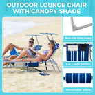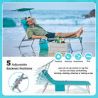 2 Pack Outdoor Chaise Lounge Chair - Portable Folding Patio Pool Lounge Chair, 5 Positions Adjustable Reclining Camping Chair with Side Table,Shoulder Strap, Pillow for Beach Sunbathing Lawn