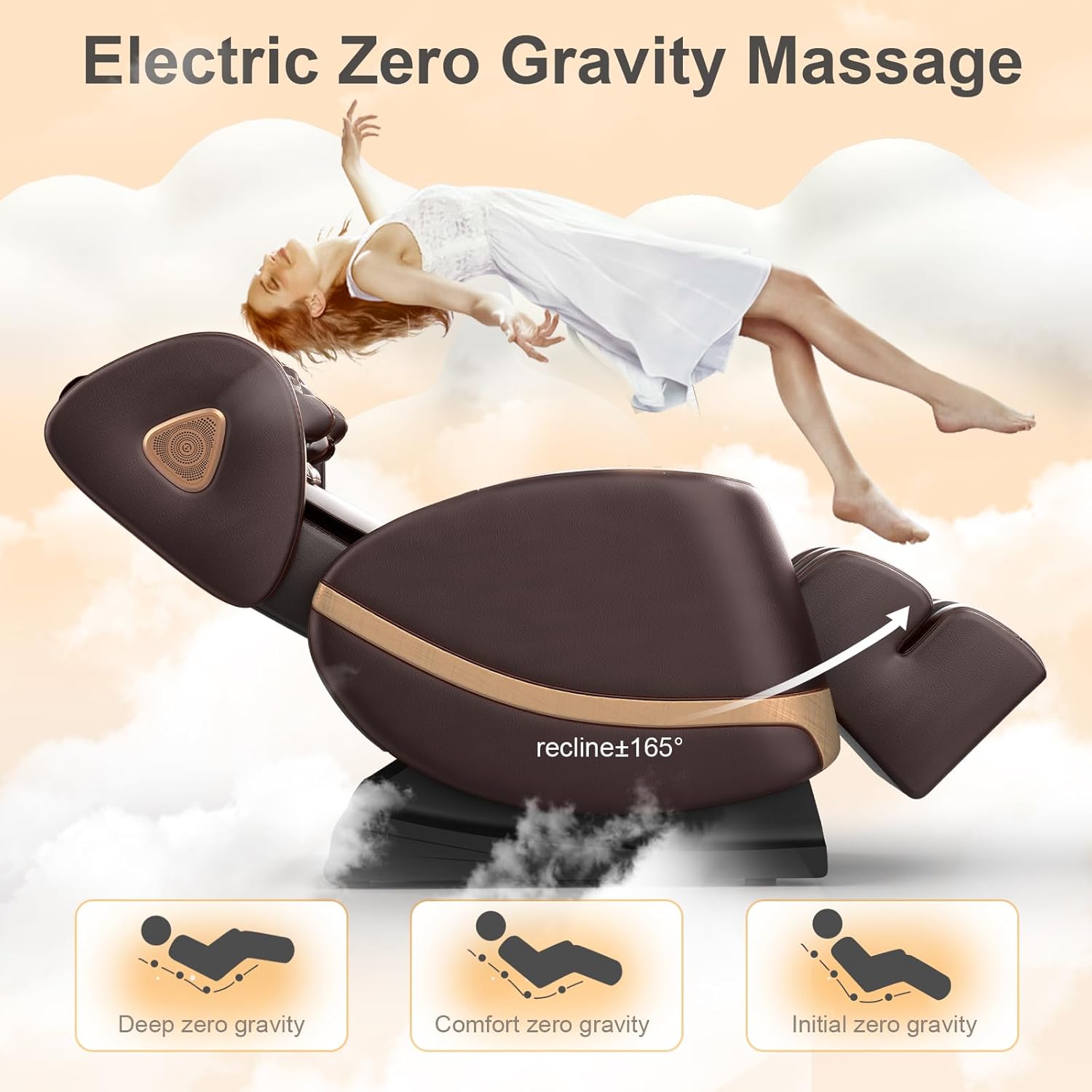 2025 Massage Chair Full Body, Zero Gravity Massage Chair with 10 Fix Rollers, Heating, Foot Massage, Auto Modes, Bluetooth Speaker, Touch Screen Controller (Black & Brown)