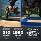 Greenworks 24V Max Cordless Brushless Drill Drill Kit, 310 in./lbs + Impact driver 1950 In.Ibs