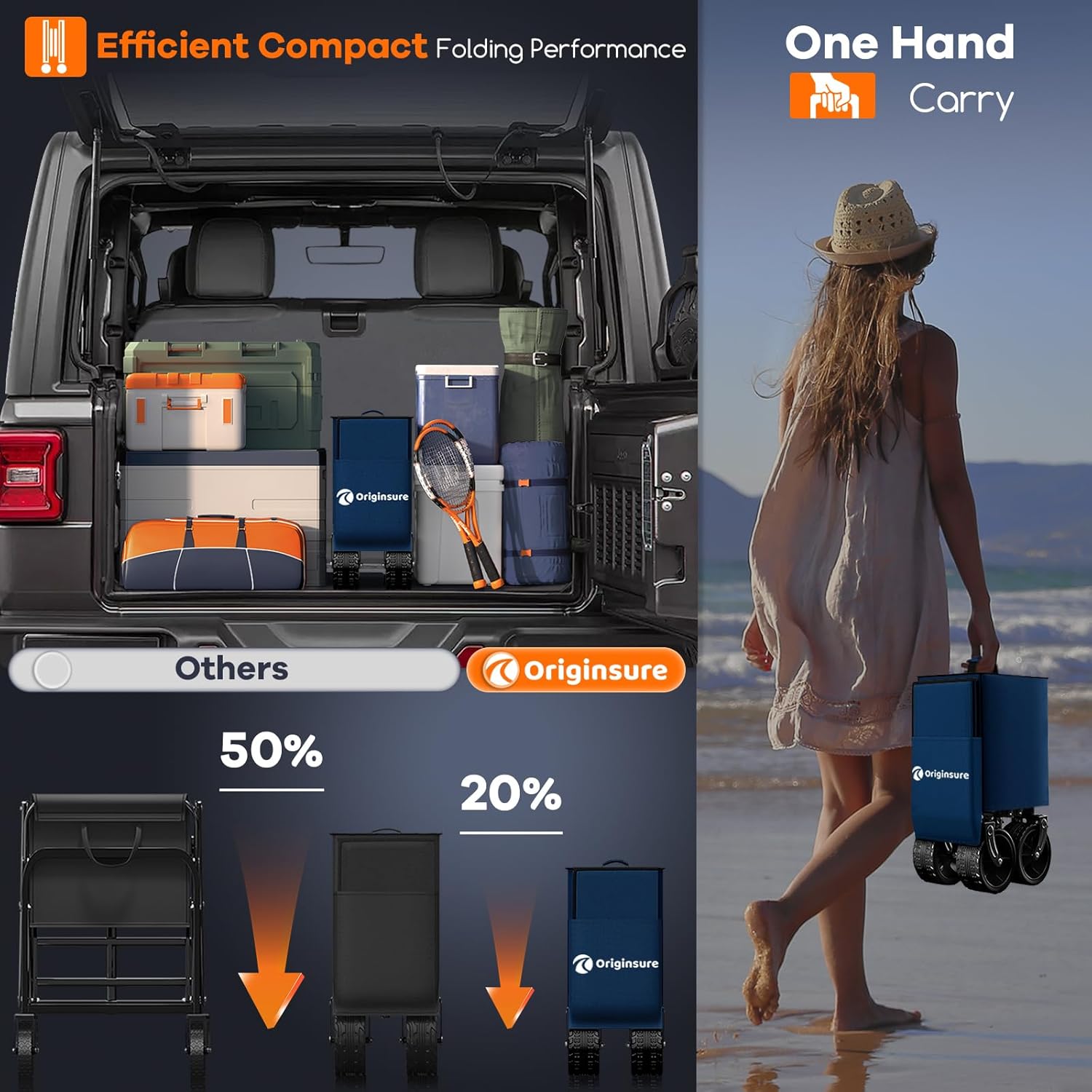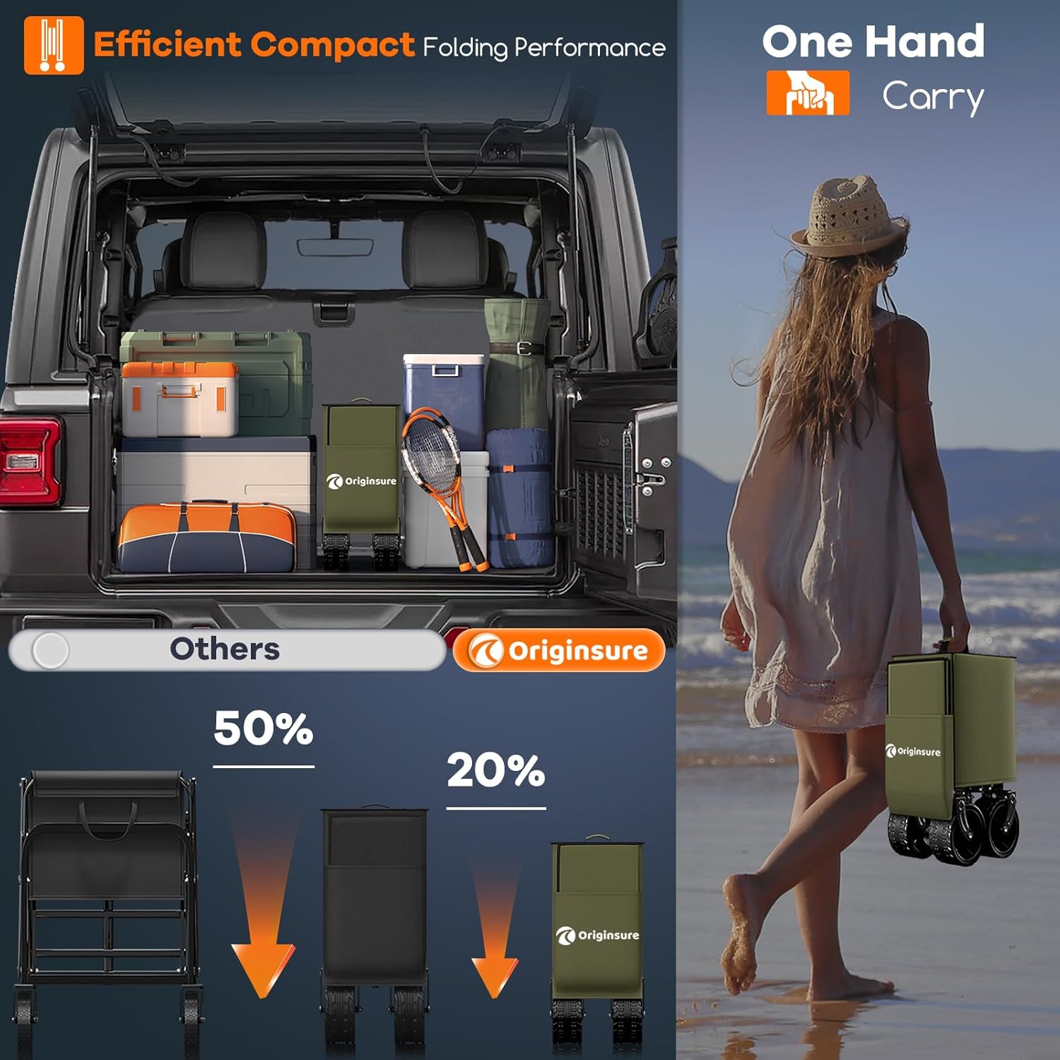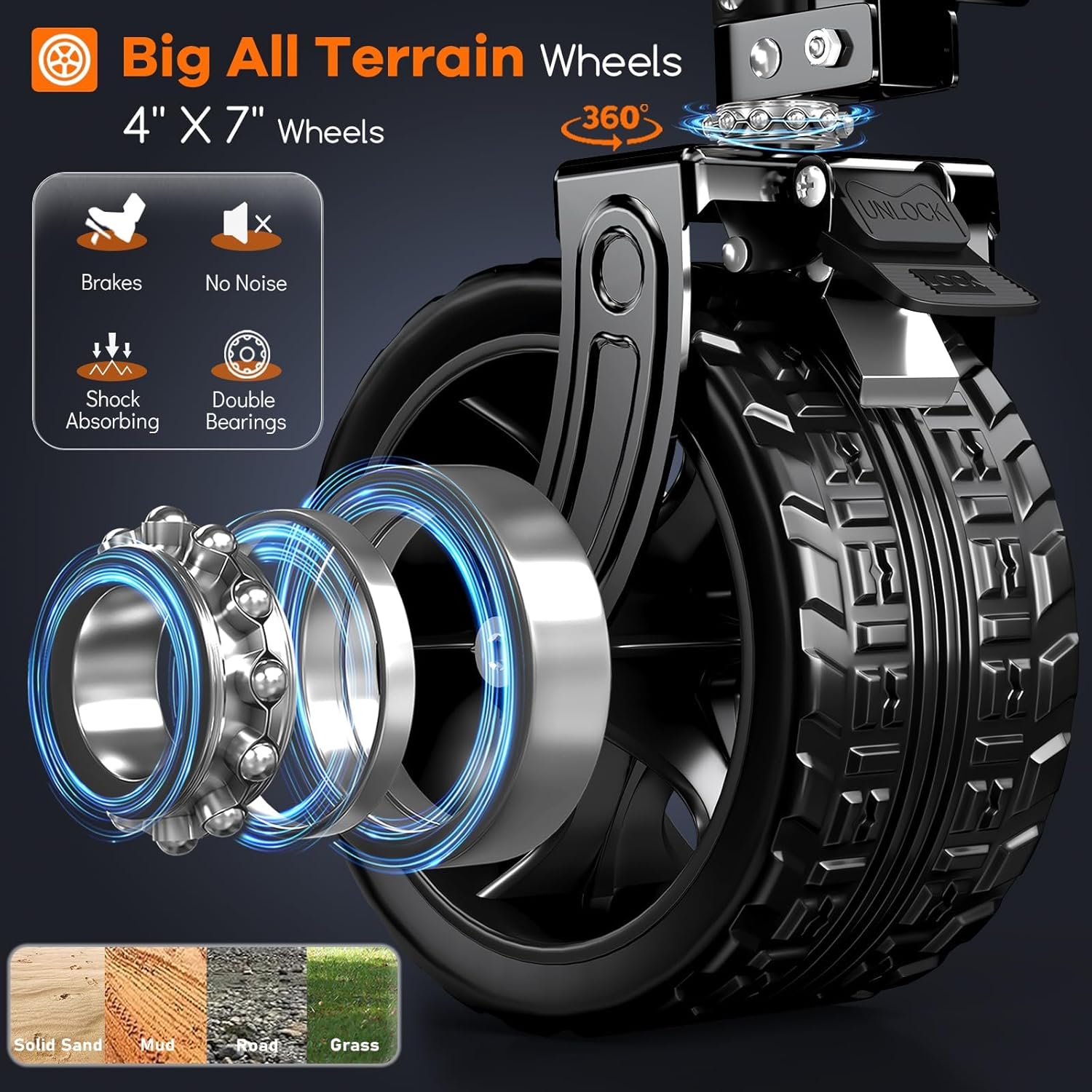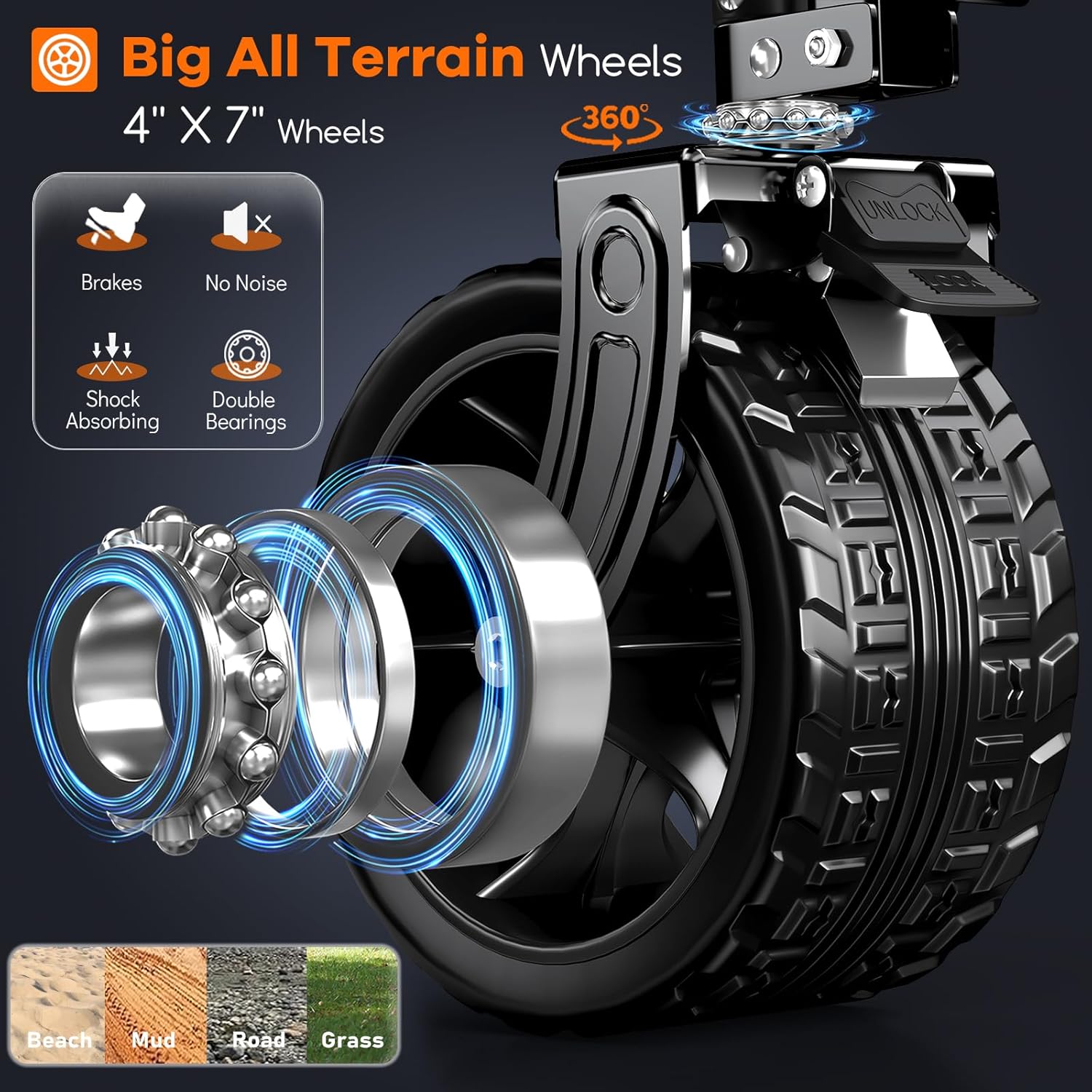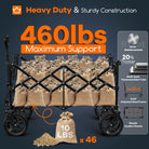 38" long foldable four-wheel stroller, foldable, 460 lb capacity, 220 liter heavy-duty folding beach stroller with large all-terrain tires