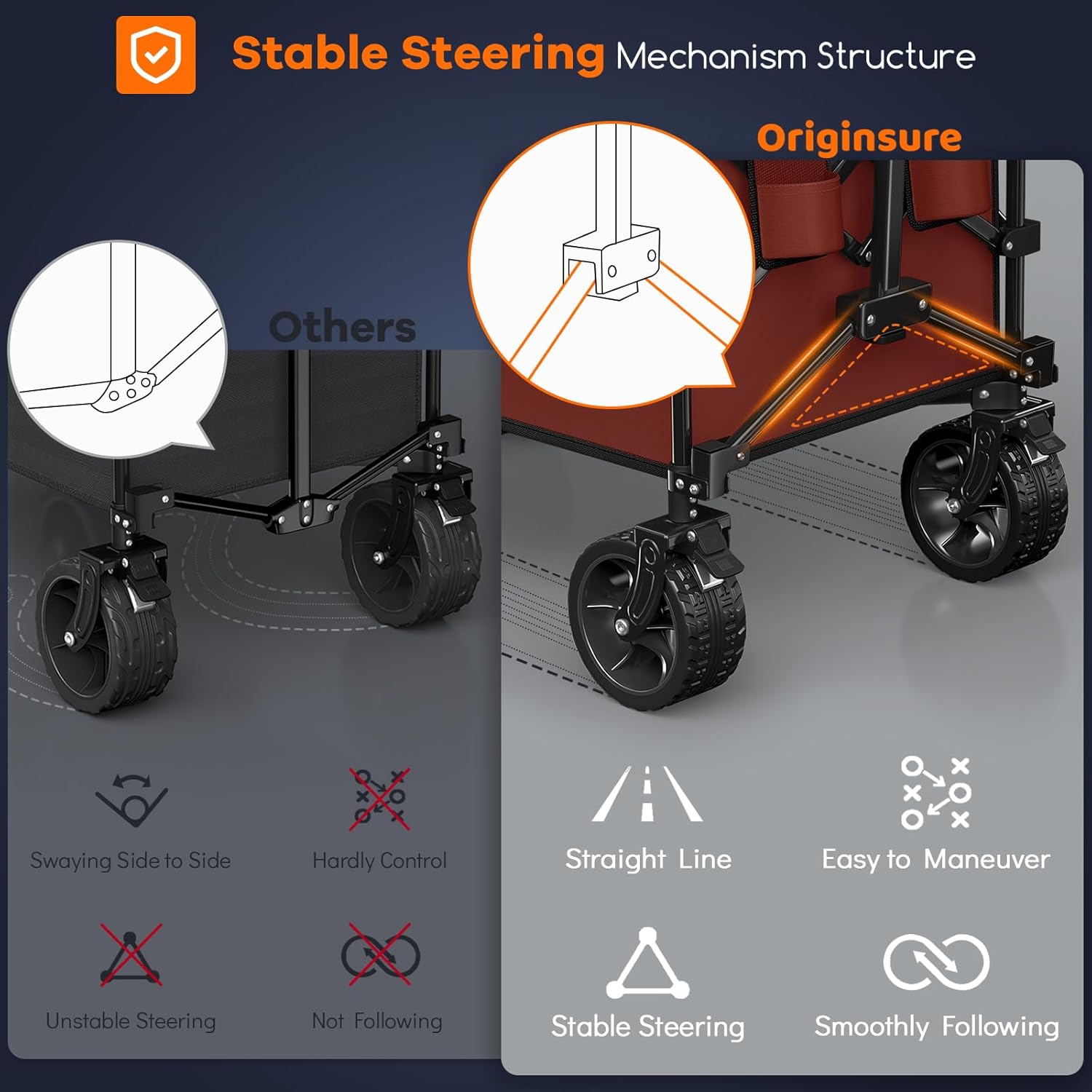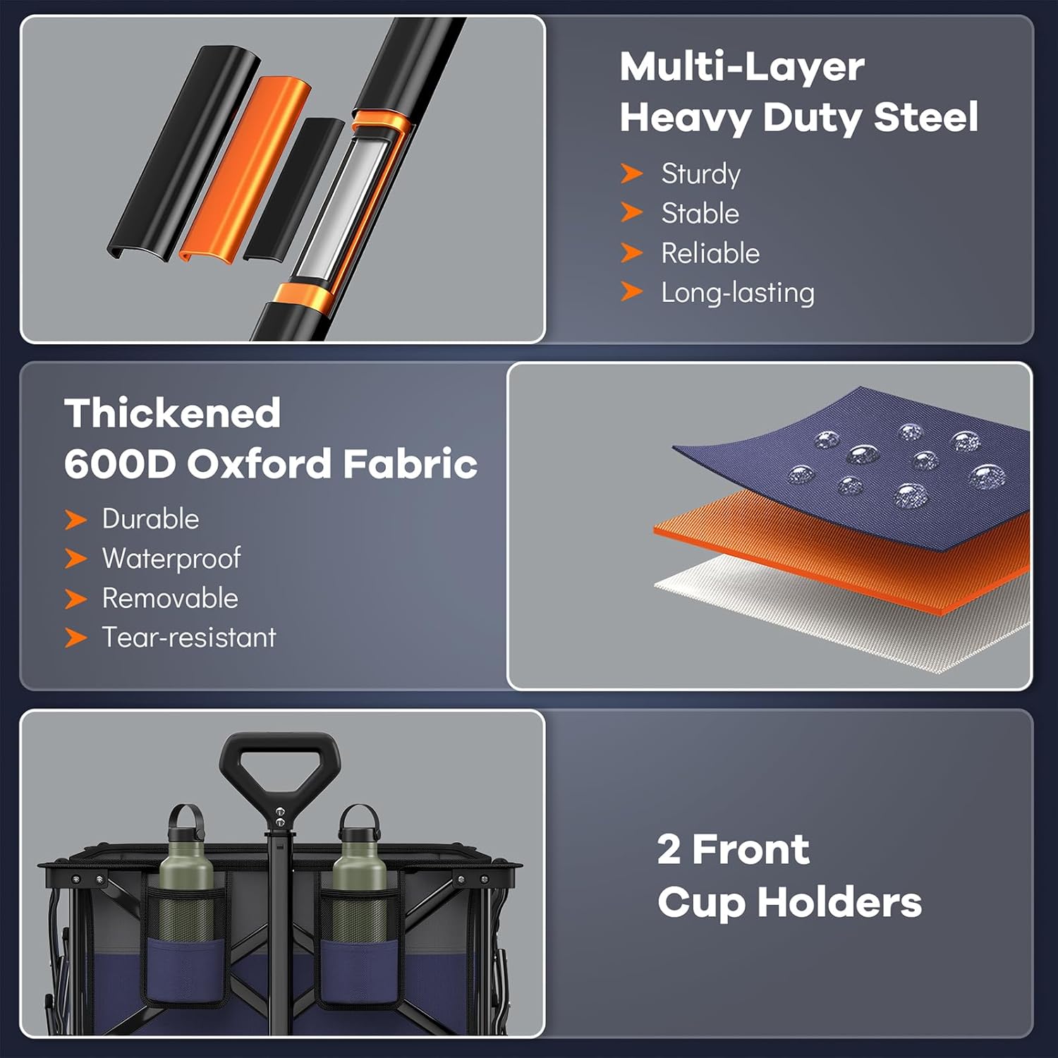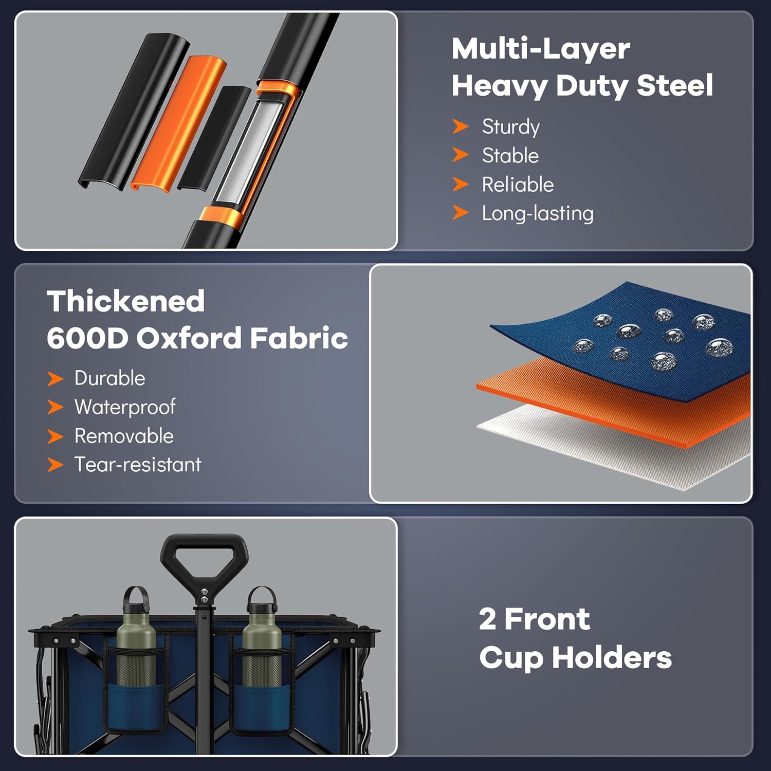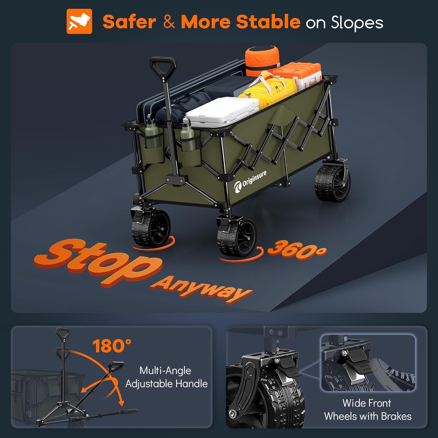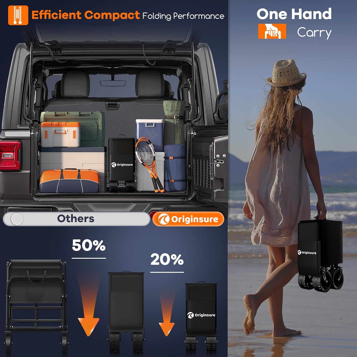 38" long foldable four-wheel stroller, foldable, 460 lb capacity, 220 liter heavy-duty folding beach stroller with large all-terrain tires
