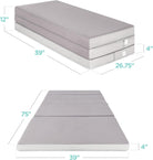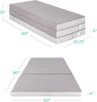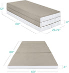 4in Portable Queen-Size Mattress, Tri-Fold Mattress for Camping, Guest, Toddler
