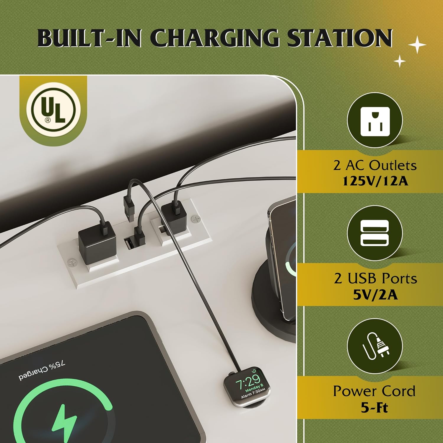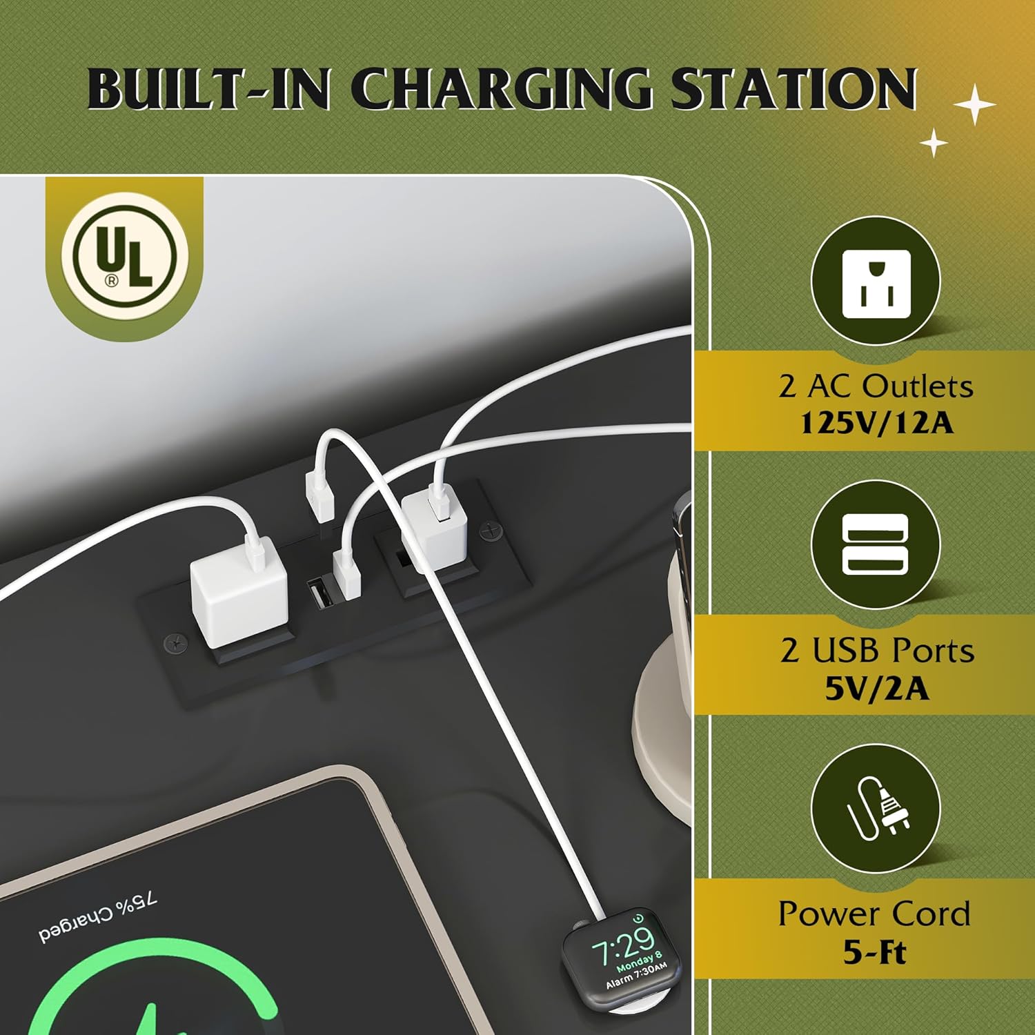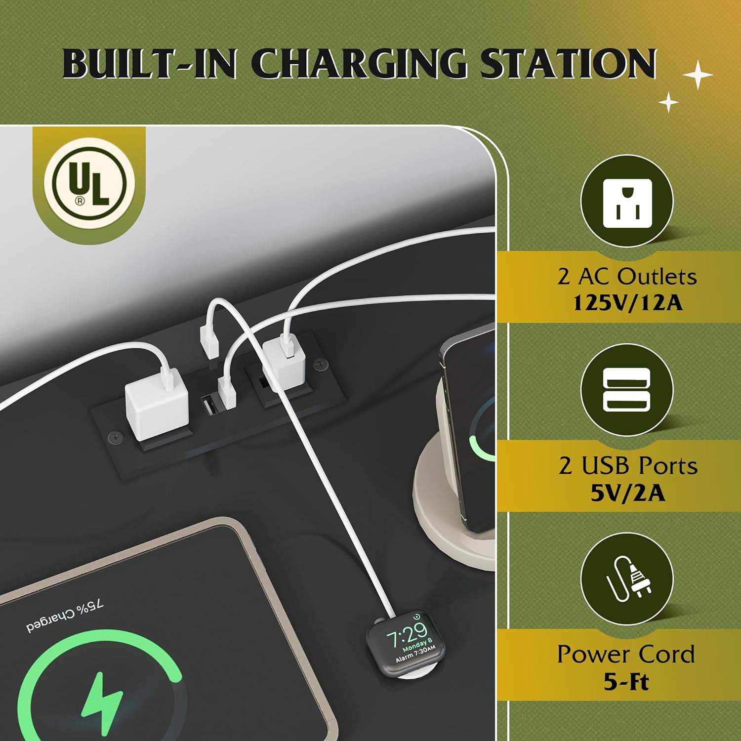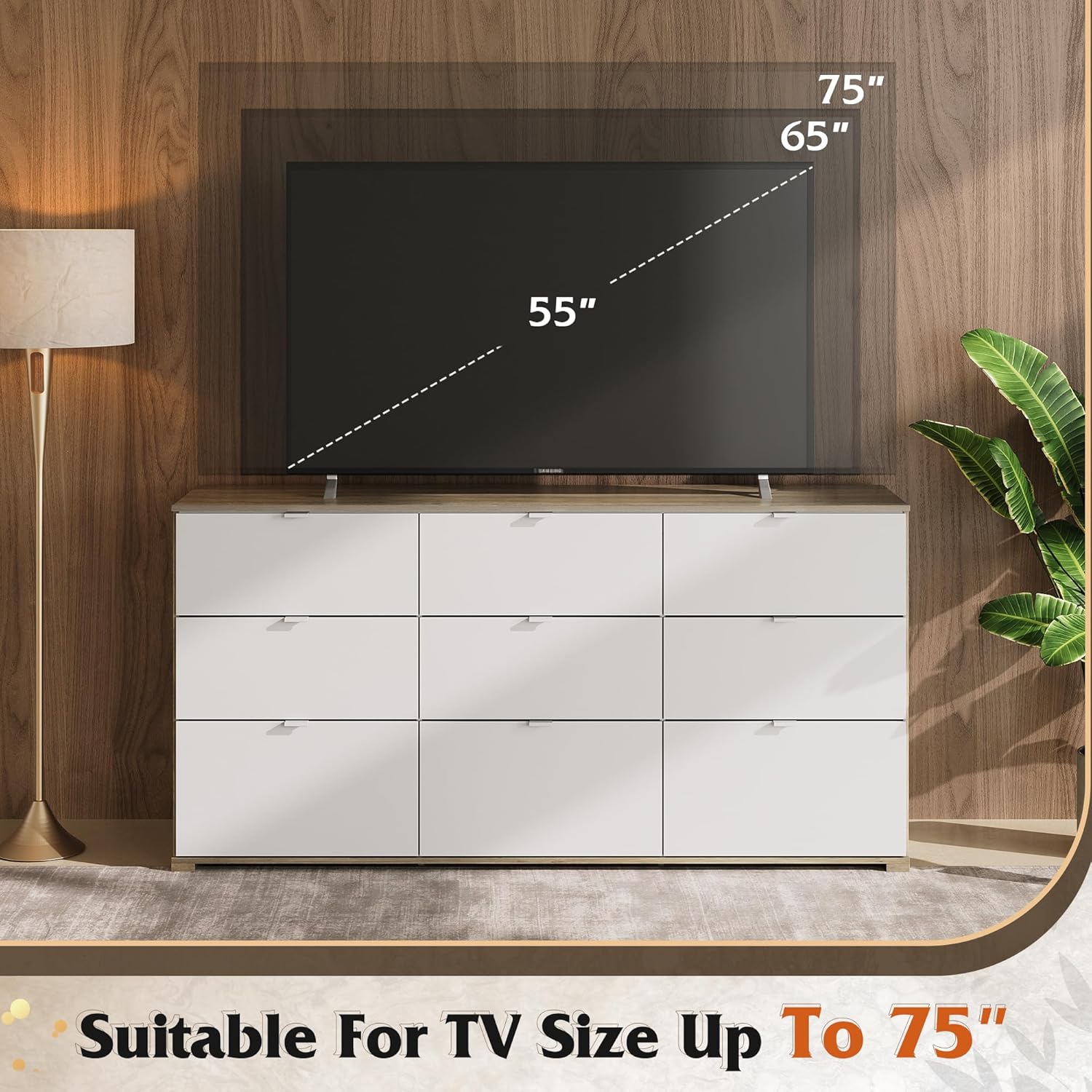 - 【✨ Powered Storage Dresser】Say goodbye to messy wires! TV entertainment center is equipped with 2 AC sockets +2 USB ports, 1.5m flexible cable length, TV, game console, router a power board can be done, instant increase desktop cleanliness by 50%, through UL/ETL certification, electricity safety!