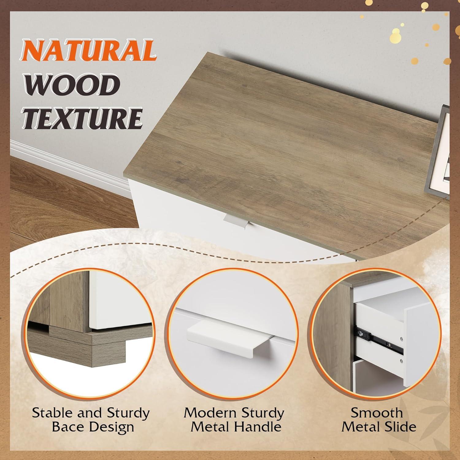 - 【✨ Premium Details】The drawer is equipped with smooth rails and strong metal handles to ensure that every push and pull is easy and smooth. The extra support plate at the bottom of the drawer makes the drawer more load-bearing!