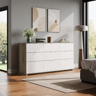 - 【✨ Durable Quality Material】The dresser is made of high quality artificial wood, scratch resistant, easy to clean, strong load-bearing capacity, 3 small drawers above the shelf are composed of three layers of high-quality fiberboard and breathable non-woven fabric. The material process and safety are strictly tested by EPA&SGS, health and environmental protection, excellent quality, for you and your family to create a peaceful life!