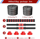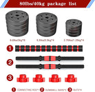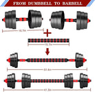 Adjustable dumbbell set, free weight dumbbell pair convertible into barbell