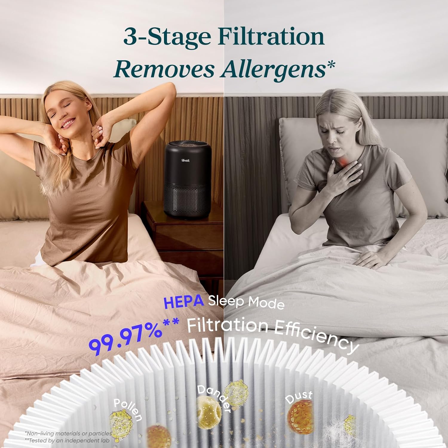 Air Purifier for Bedroom Allergies and Pet Hair, 56W High Torque Motor