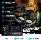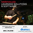 A unique sound experience driven by the legendary BFD drum engine and controlled by a 10.1” touch screen that delivers intuitive navigation, editing, mixing of kits, and recording studio-level sound.