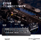 Call up and adjust components via 6 rotary encoders for quick scrolling and detailed control, plus a main push encoder, transport controls, and dedicated volume knobs for main, phones and AUX outs.